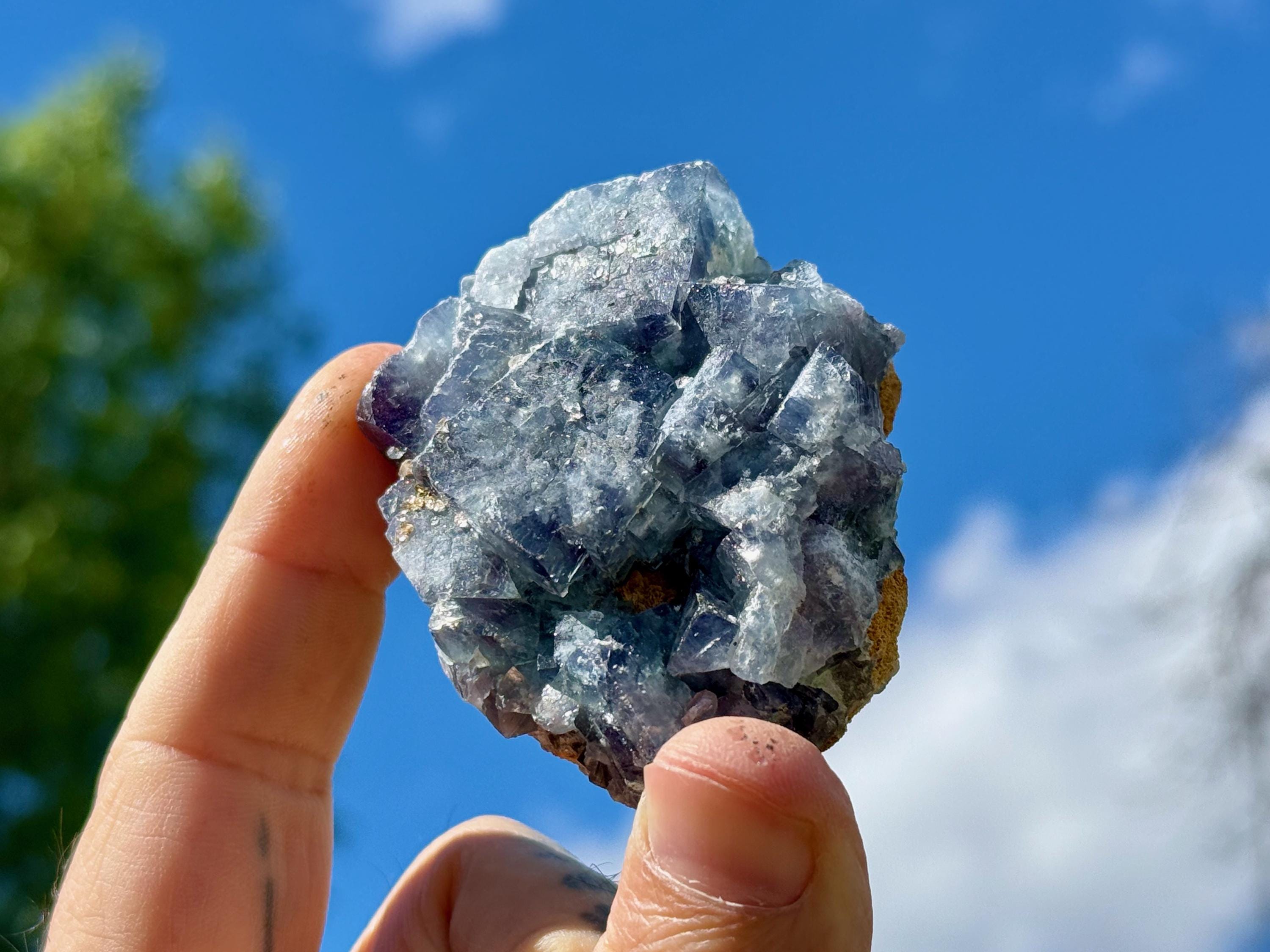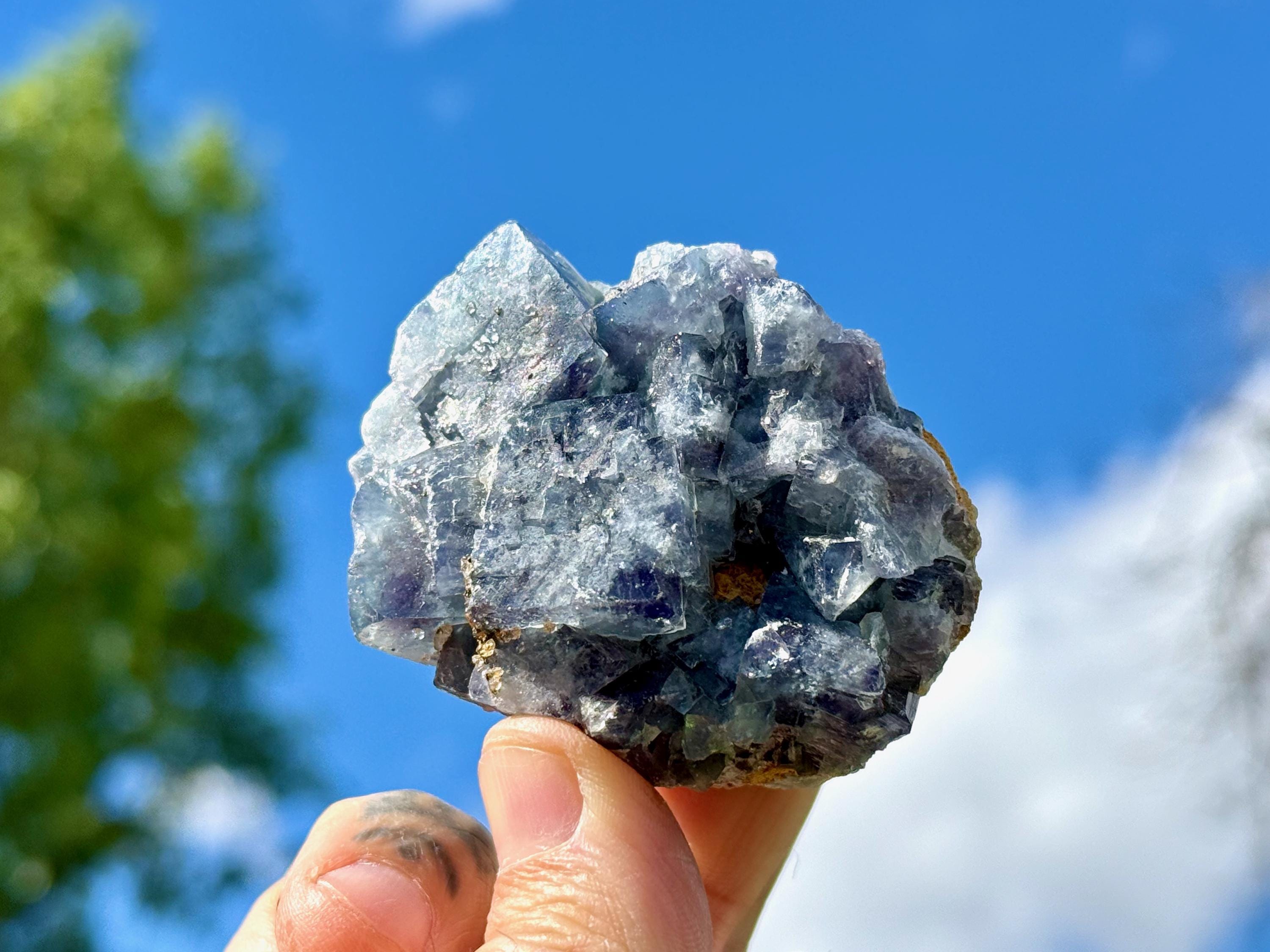 **PLEASE NOTE we've included photos that were taken in 1) partially shaded outdoor lighting 2) natural direct sunlight 3) backlighting to show off their translucency and hues and 4) with direct UV light to show their UV reactivity. We've done our best to faithfully represent these unique crystals in a variety of light environments. Please be aware that these Fluorites can appear differently depending on the environment in which you are enjoying them.