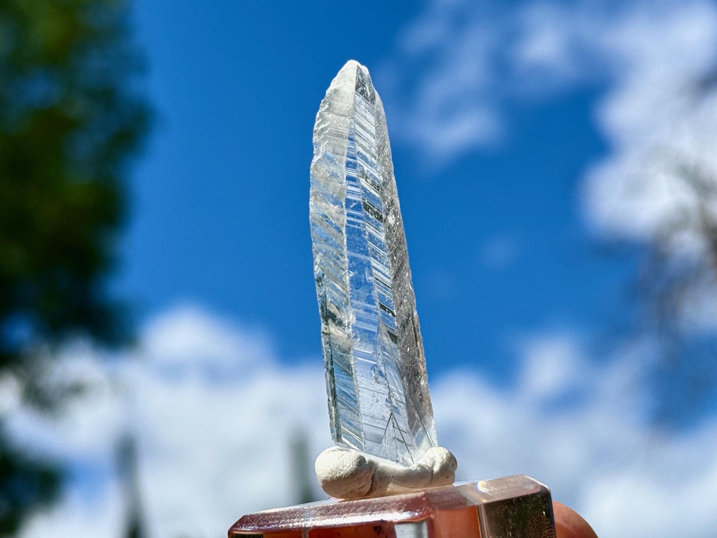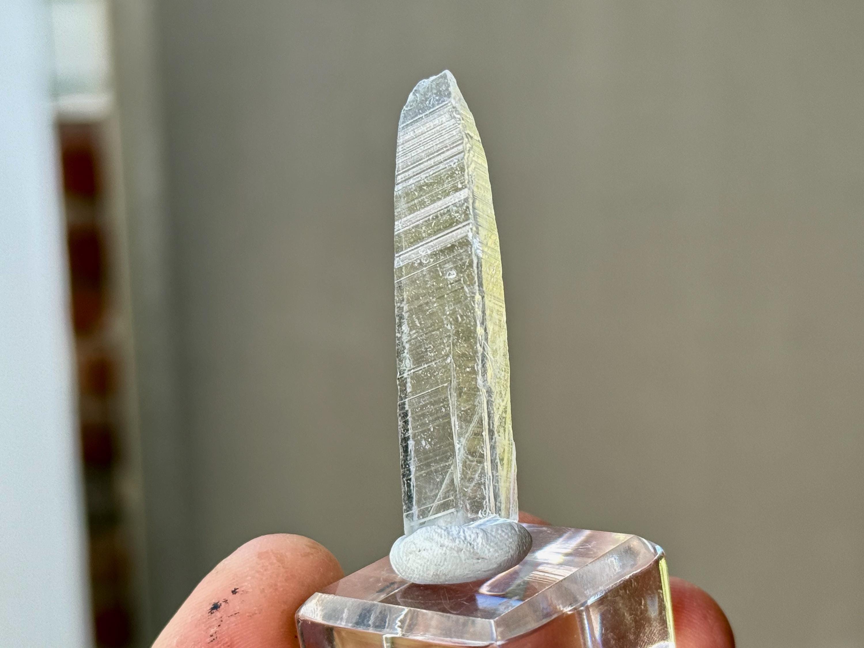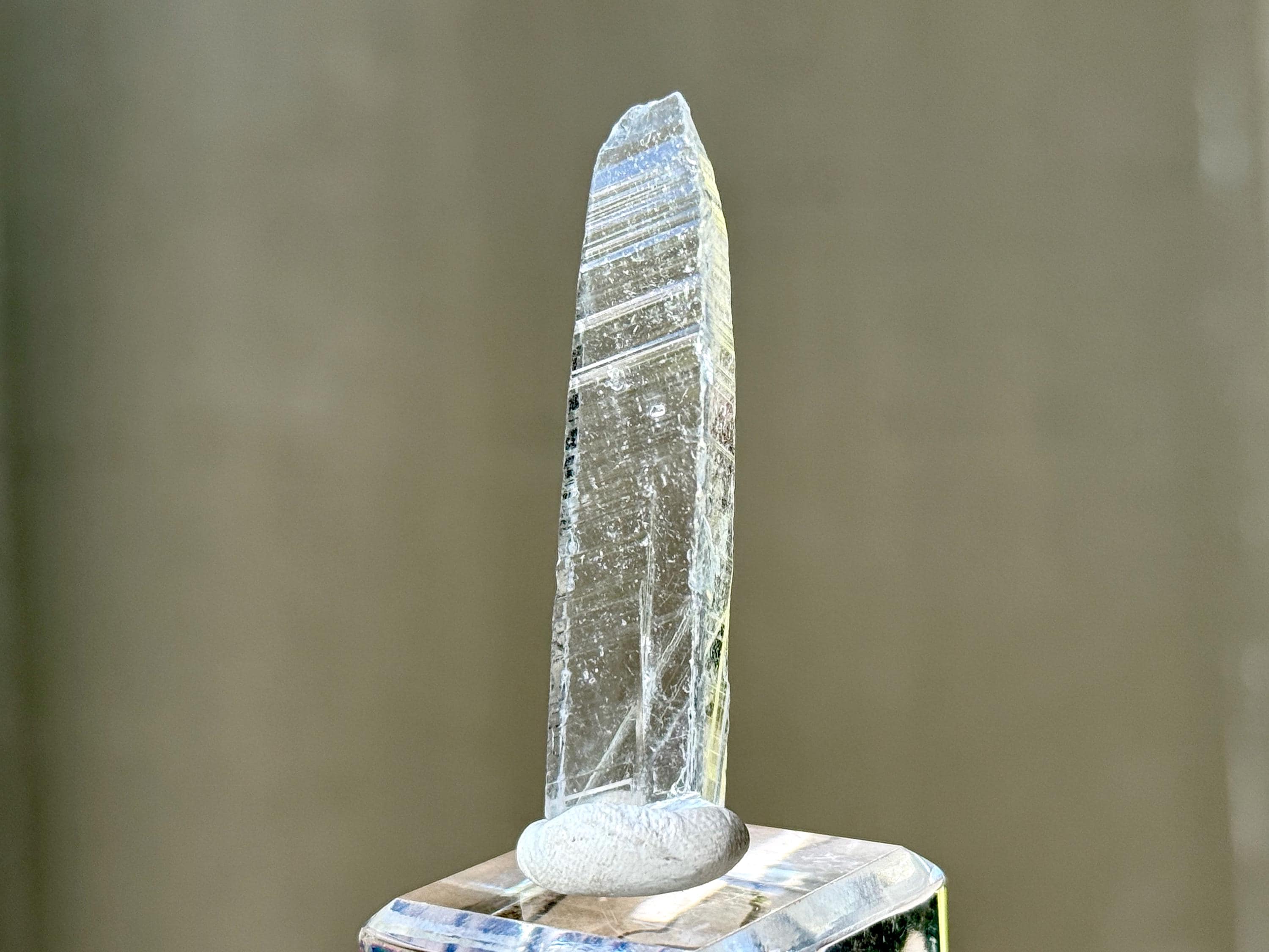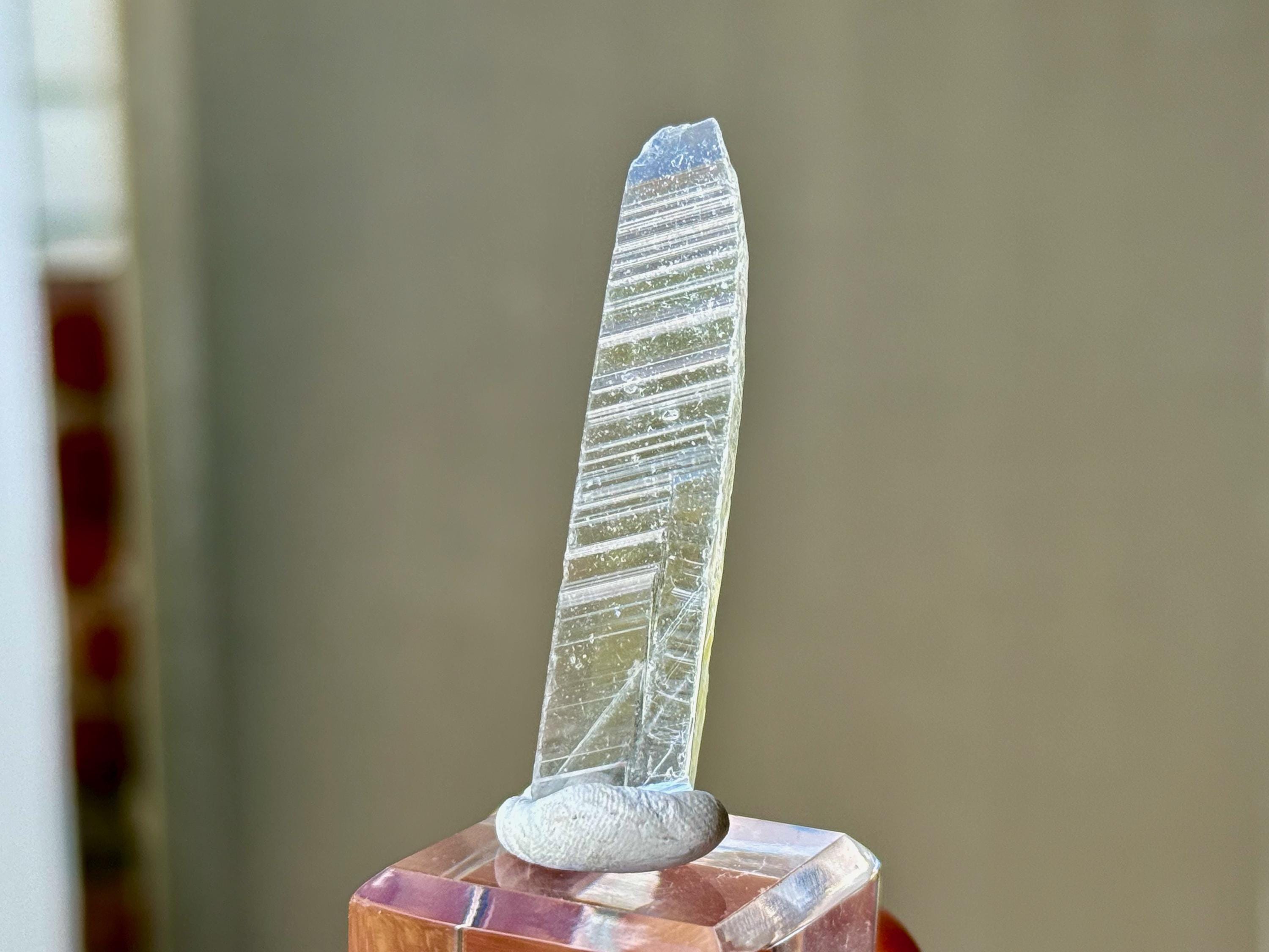 One of the higher grade pieces from this collection, this Nifontovite features an elongated formation with water-clear clarity and diagonal striations on its broad sides.