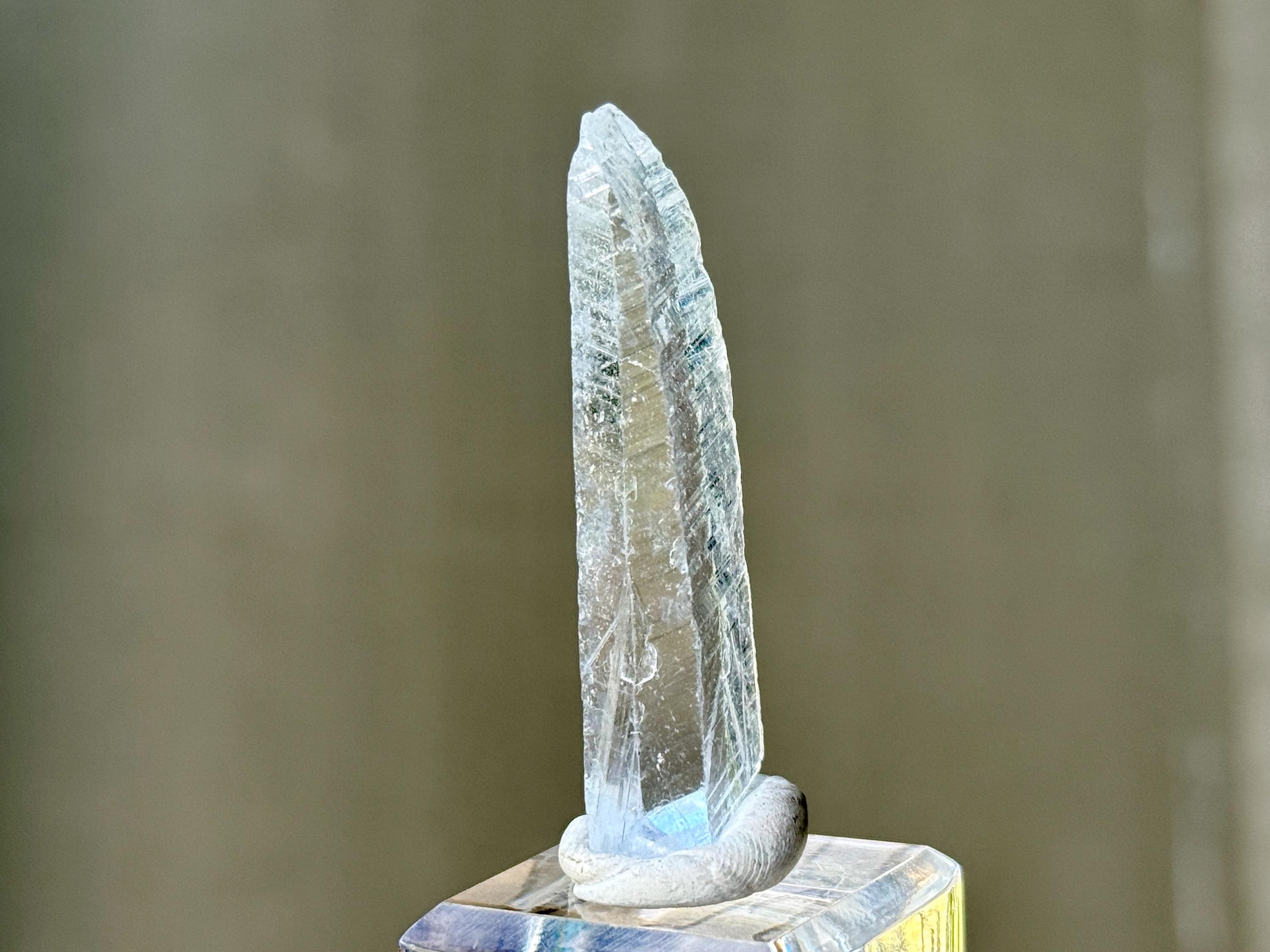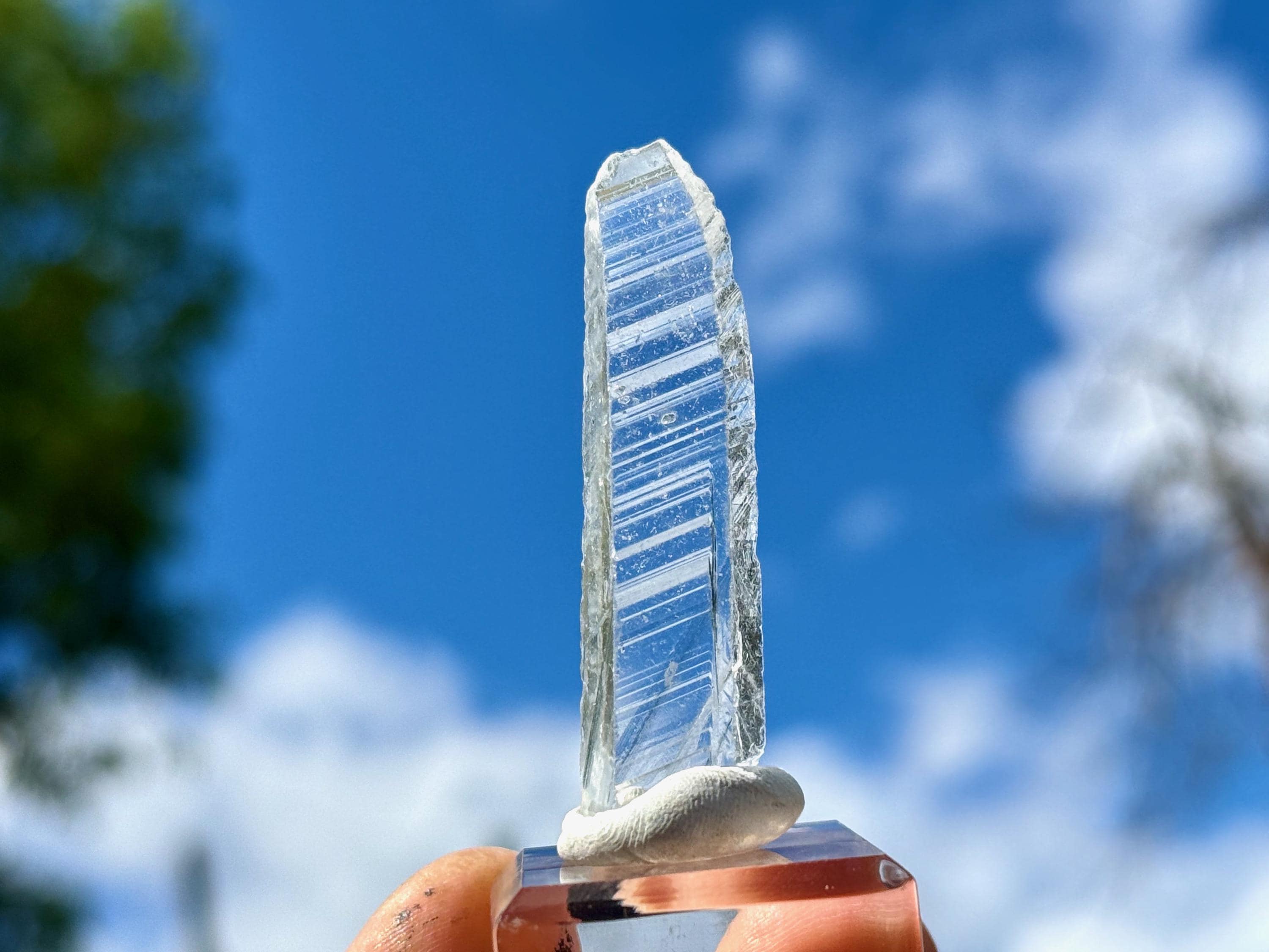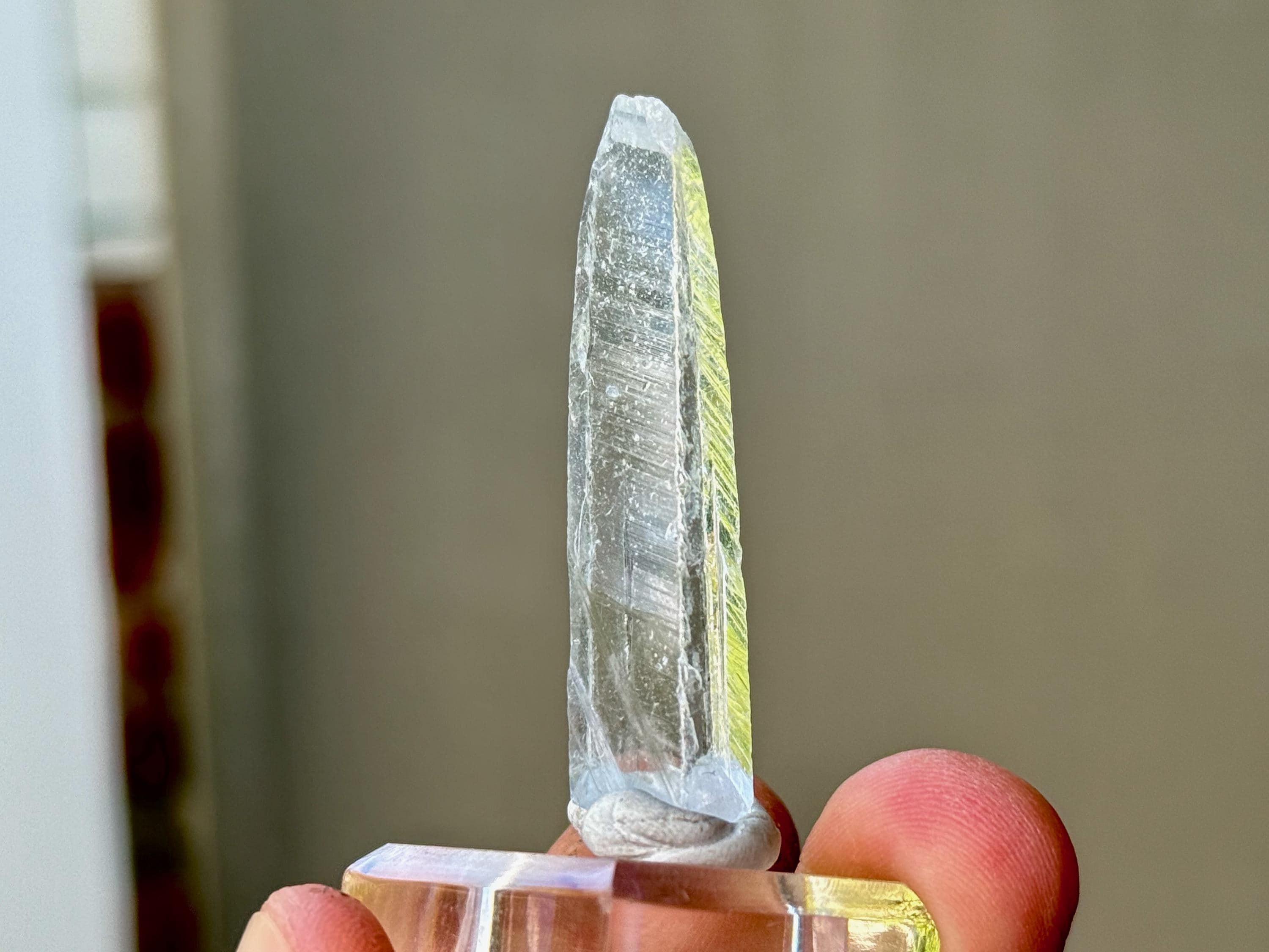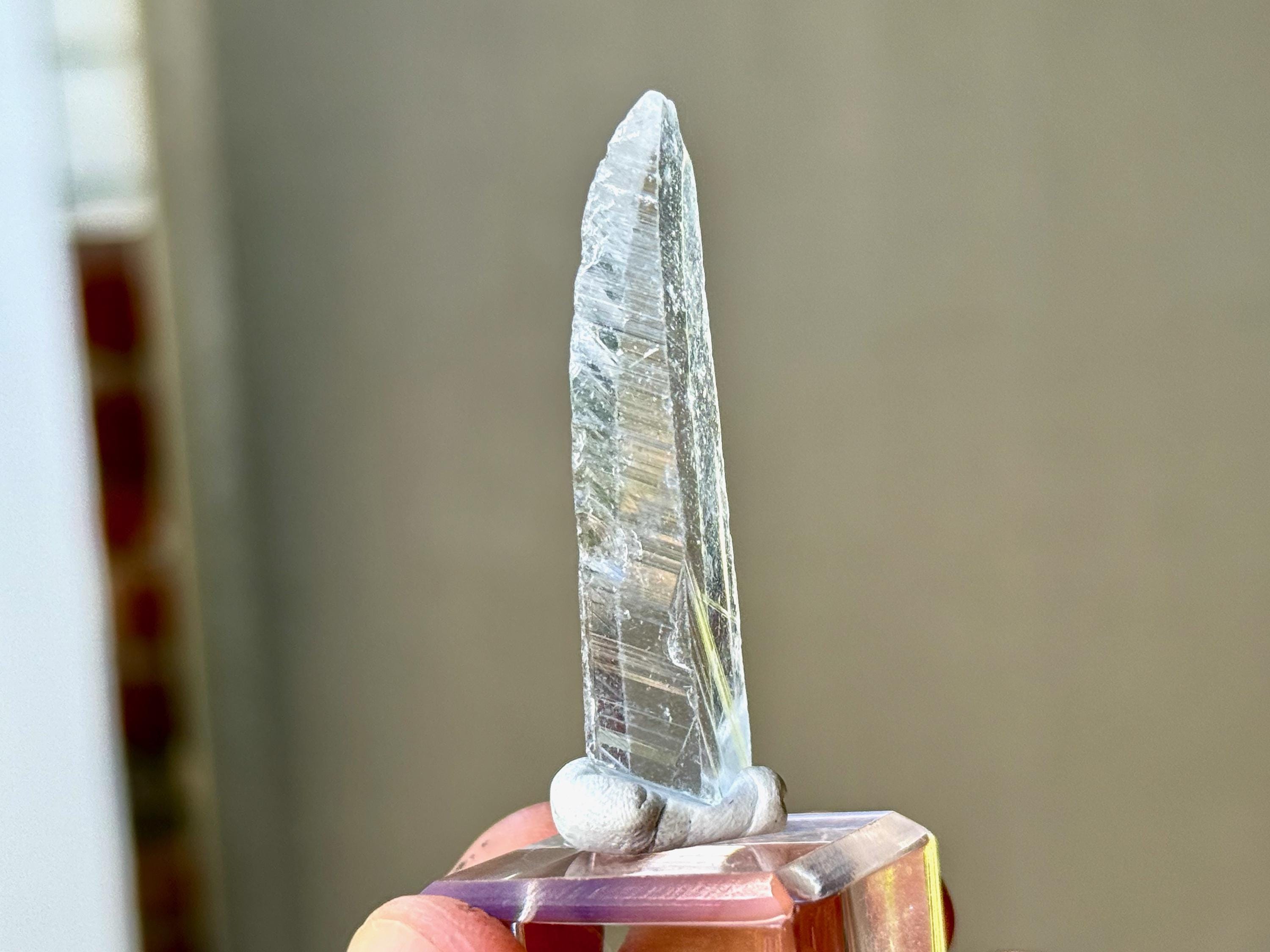 One of the higher grade pieces from this collection, this Nifontovite features an elongated formation with water-clear clarity and diagonal striations on its broad sides.