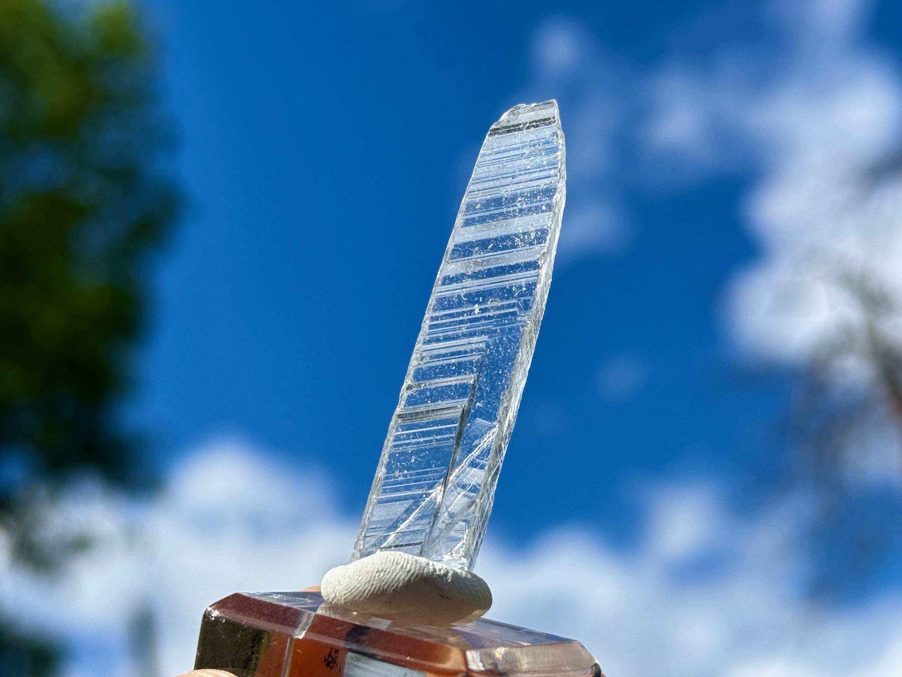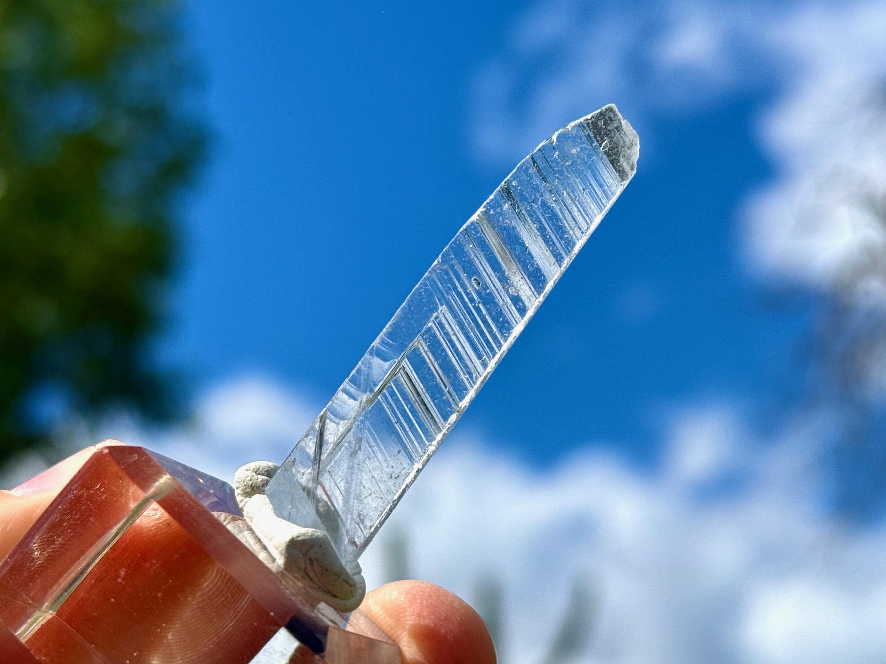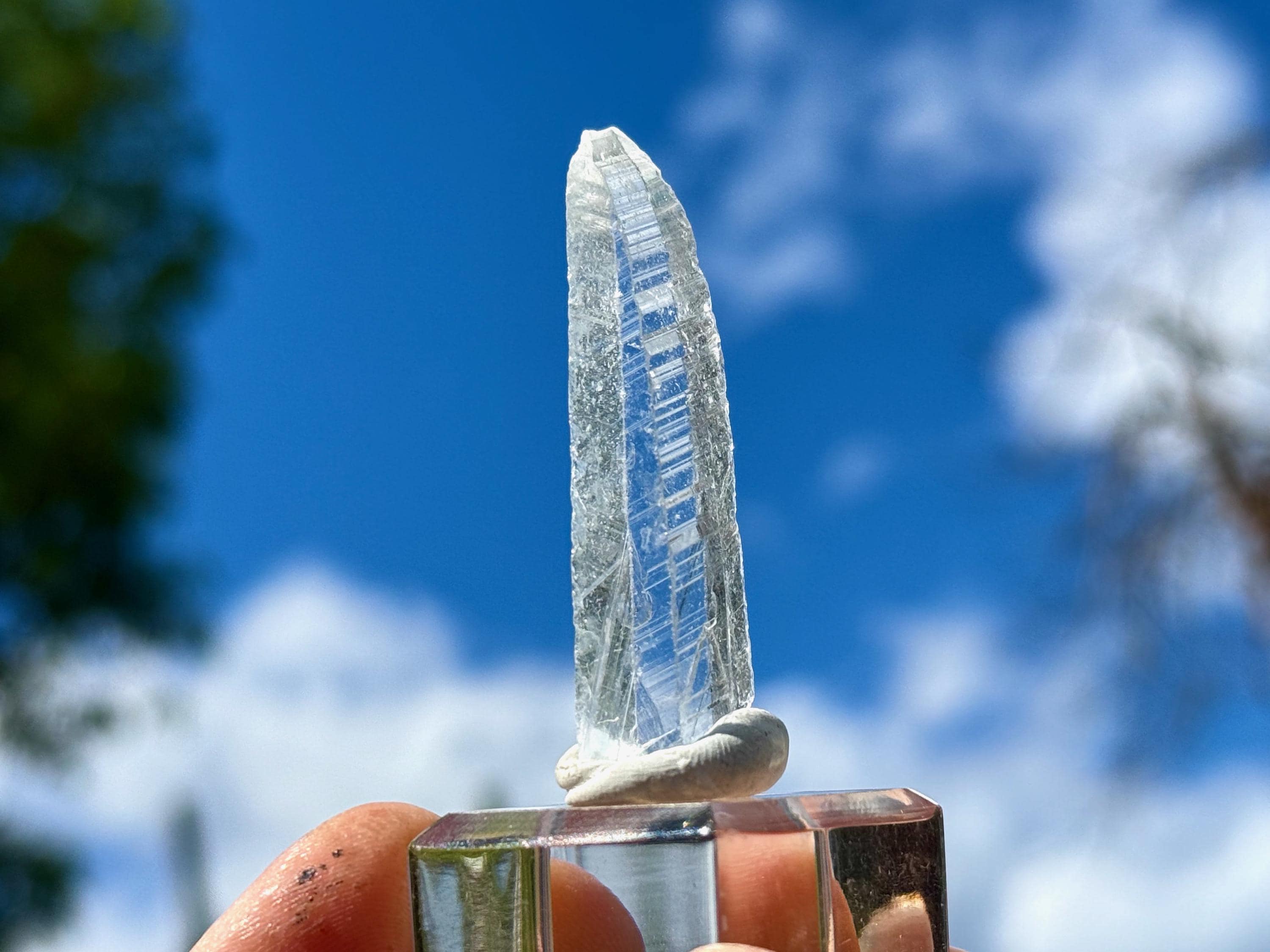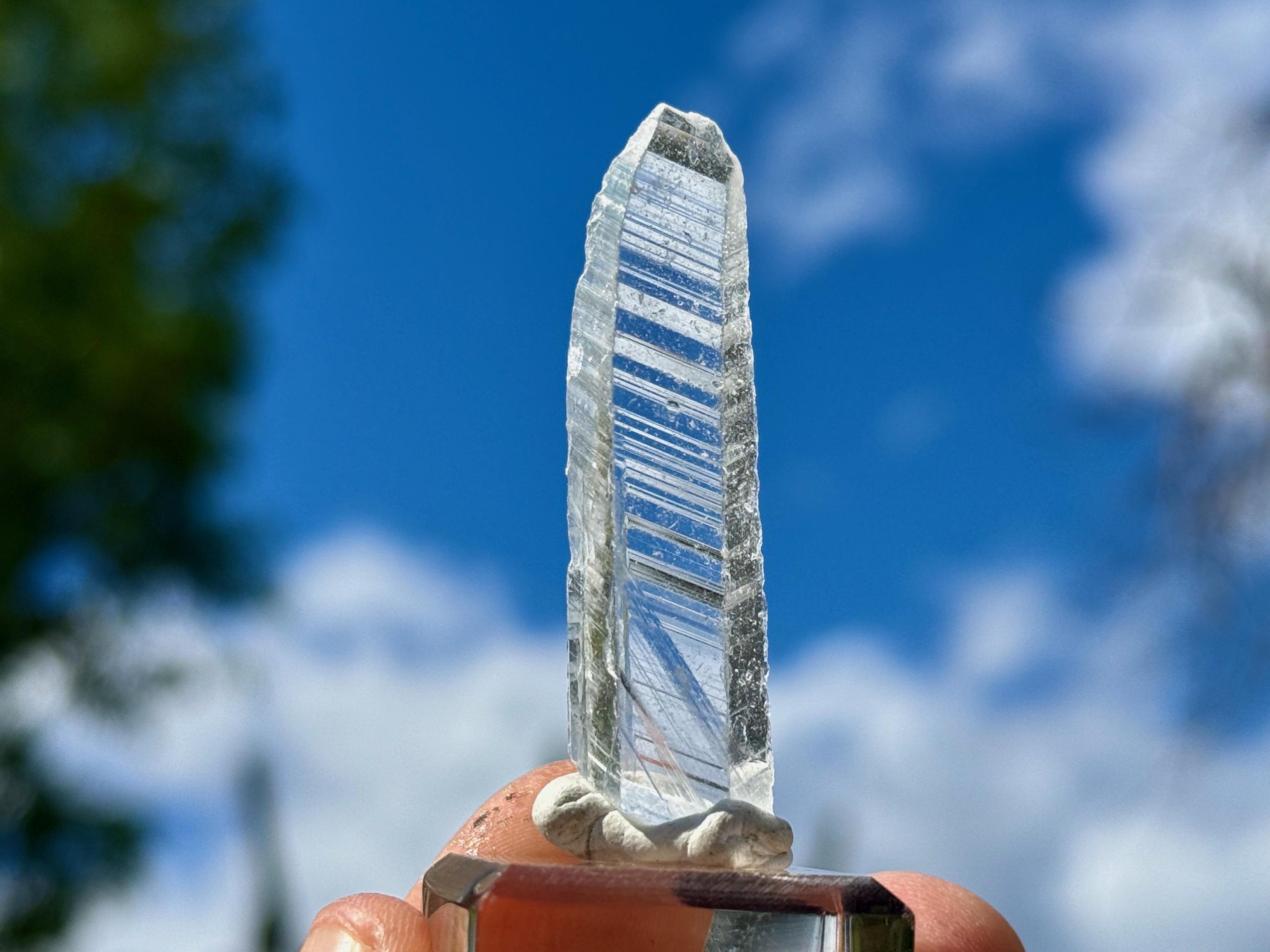 One of the higher grade pieces from this collection, this Nifontovite features an elongated formation with water-clear clarity and diagonal striations on its broad sides.