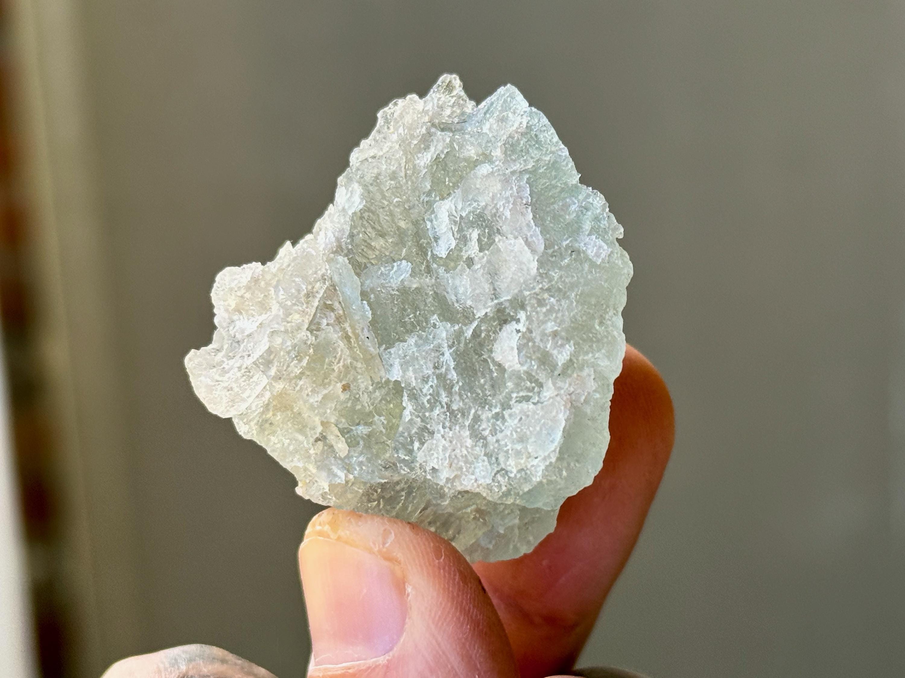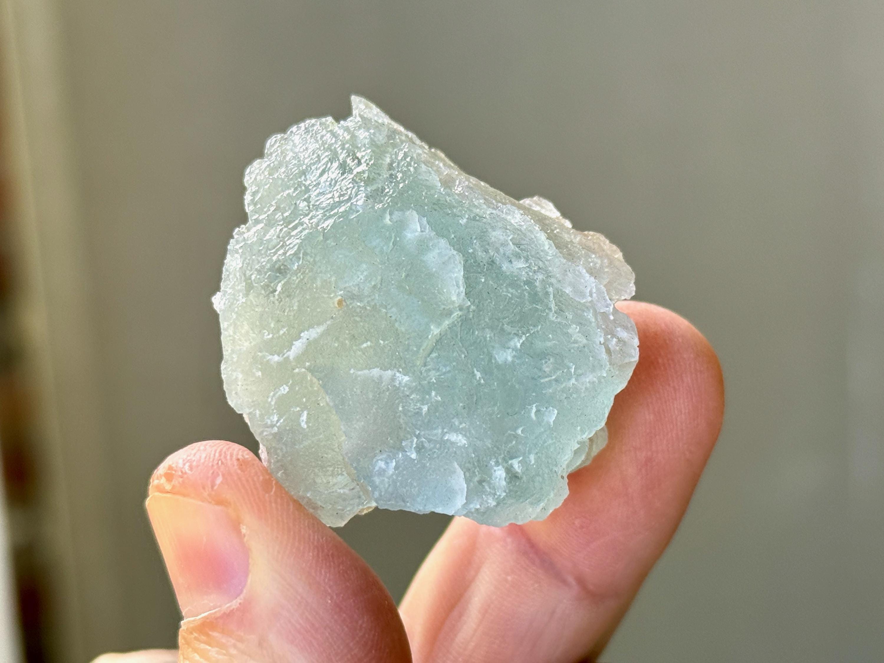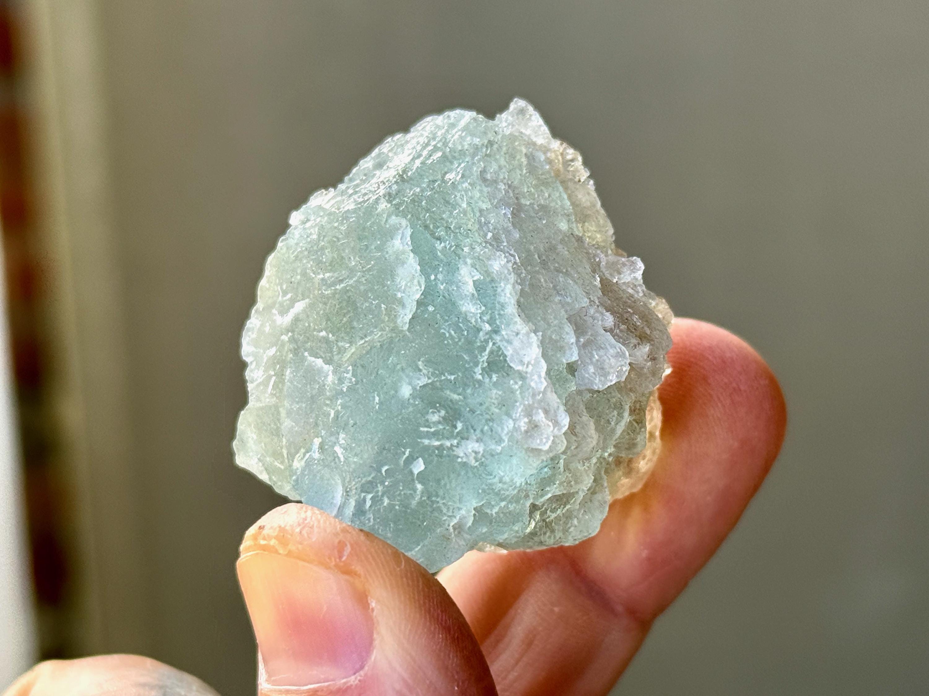 This natural Aquamarine crystal with hydrothermal etchings comes from a recent find in Santa Cruz, Espírito Santo, Brazil. Aquamarine is the blue mineral in the Beryl family and is a powerful crystal for aiding in self-expression and emotional cleansing.