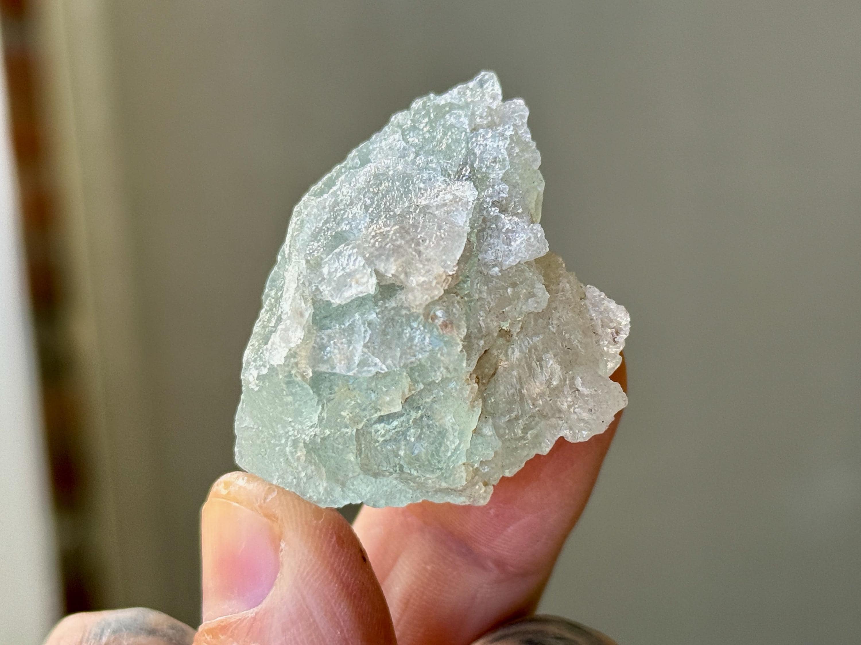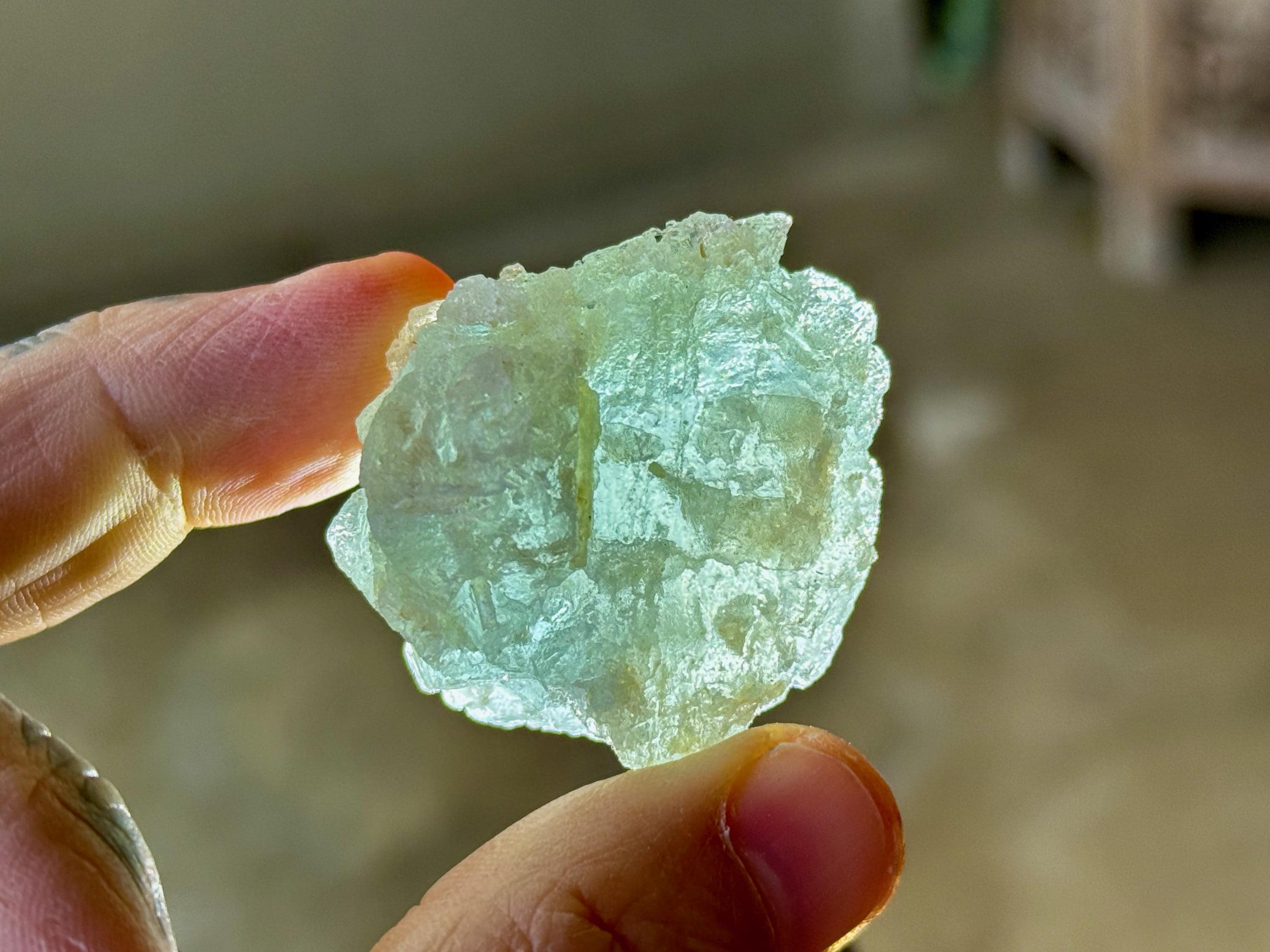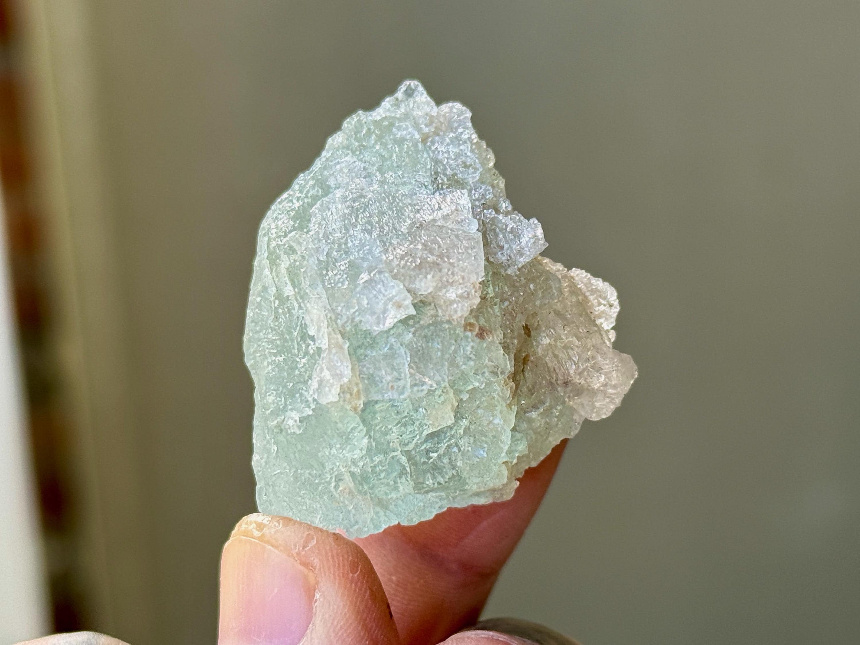 This natural Aquamarine crystal with hydrothermal etchings comes from a recent find in Santa Cruz, Espírito Santo, Brazil. Aquamarine is the blue mineral in the Beryl family and is a powerful crystal for aiding in self-expression and emotional cleansing.