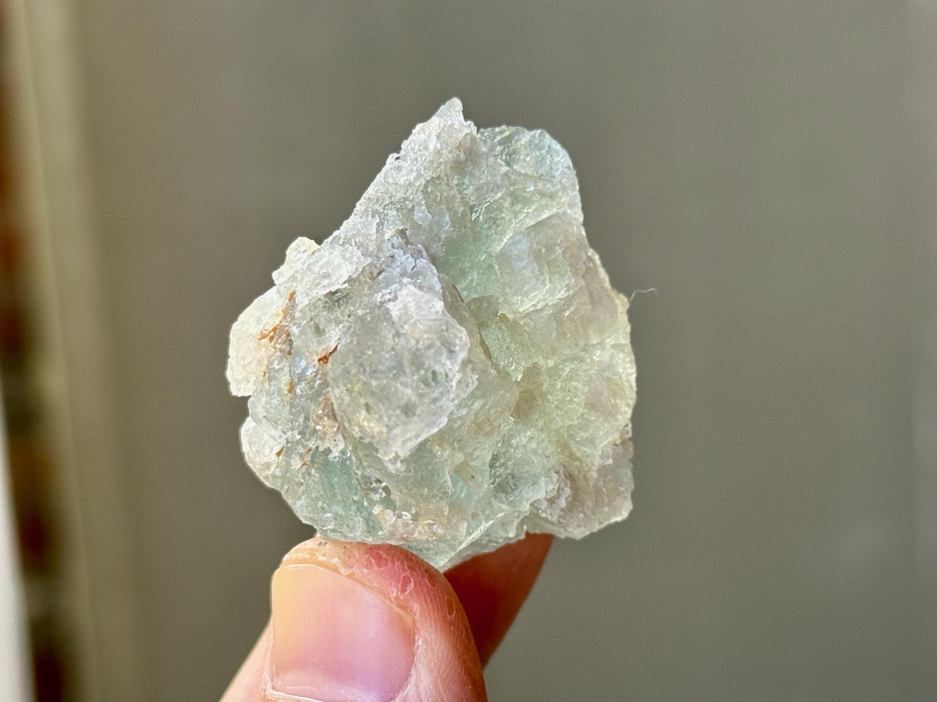 A lovely pale blue color to this superb Aquamarine crystal with an array of hydrothermally etched textures throughout. When backlit, as in Photos 1, 3-4, we can see just how beautifully it passes light.