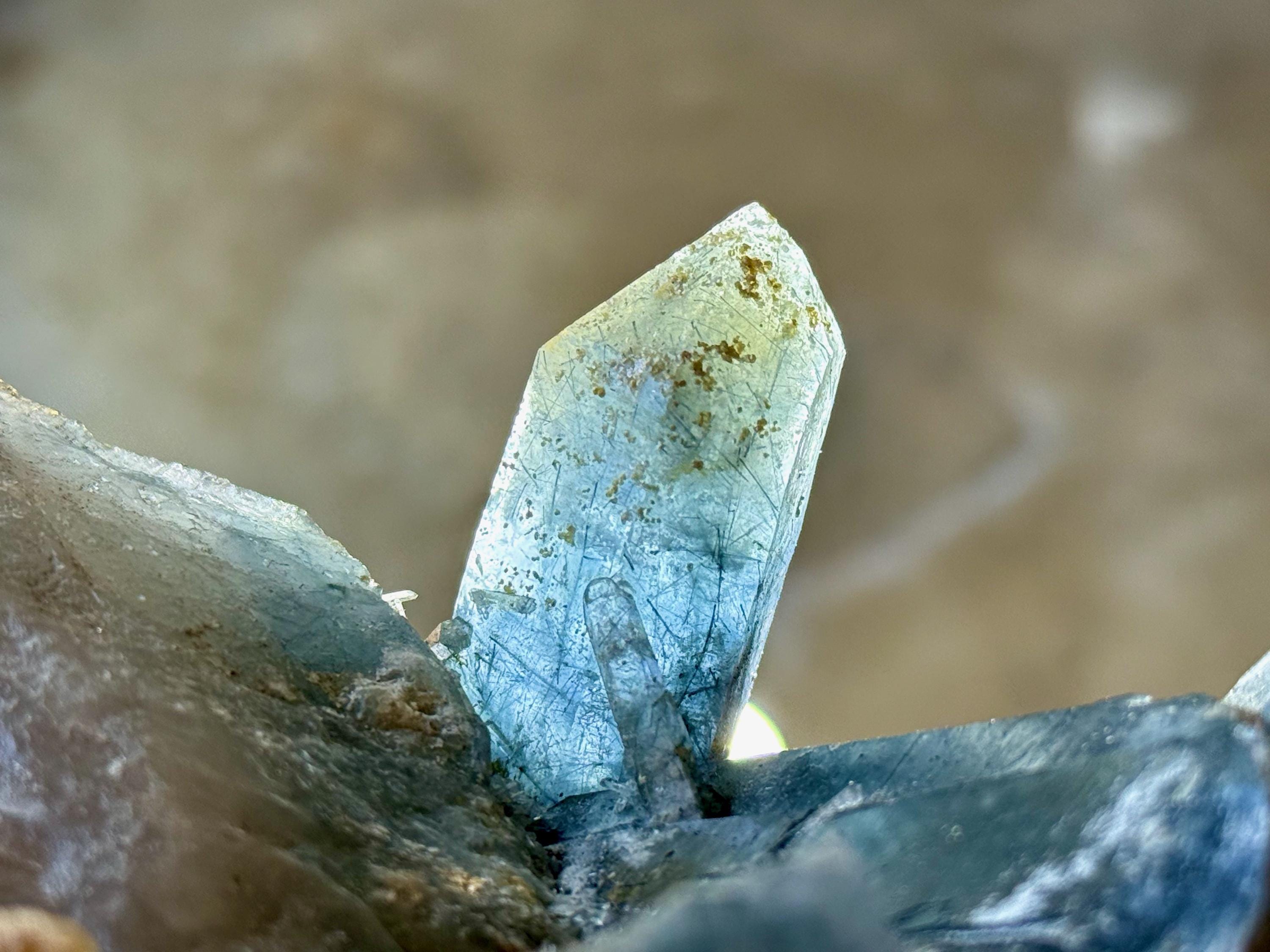 This crystal is also one of the most fully "included" crystals of this kind we've ever seen, as it is just filled with vibrant Blue Tourmaline, in gradient shades that range from lighter and frostier, to deeper periwinkle and midnight blues.