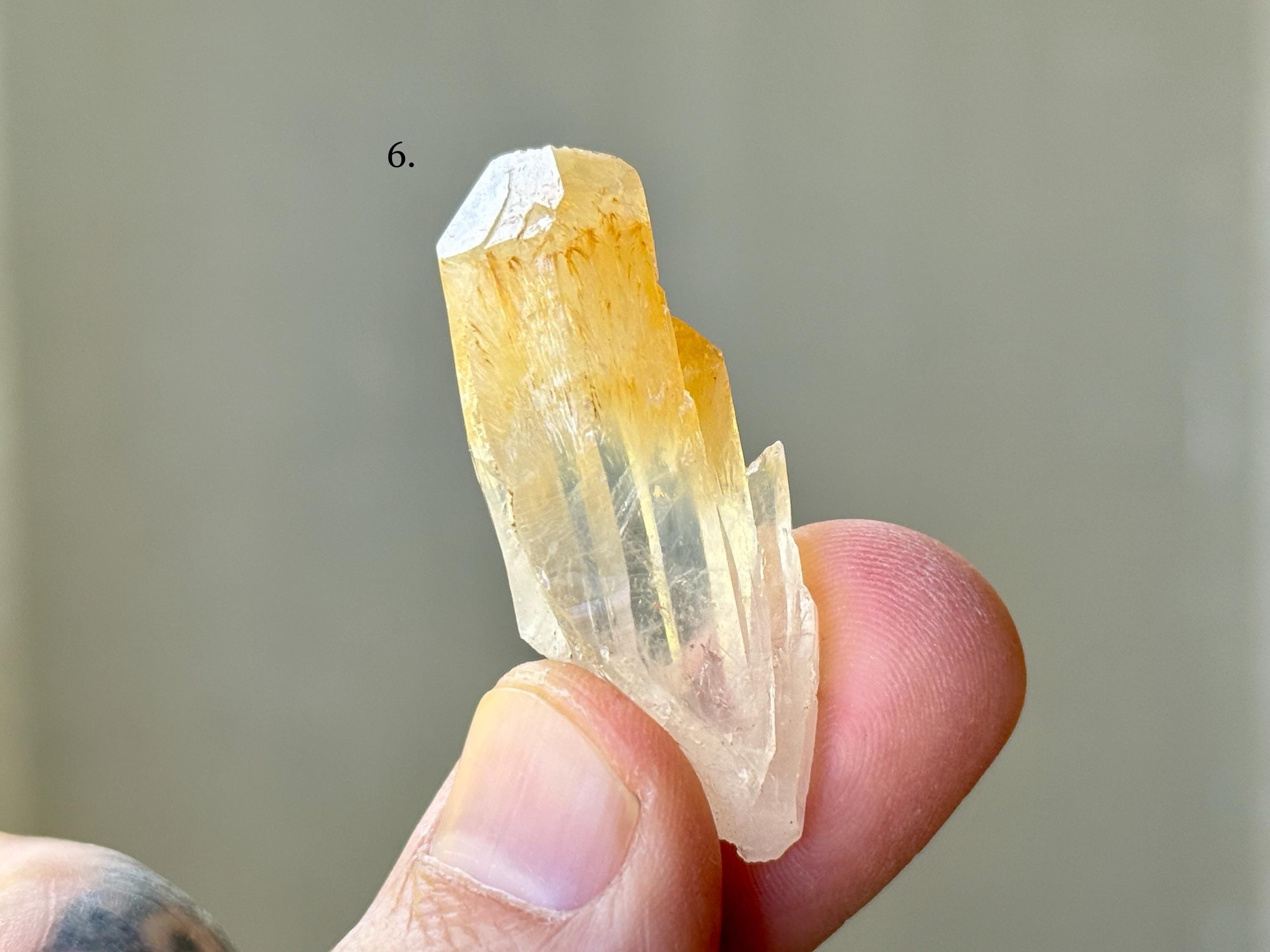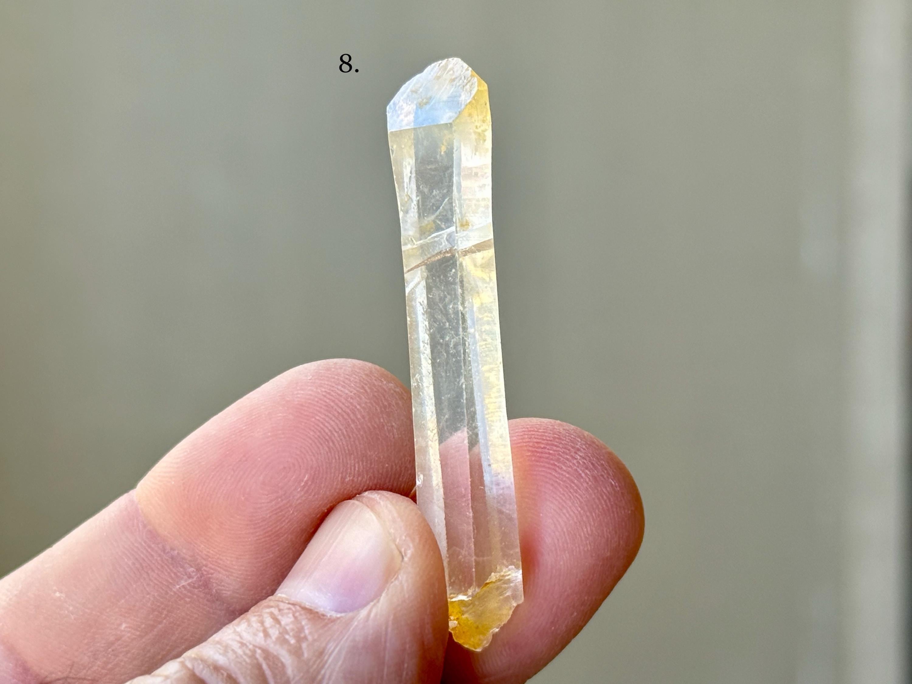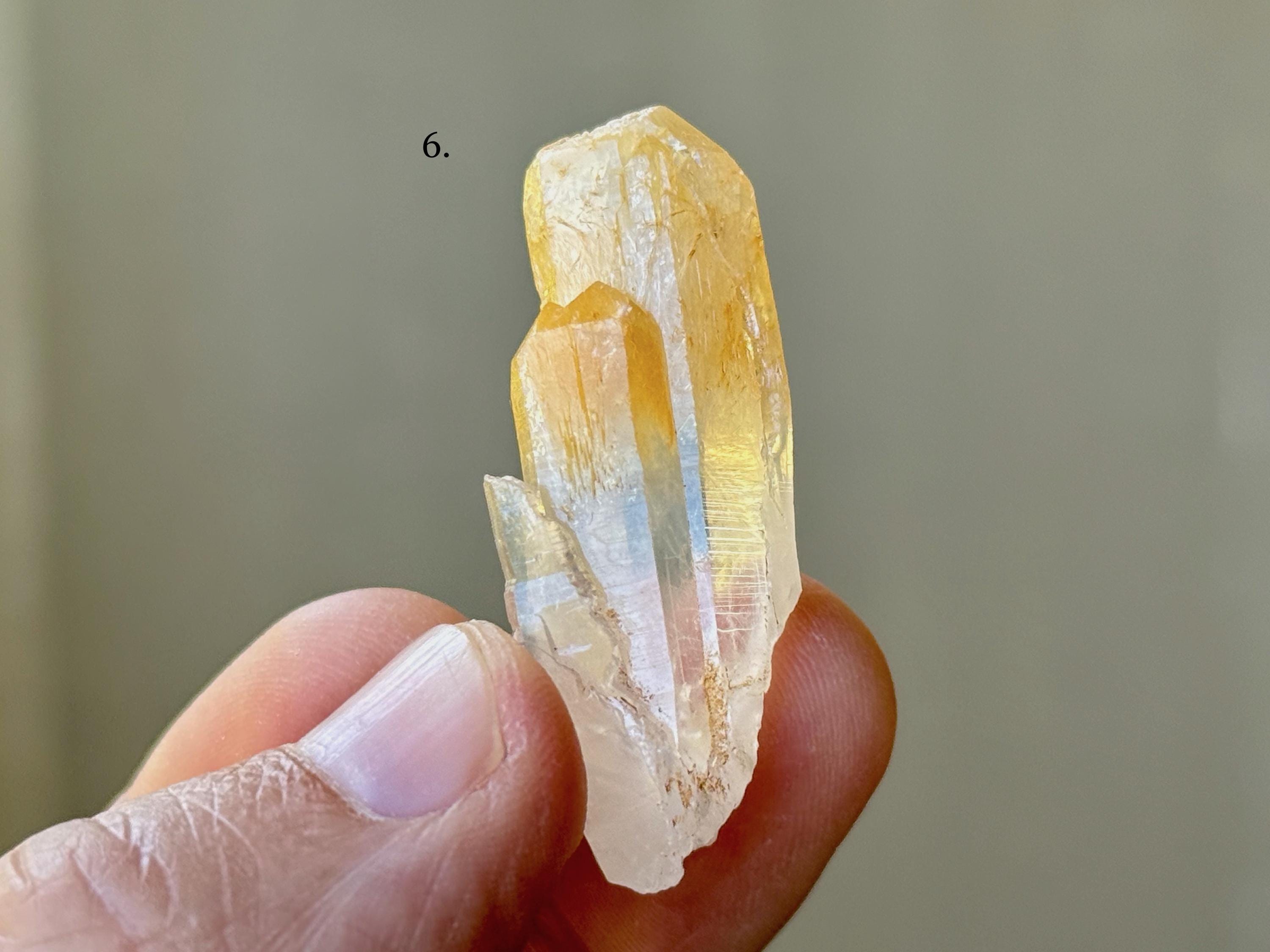 Each crystal is between 1.5" - 2.5" tall (4 cm - 6 cm) and weighs between 5g - 14g.