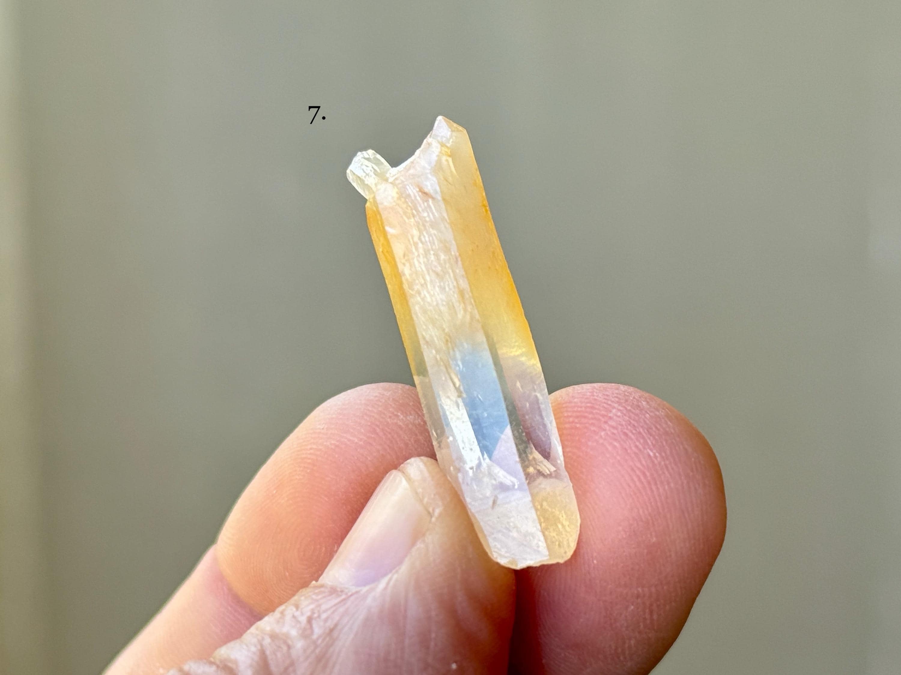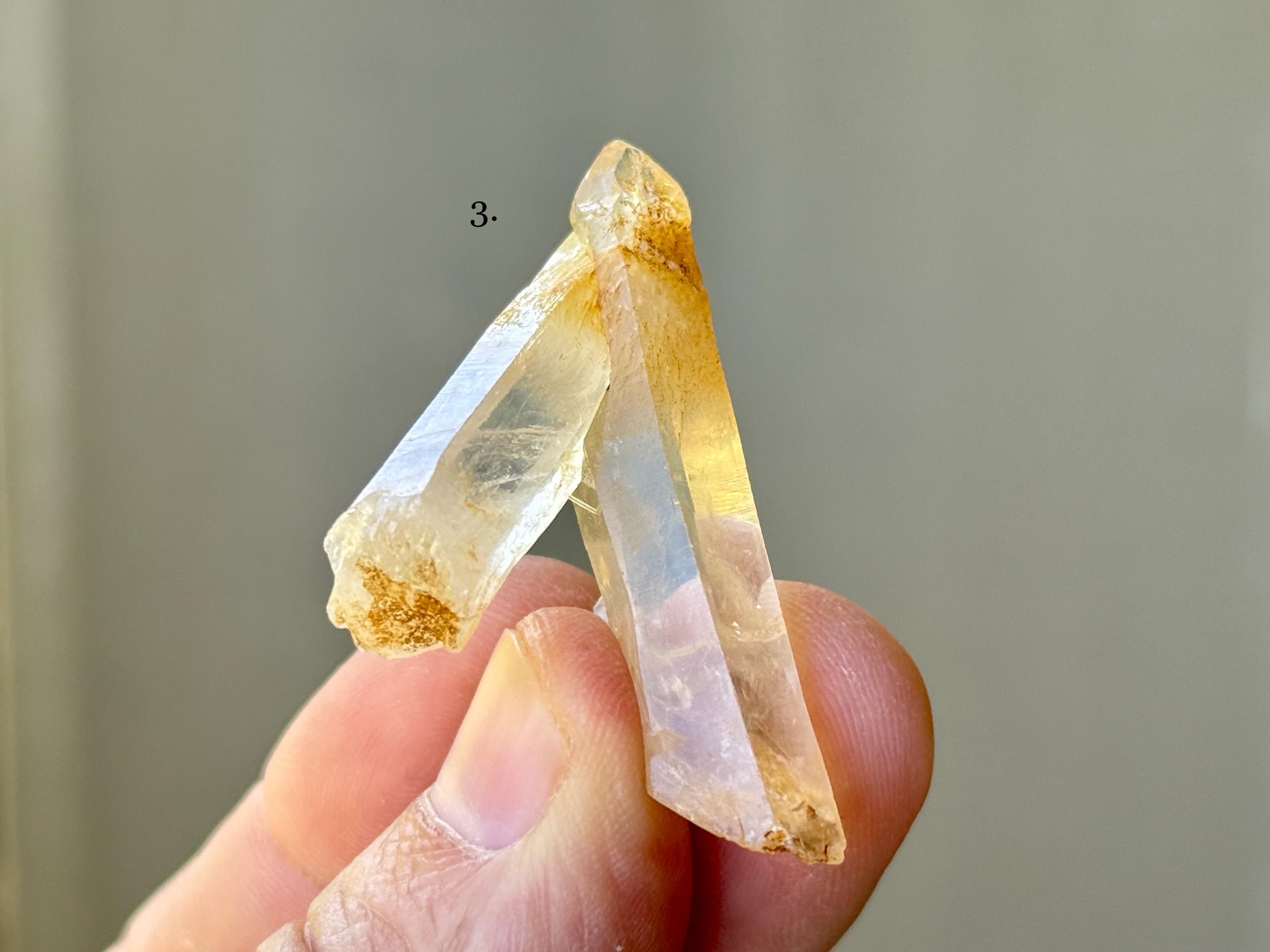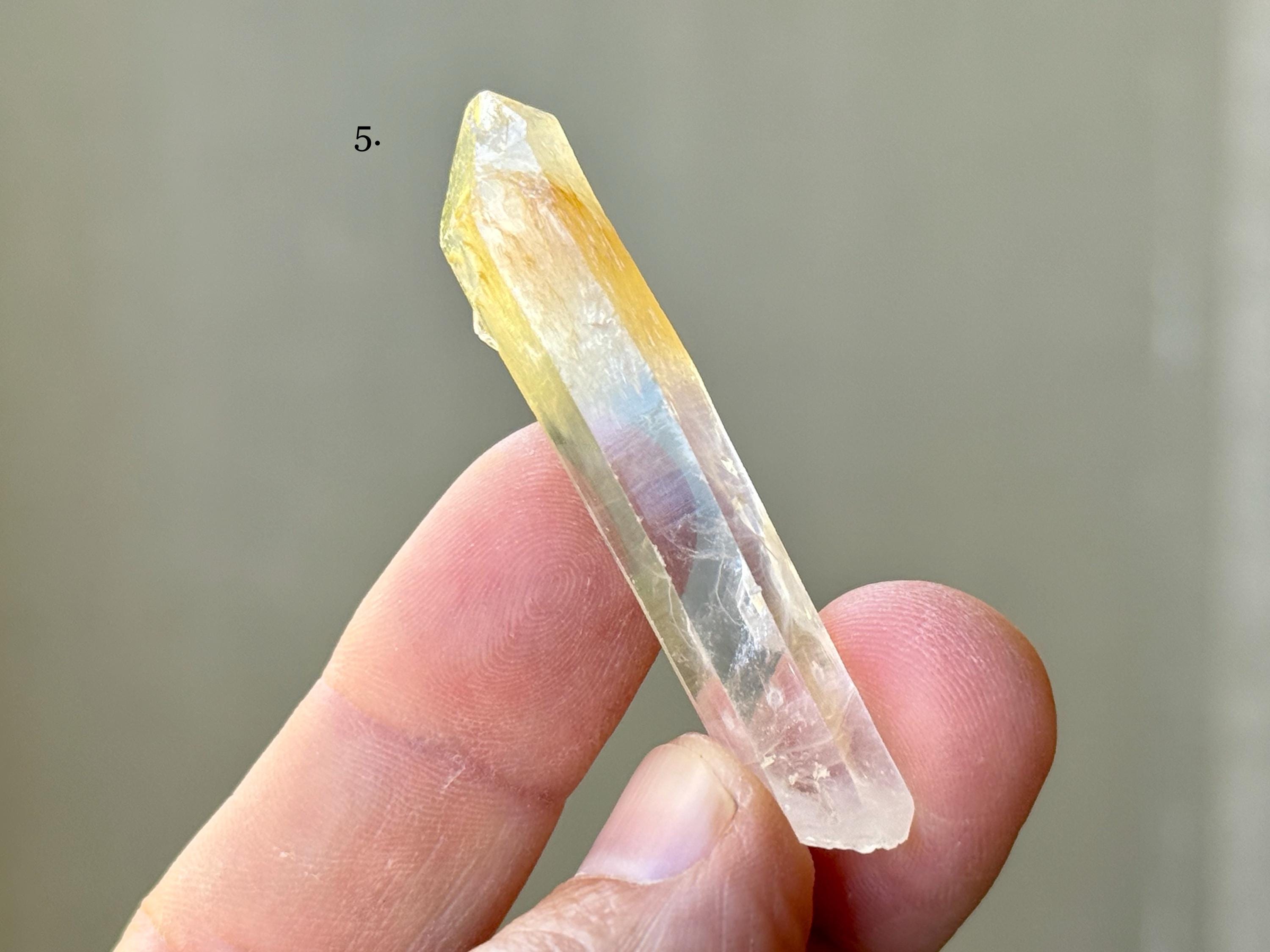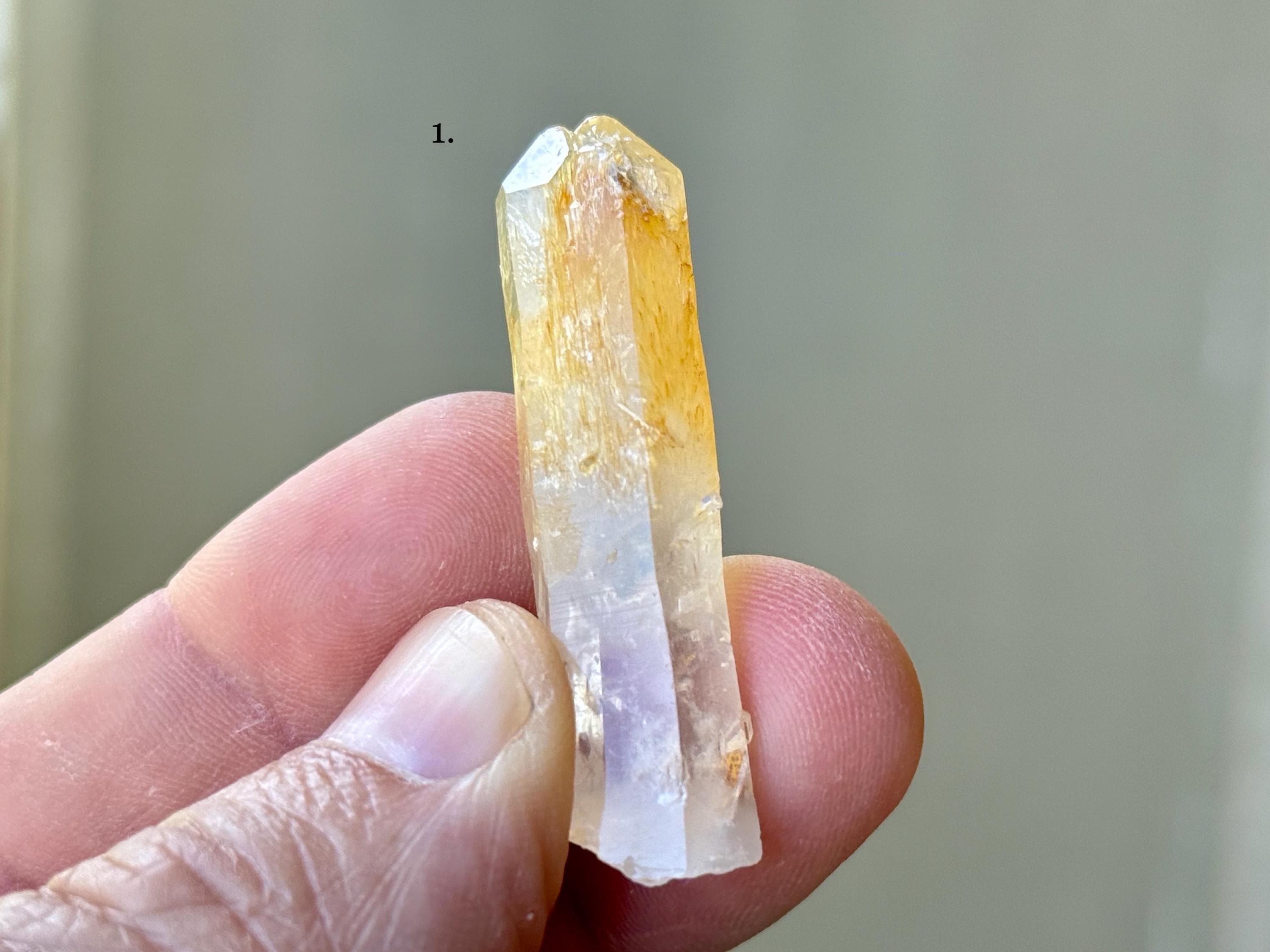 Each crystal is between 1.5" - 2.5" tall (4 cm - 6 cm) and weighs between 5g - 14g.