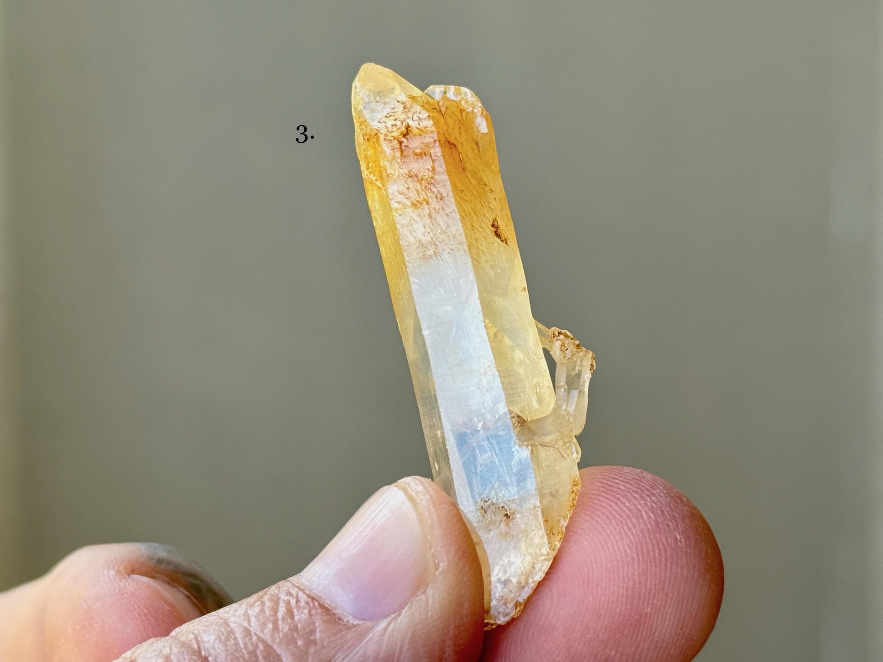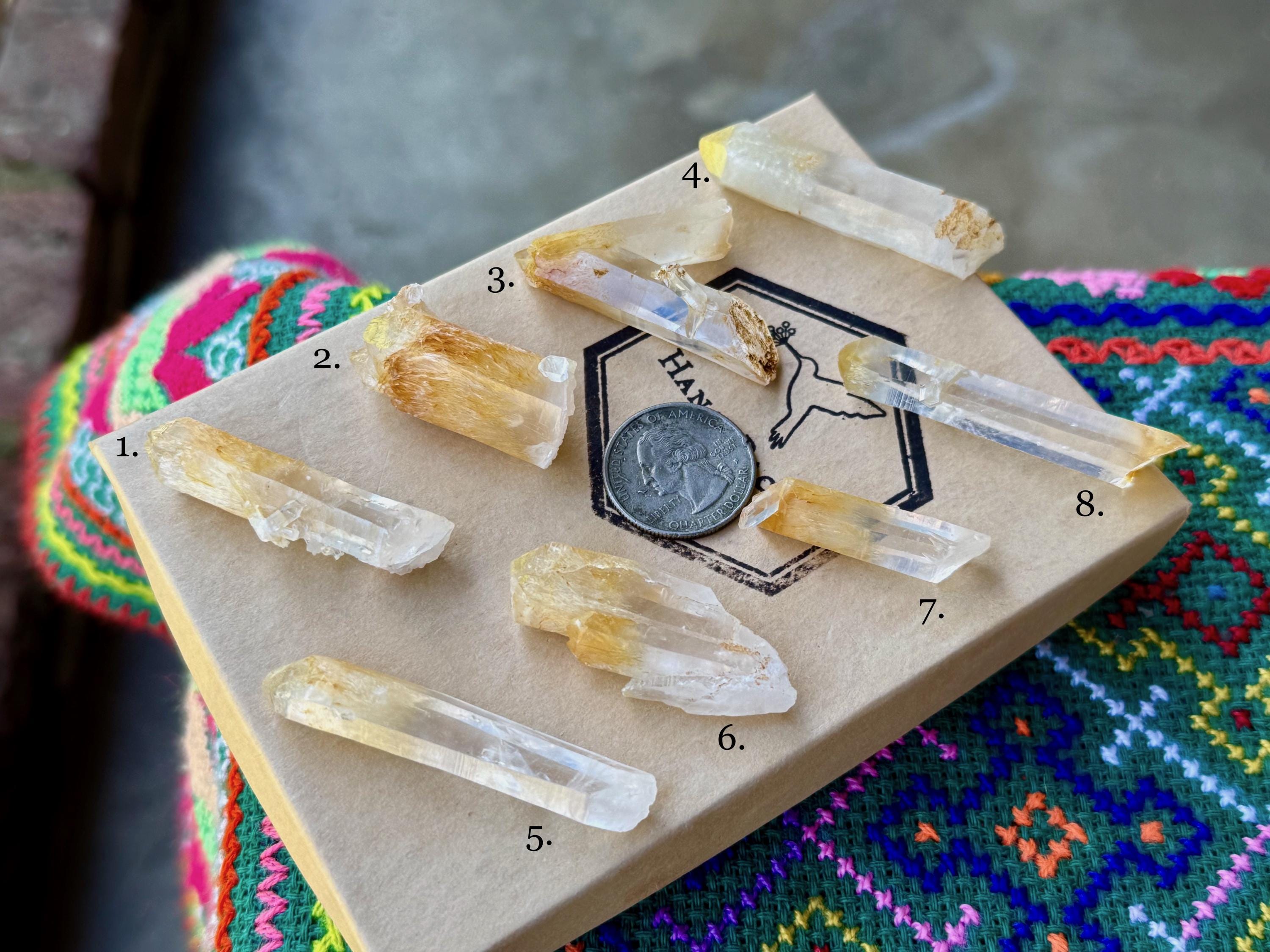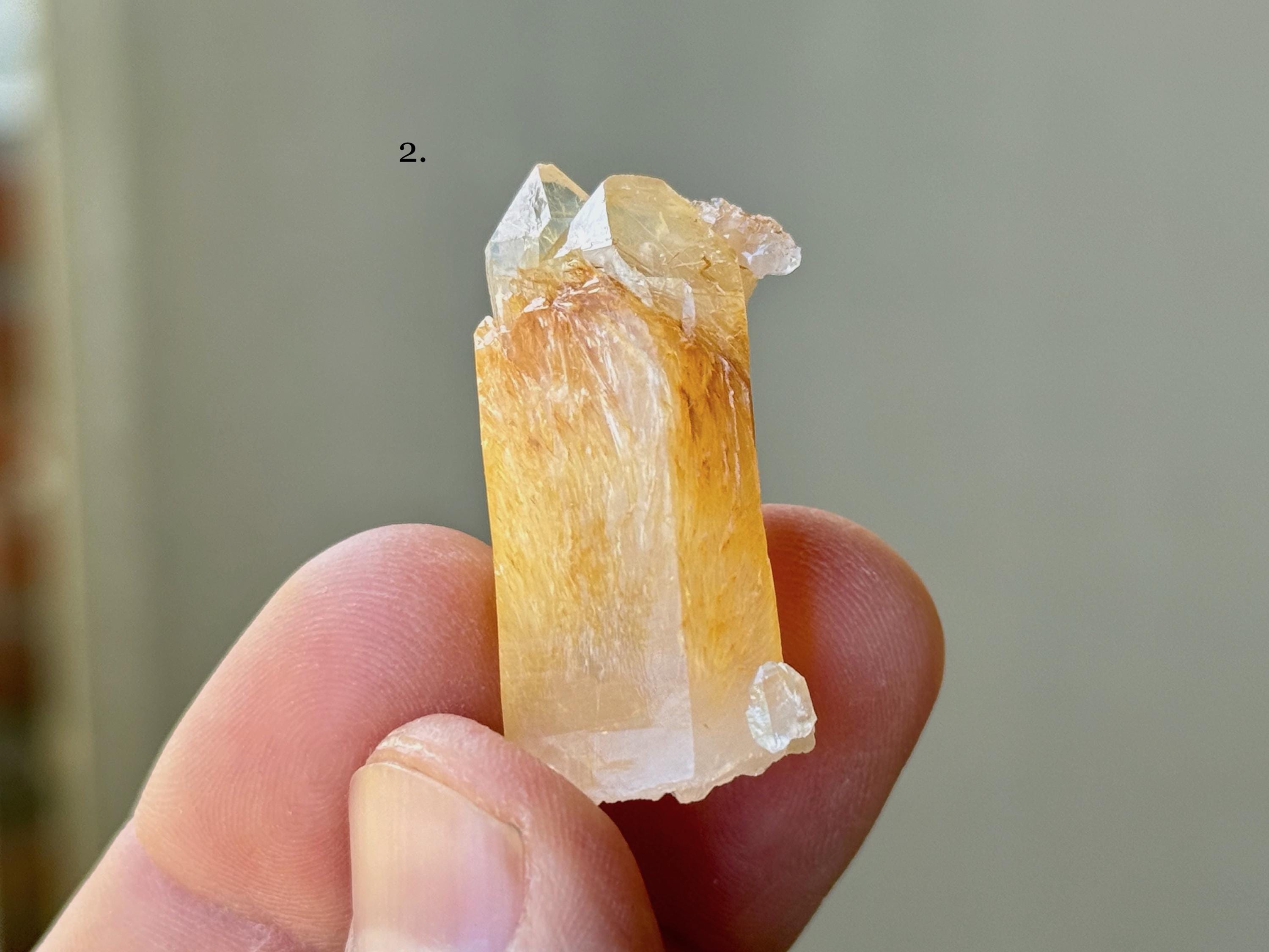 These vibrant, natural Mango Quartz crystals come from a 2020 find in Quipama, Boyaca, Colombia. Each selection is numbered, simply select the one(s) you'd like from the dropdown.