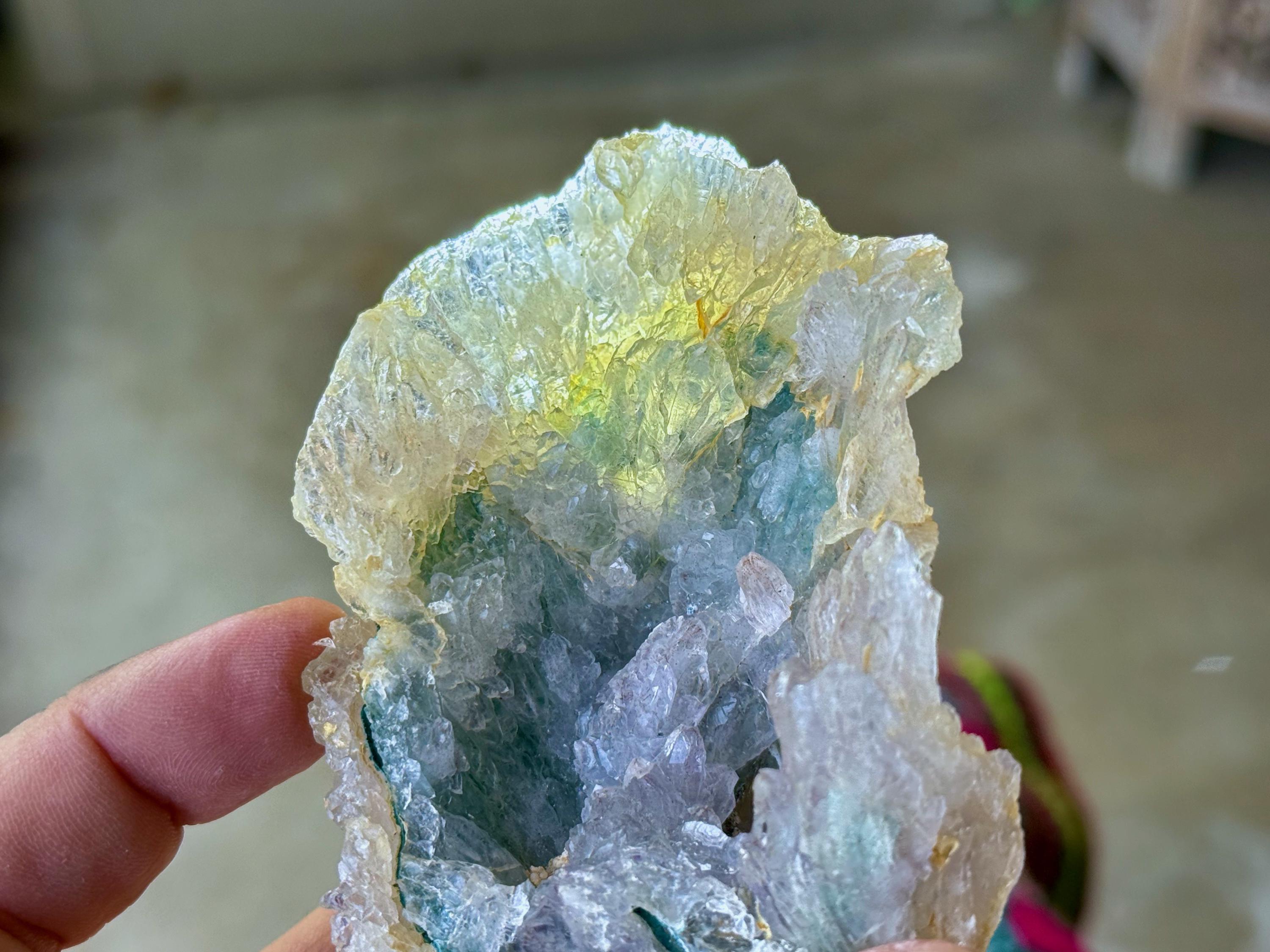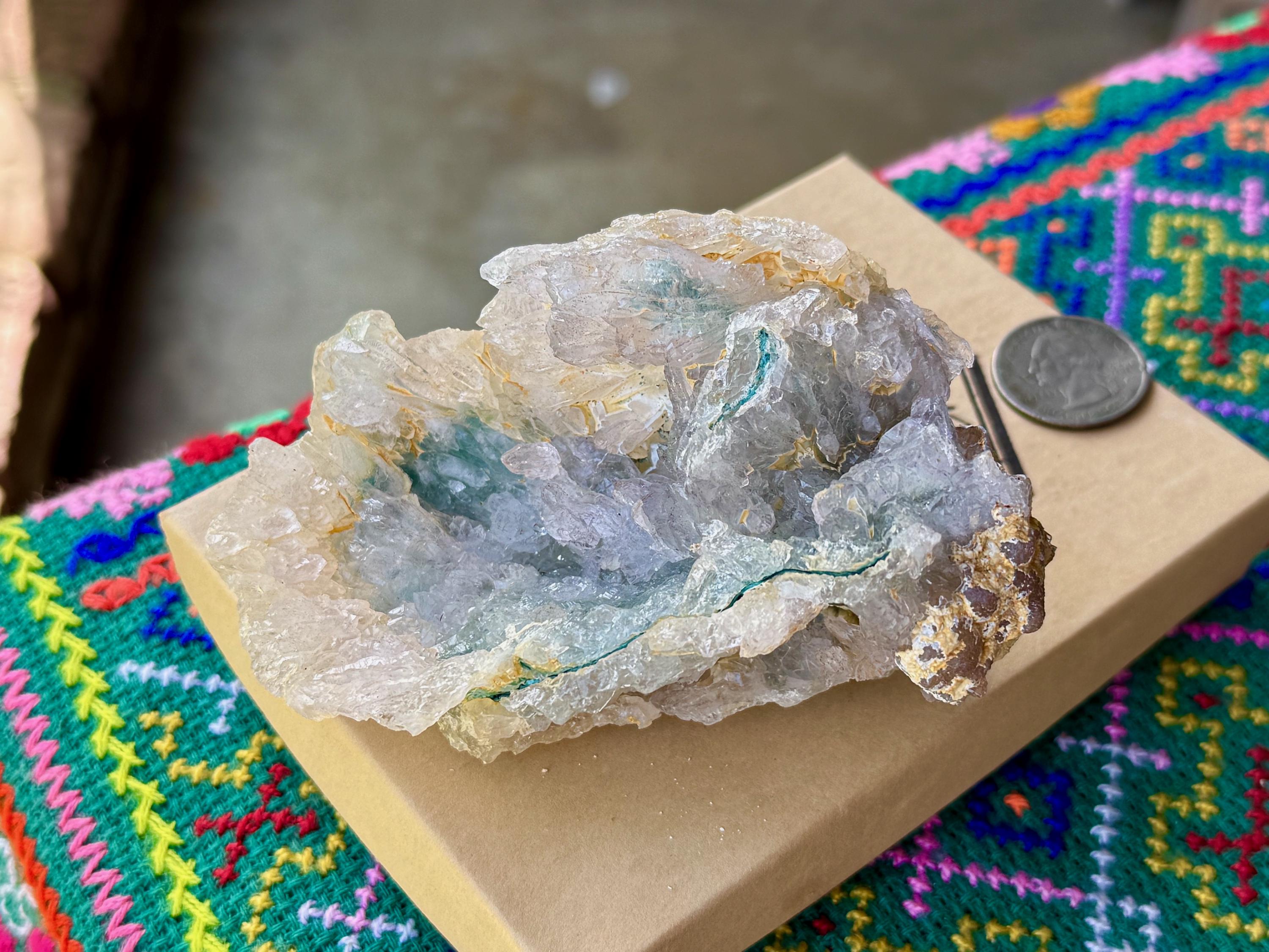 A vibrant array of colors and beautiful luster to this exquisite Amethyst Flower Quartz with Celadonite inclusion. It really looks like a crystalline seashell!