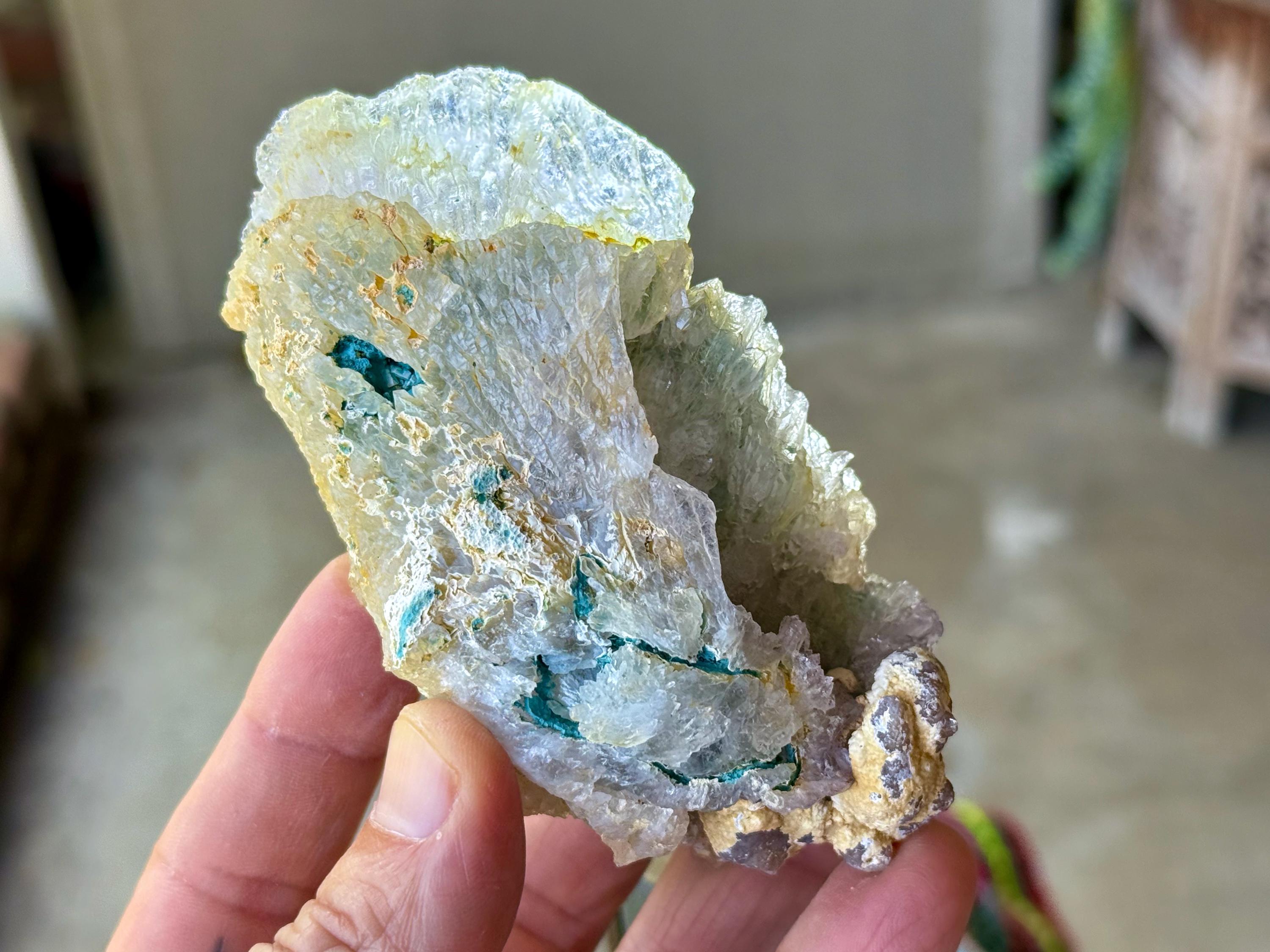 Celadonite is a powerful healer, but in the most gentle of ways with a soothing and peaceful energy, one of opening and abundance. In this way, it is known for supporting the respiratory system in the body, a wonderful crystal for use in breathwork or for those who have suffered respiratory issues. Celadonite's calming and supportive energy works to help bring one into alignment with him/herself and with his/her own life, promoting harmony, oneness and self-acceptance, as well as self-empowerment.