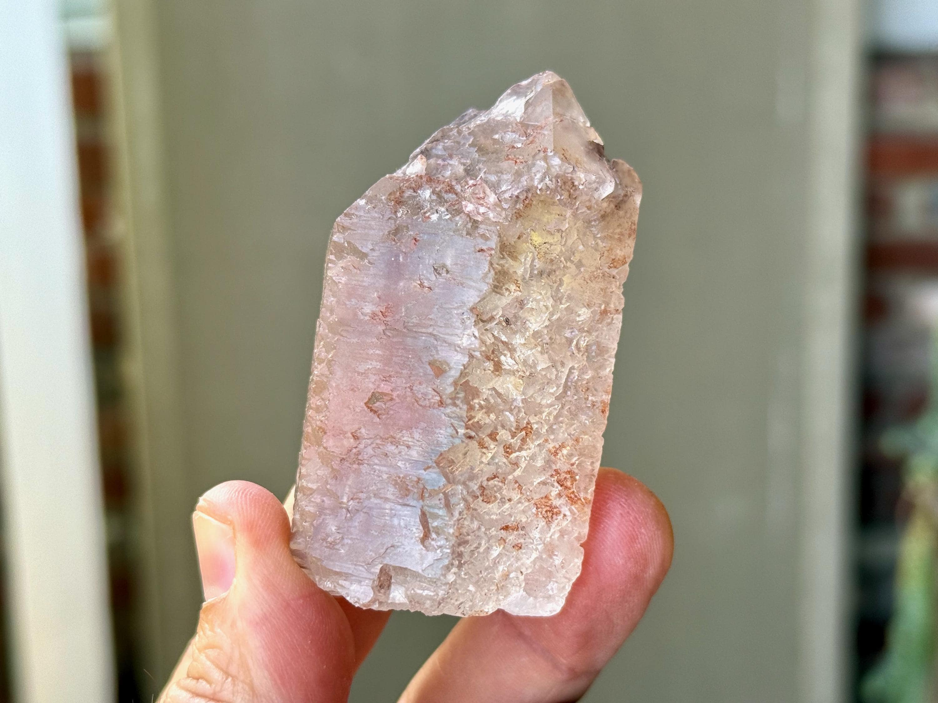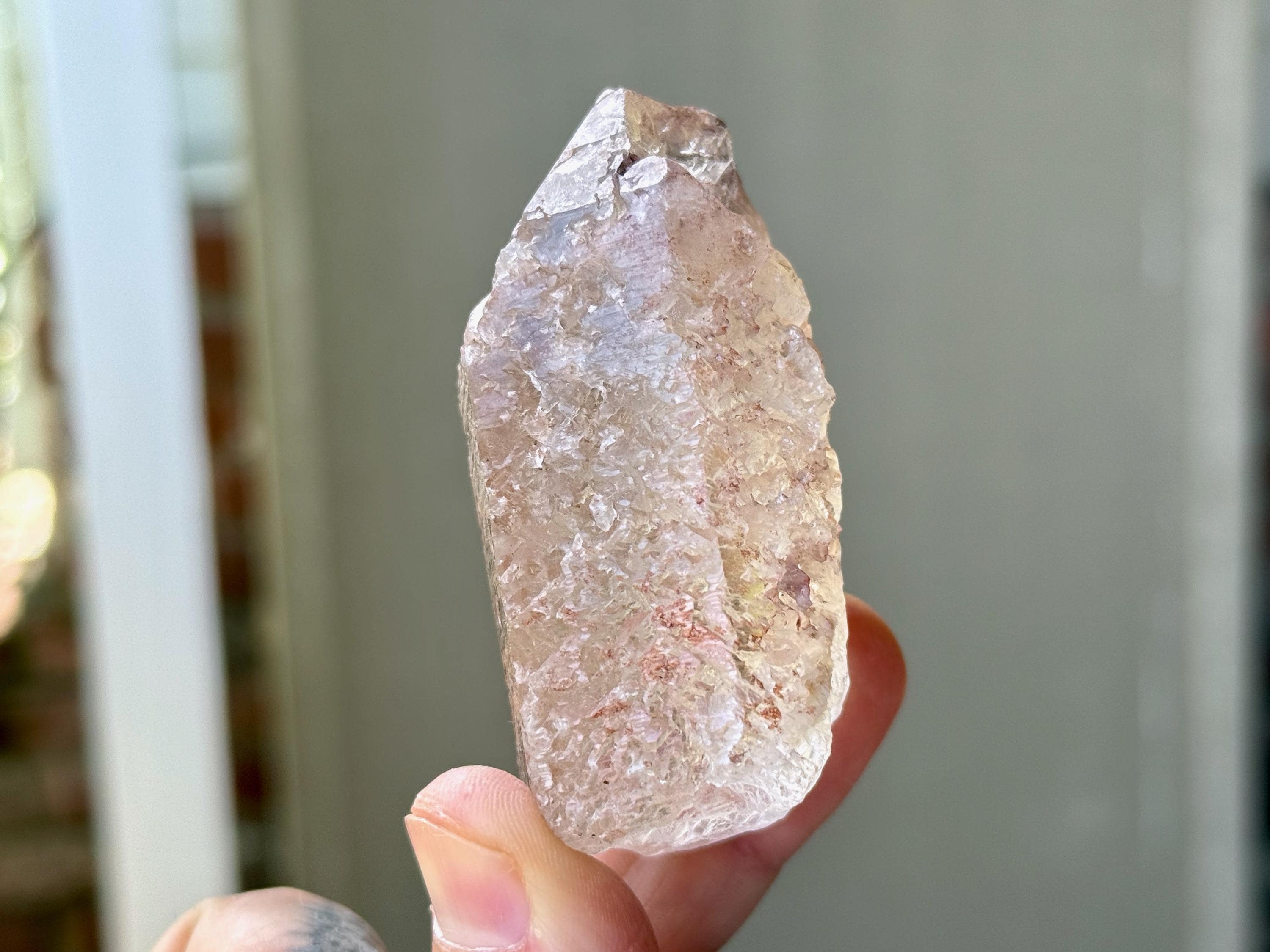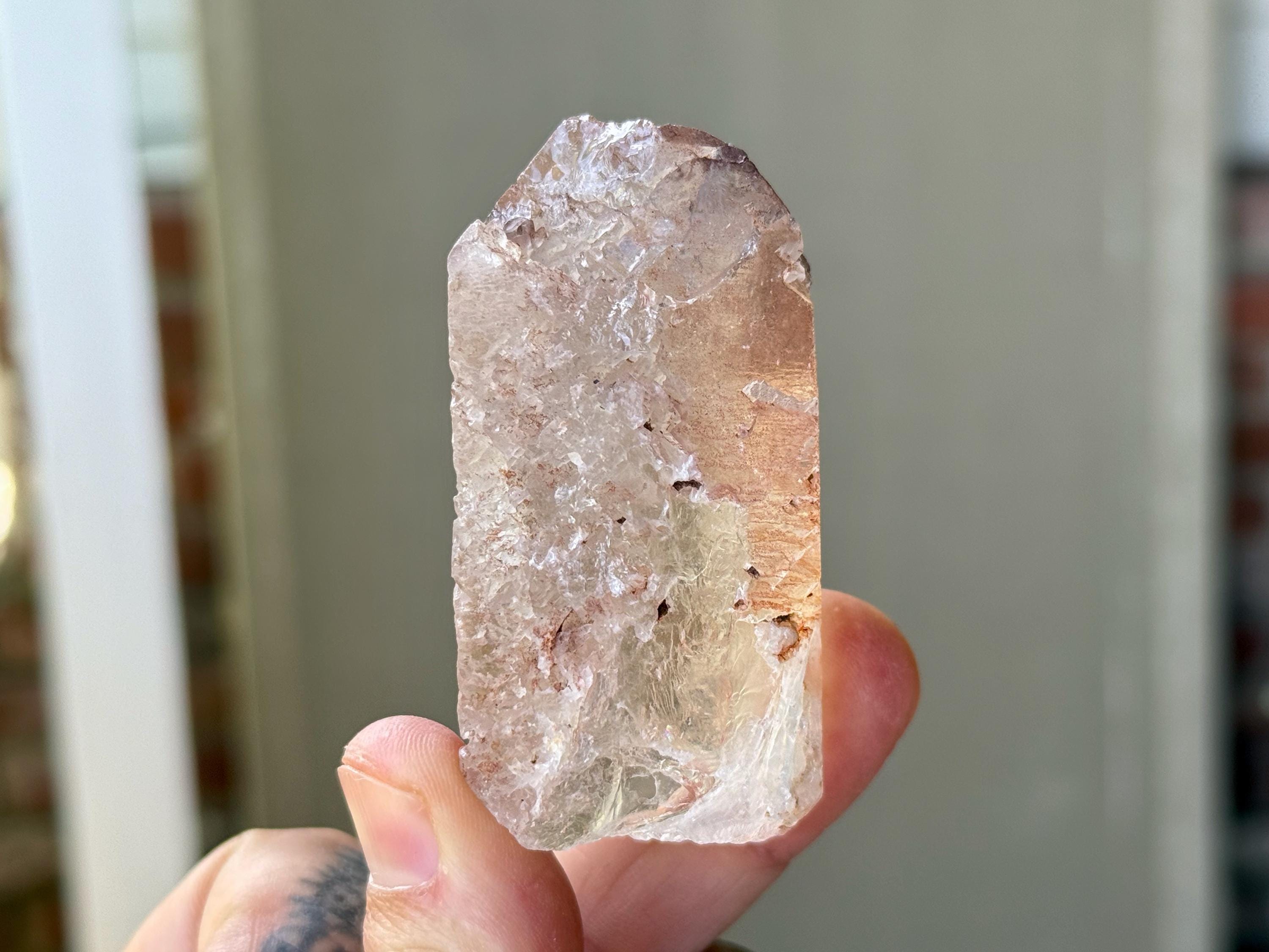This natural Ancient Sage Tangerine Quartz comes from an old find in Para State, Brazil. The pinkish-orange hue comes from Hematite inclusion.