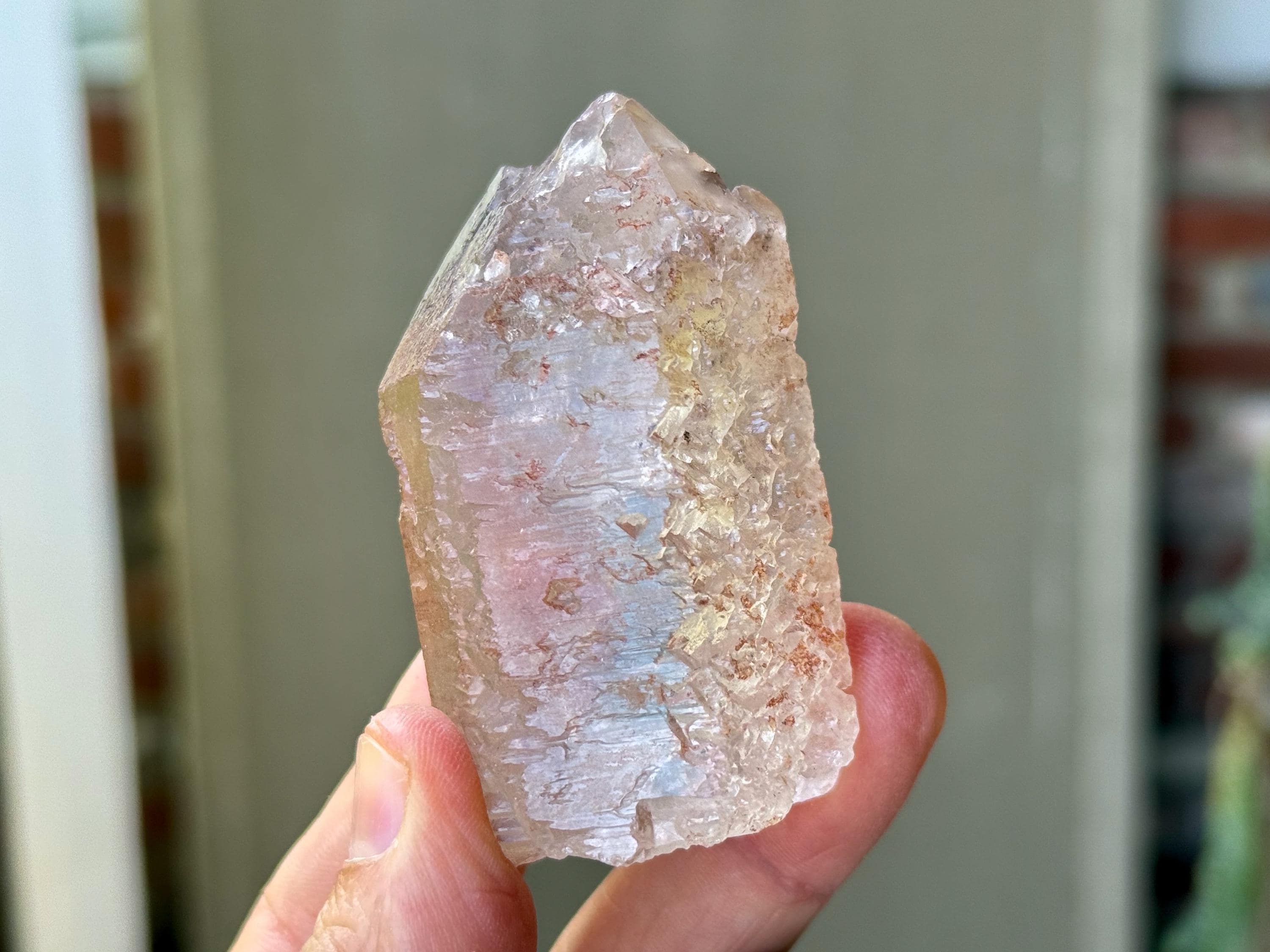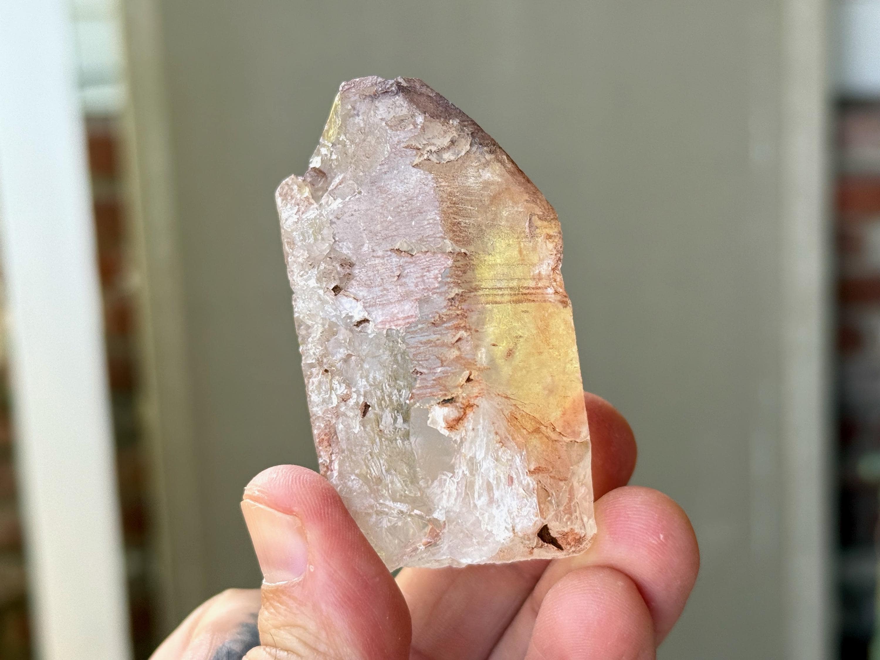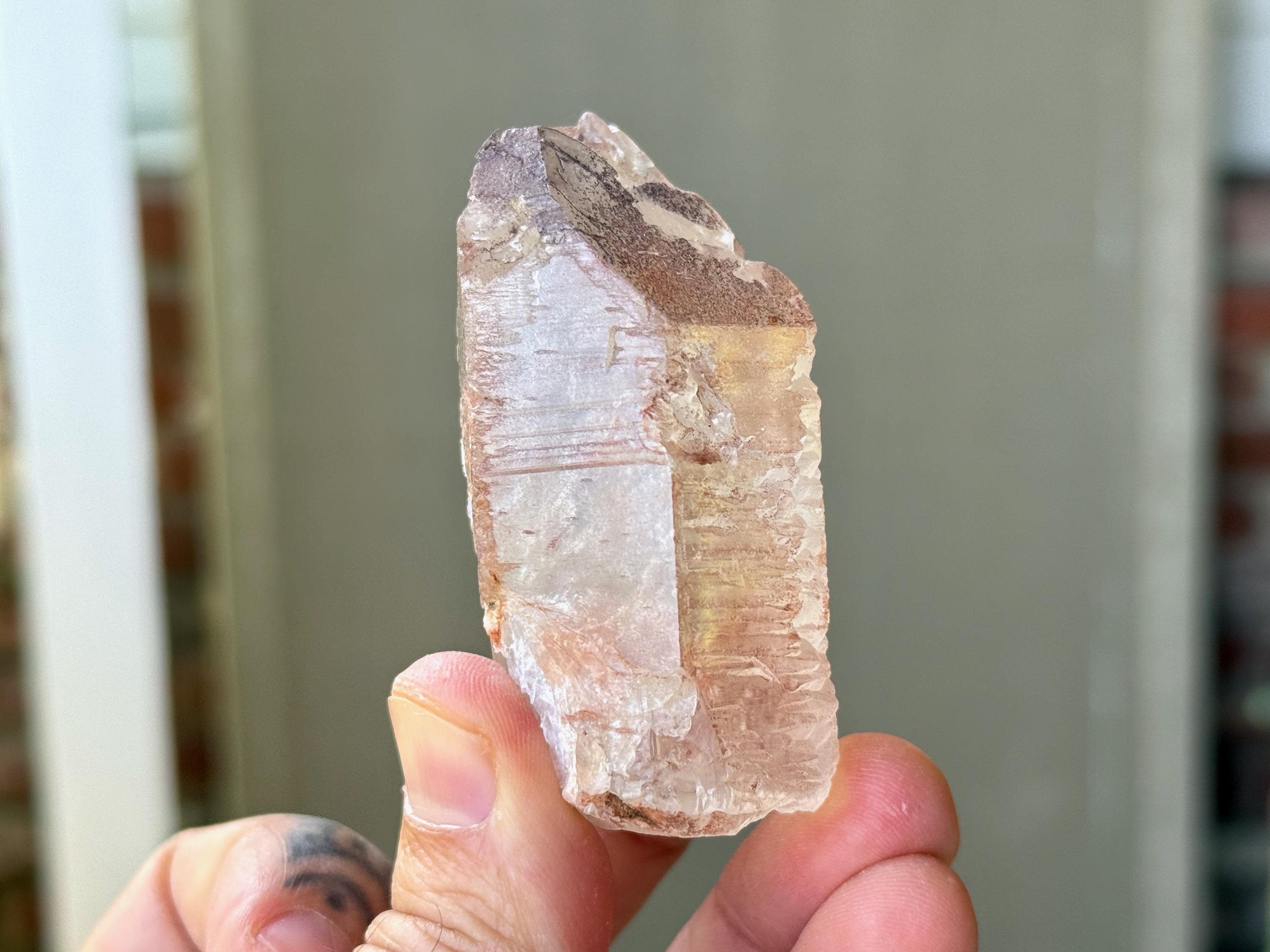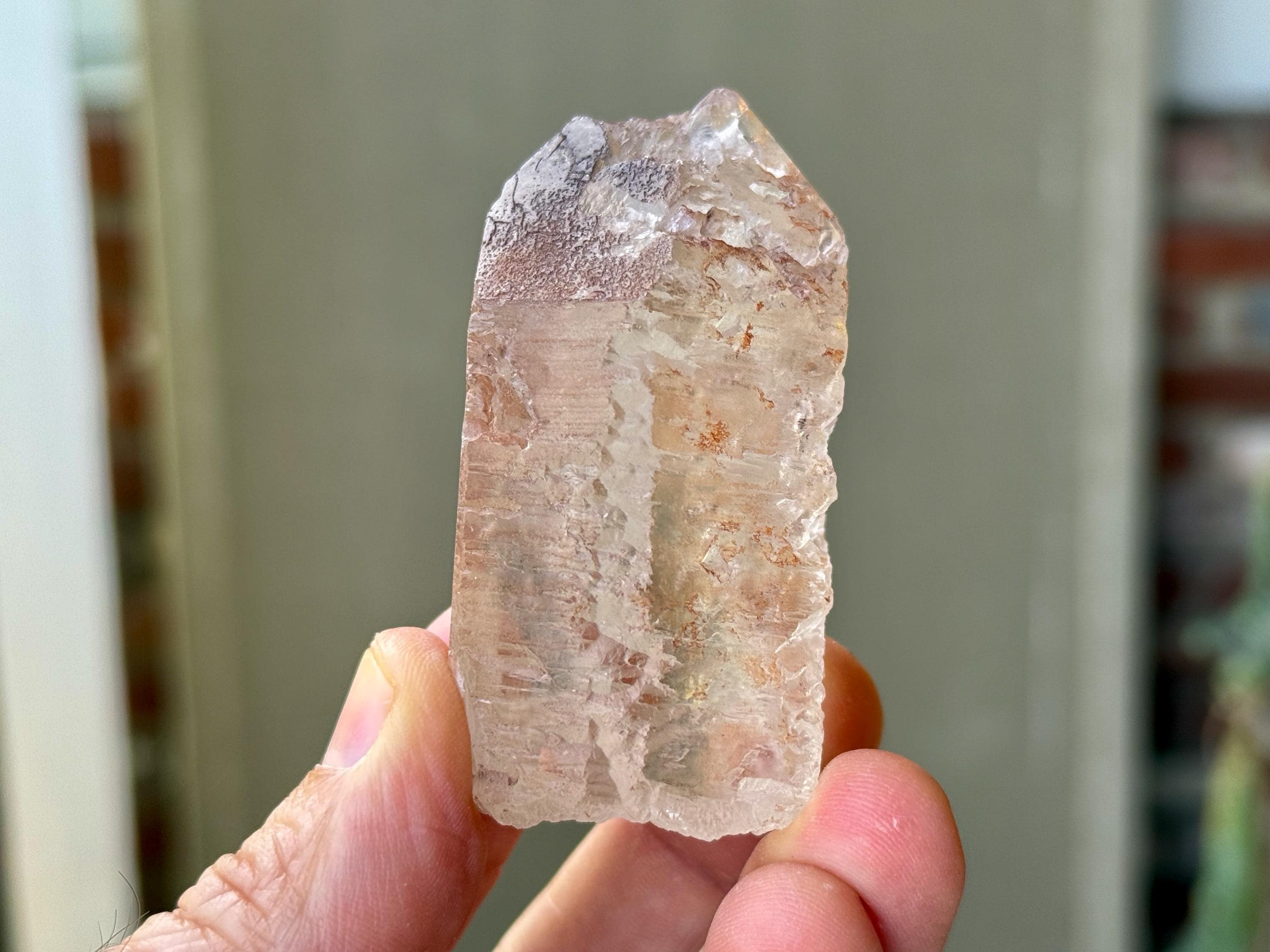 This natural Ancient Sage Tangerine Quartz comes from an old find in Para State, Brazil. The pinkish-orange hue comes from Hematite inclusion.