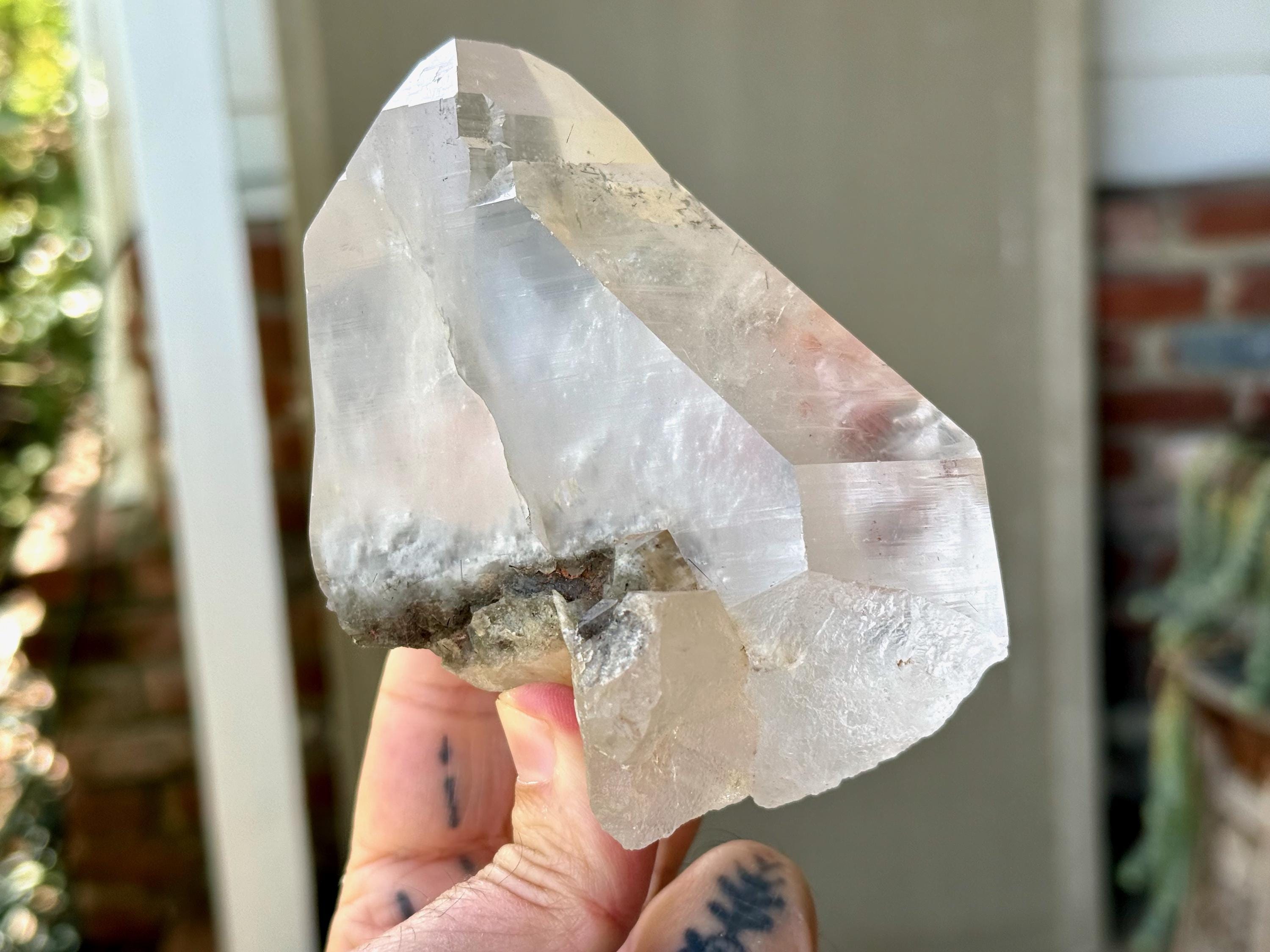 This natural Cathedral Quartz with Black Tourmaline comes from an old find in Aracuai, Minas Gerais, Brazil. Black Tourmaline correlates to the Root Chakra and is a powerful spiritual grounding stone that protects against negativity of all kinds.