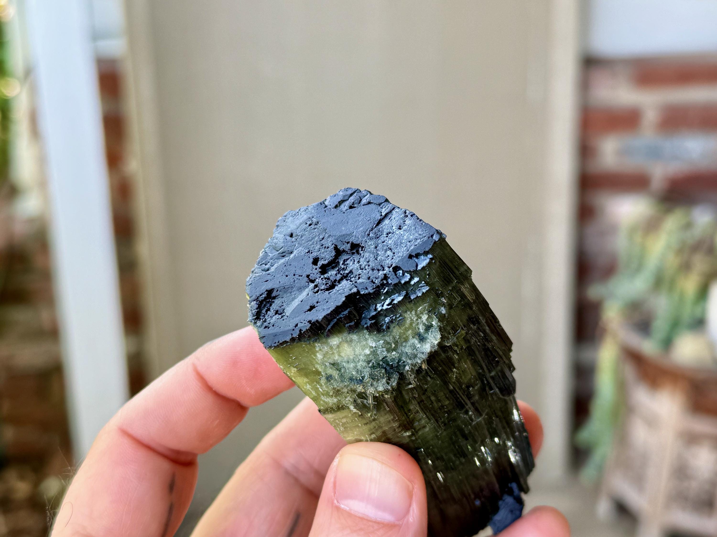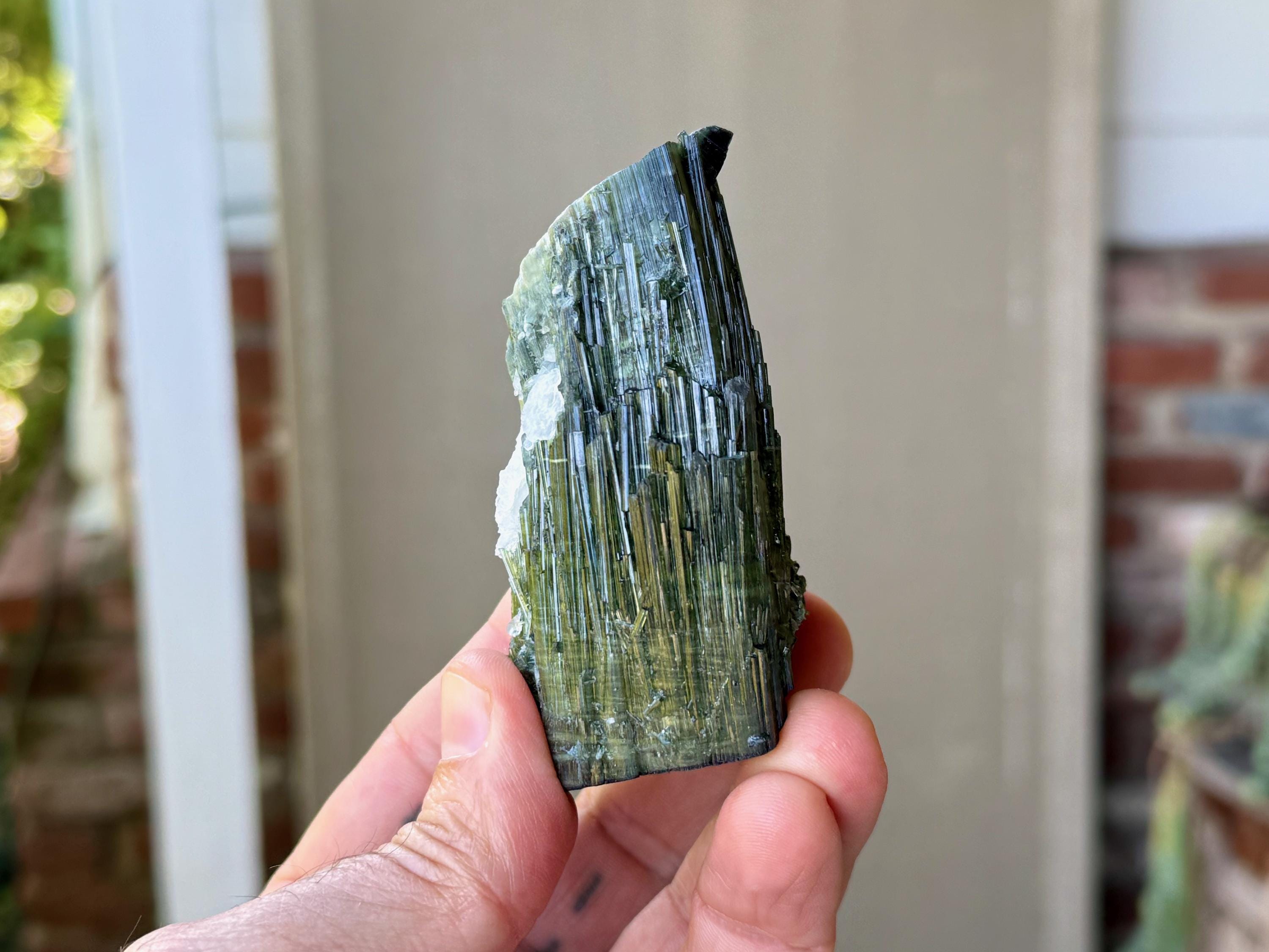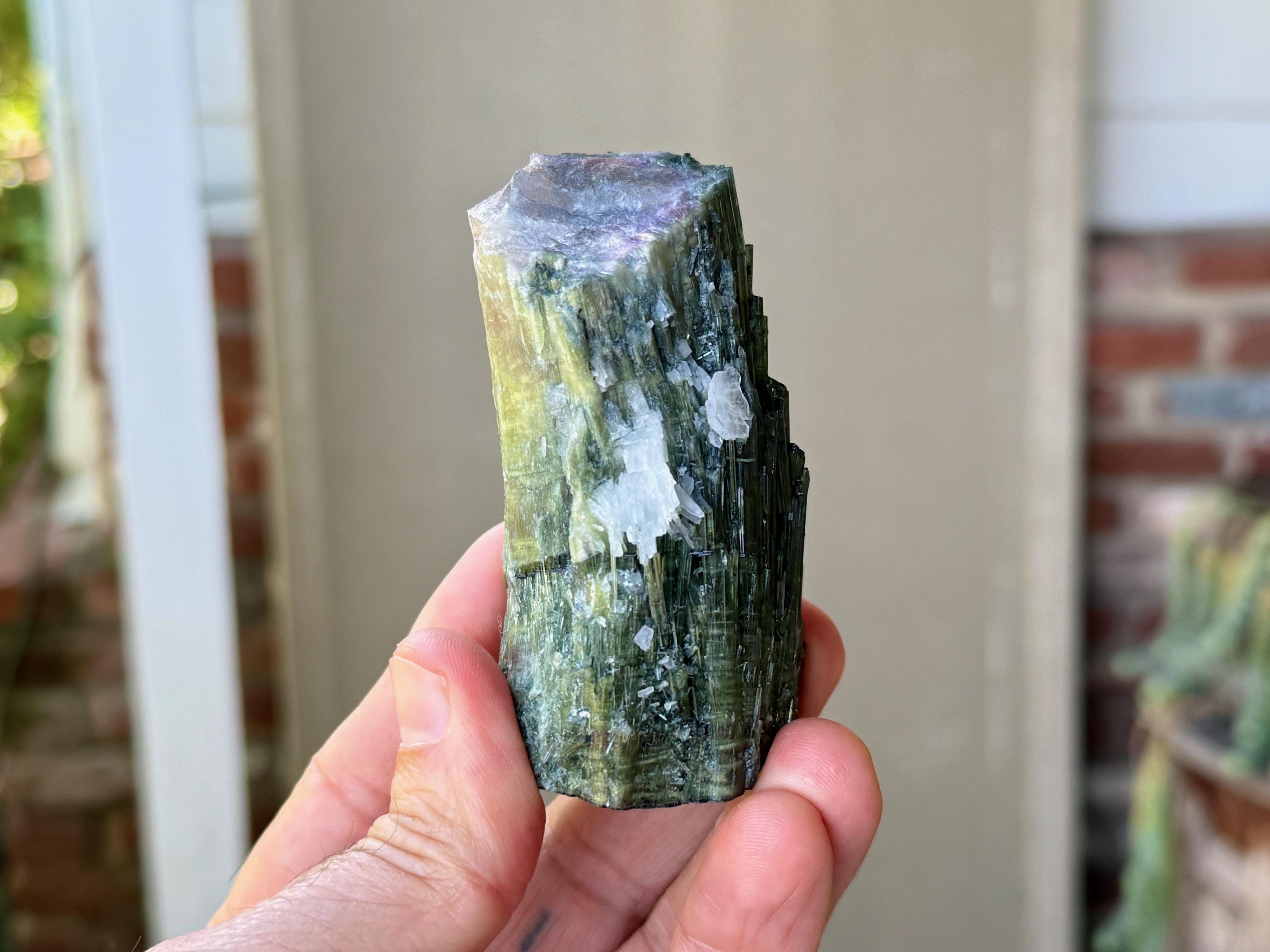 Green Tourmaline purifies and strengthens, allowing one to energetically carry greater amounts of Life Force (Prana Energy). As more energy is carried within the physical body, higher degrees of consciousness can be maintained. It is a wonderful protection stone, deal for sealing holes in the aura that leave one vulnerable to negativity.