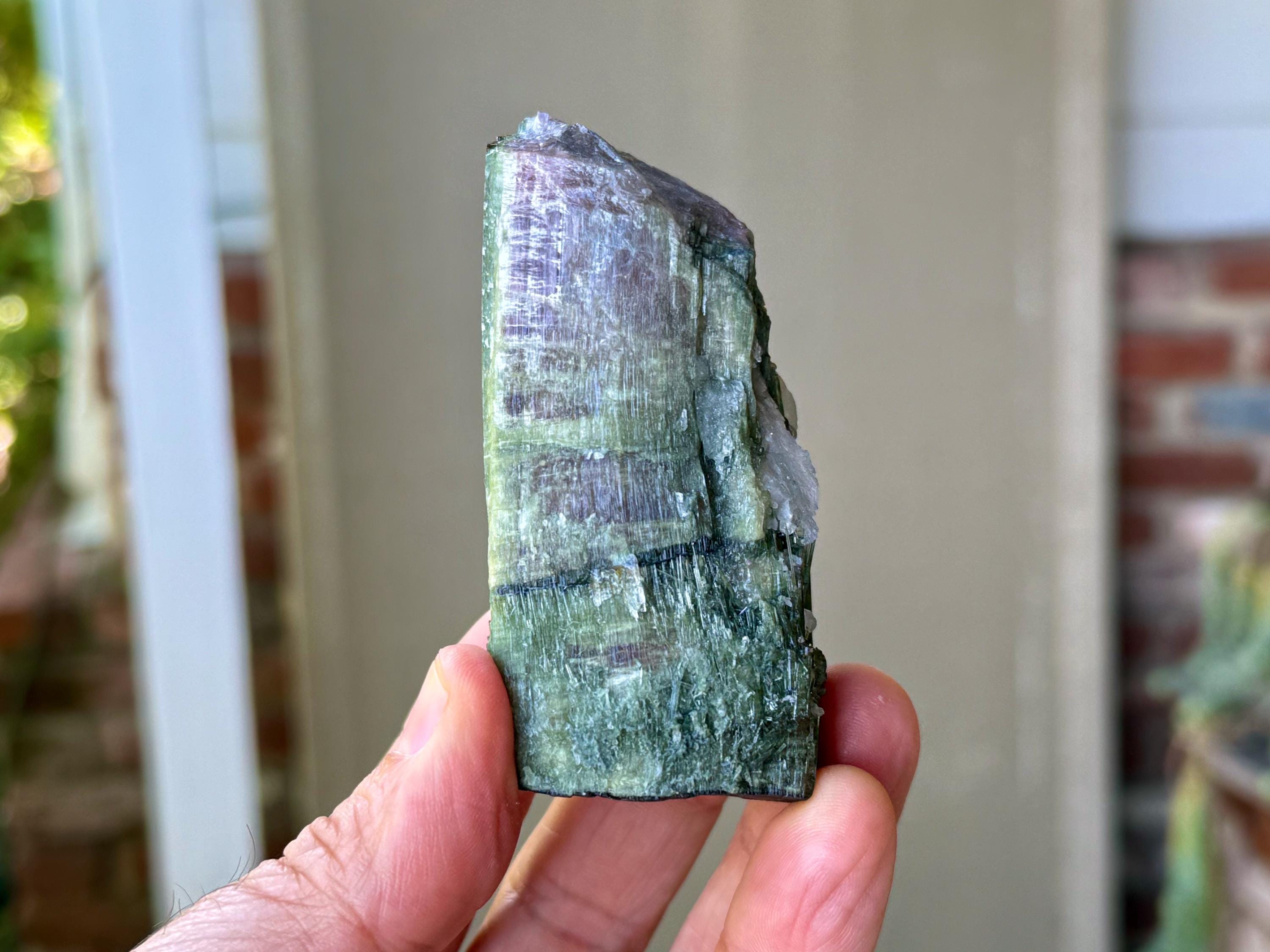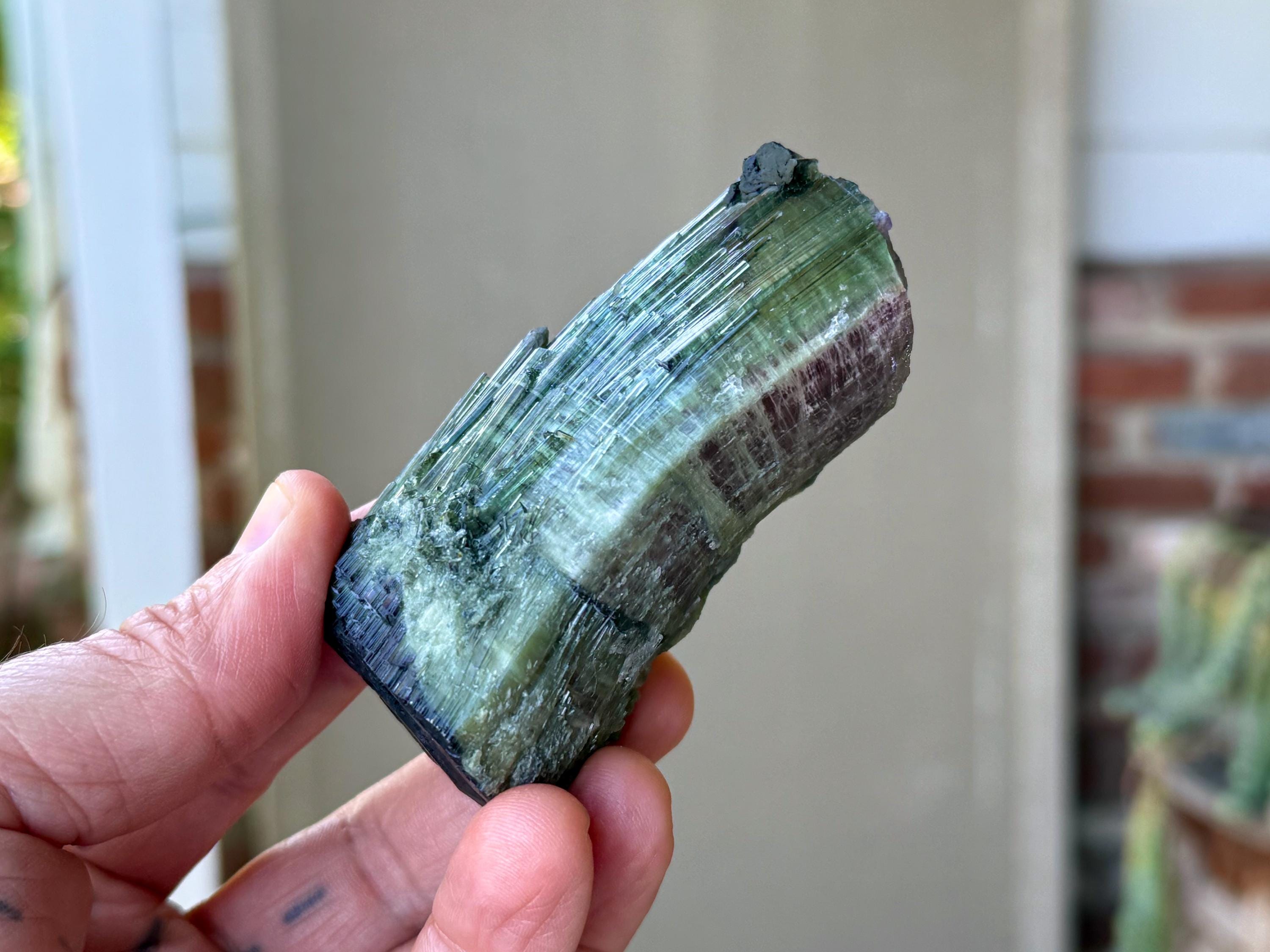 This exquisite Watermelon Tourmaline is quite large in size (see measurements below) with glorious luster and vibrant green hues that range from light to dark.