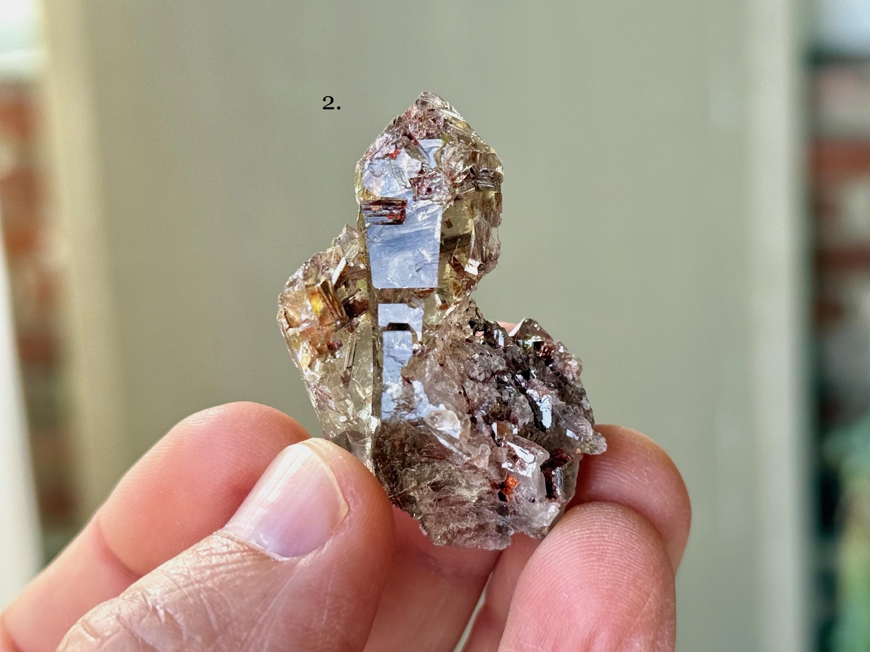 These Smoky Quartz crystals with Red Epidote inclusions come from a recent find in Itamarandiba, Minas Gerais, Brazil. Each selection is numbered, simply select your preference from the dropdown menu.