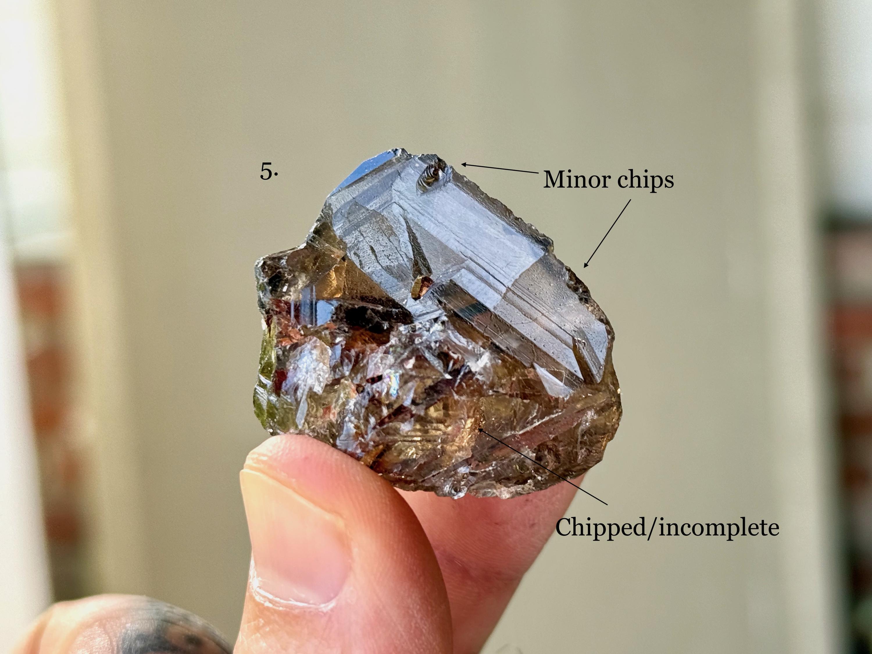 *Please note that most — not all — of these crystals are either incomplete, or chipped in some way. We've tried to indicate most of the flaws in the photo text, but please be aware prior to purchase.