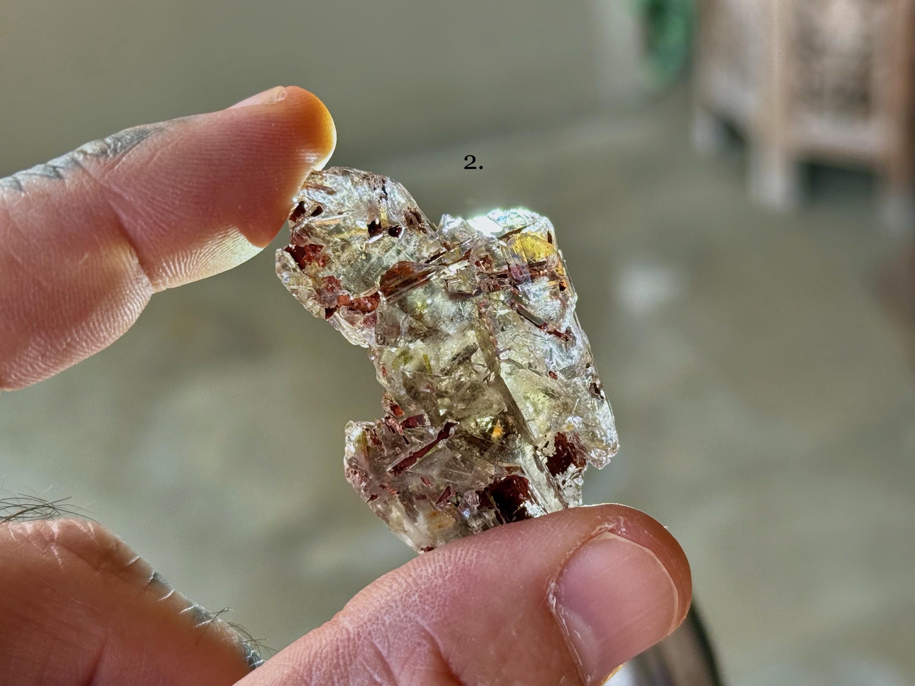 The crystals from this find exhibit unique growth interference indications as well as rare inclusions of Red Epidote, otherwise known as Piemontite.