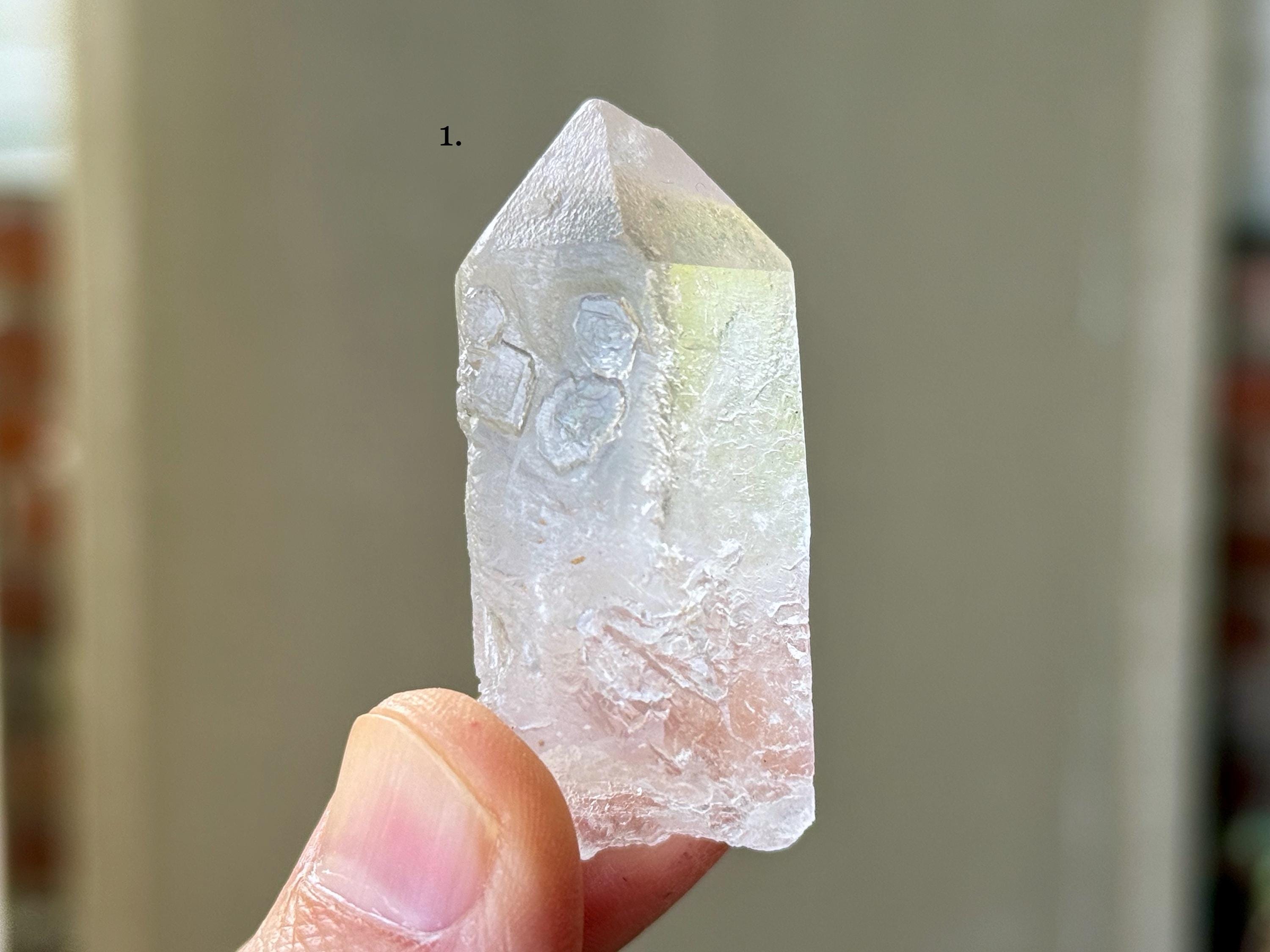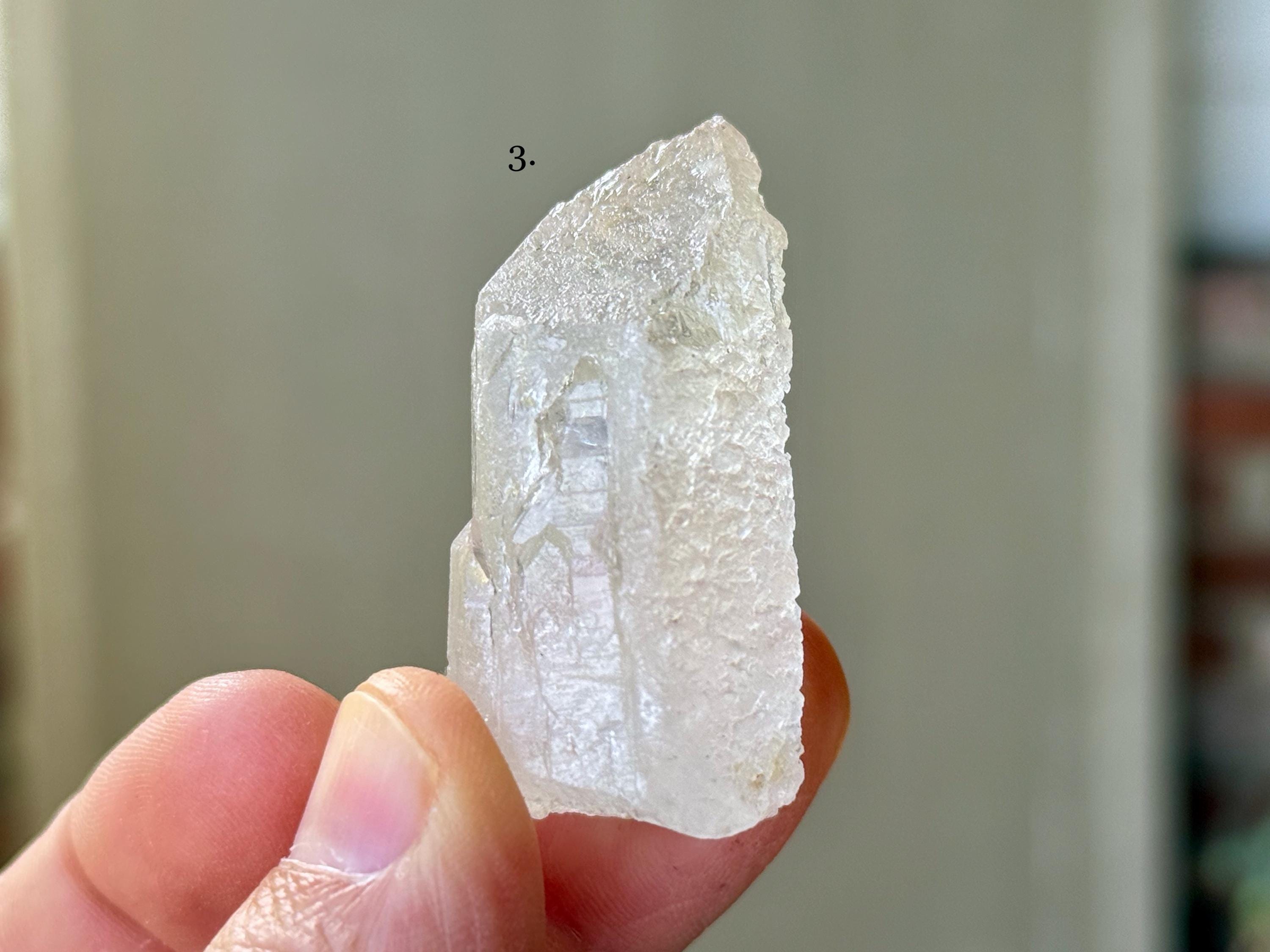 These natural Dissolution Ice Quartz crystals come from a recent find in Corinto, Minas Gerais, Brazil. Each selection is numbered, simply select your preference(s) from the dropdown menu.