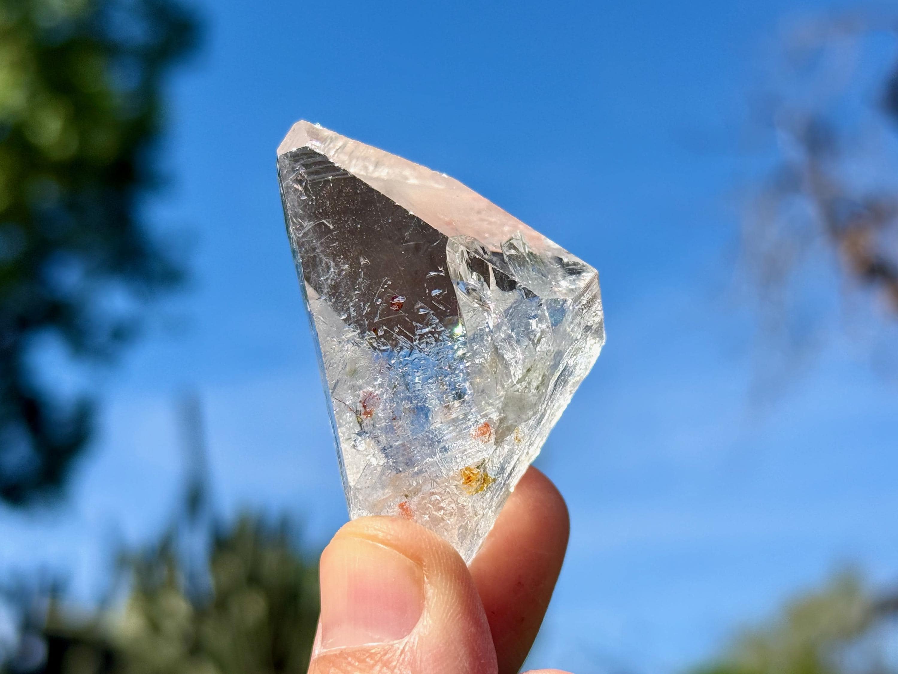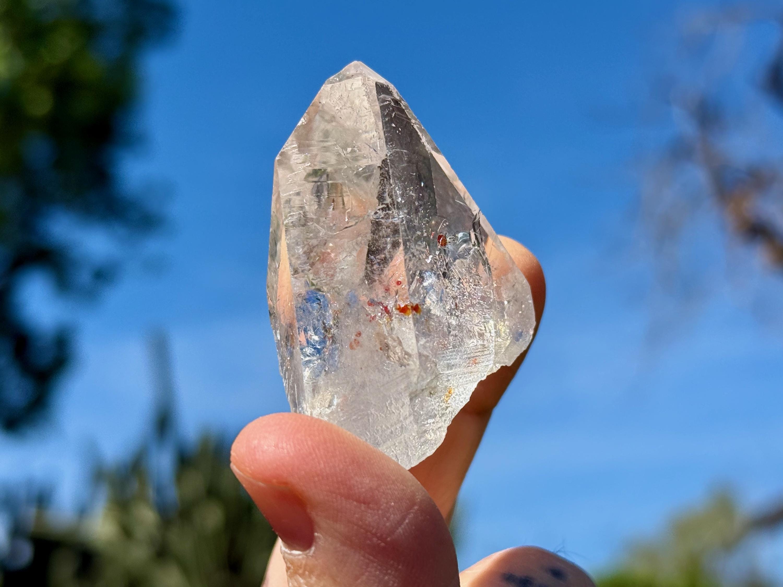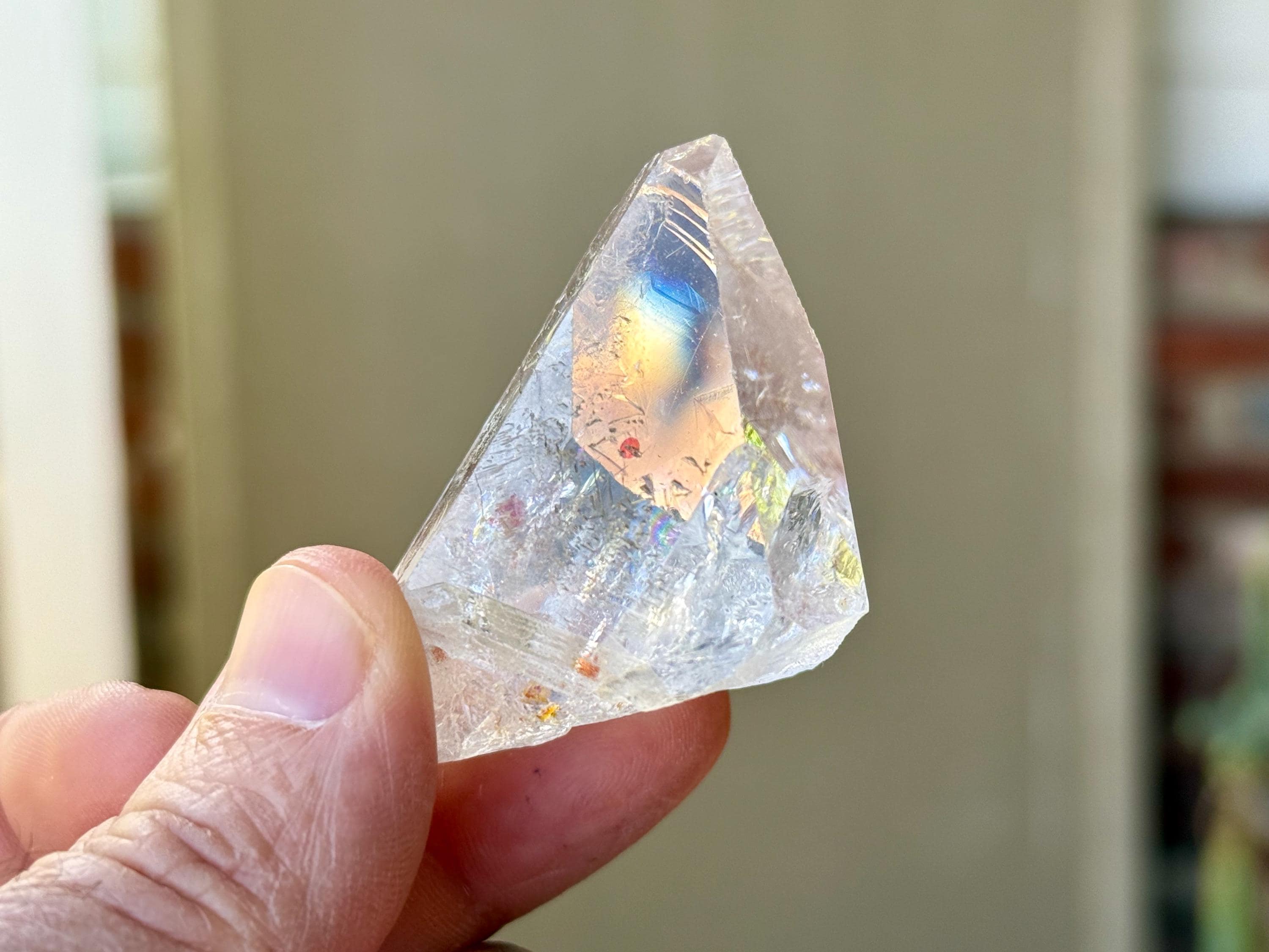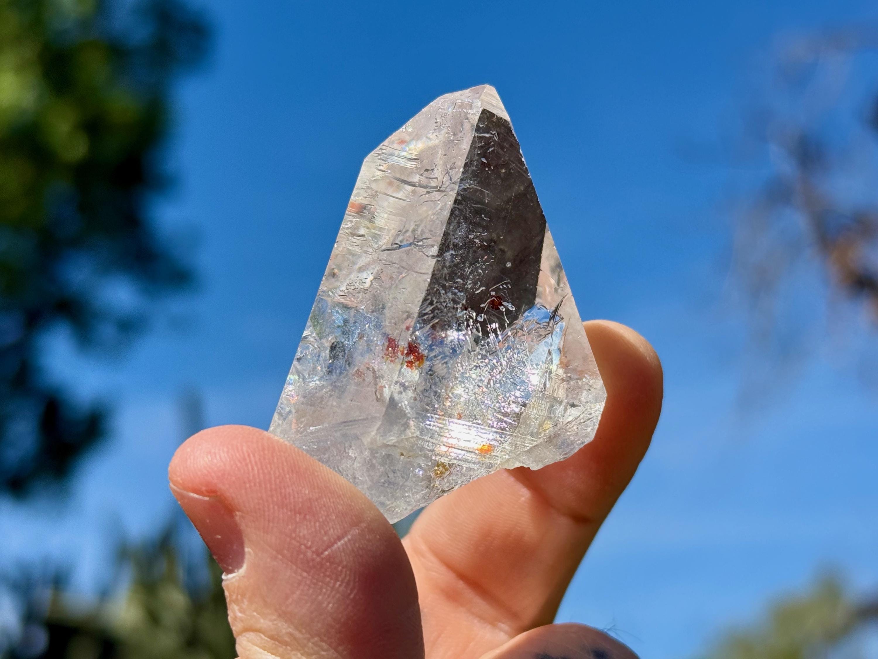 *Please note, this crystal is clear and colorless. Any yellow color in the photos is due to the natural sunlight reflecting off the crystal.