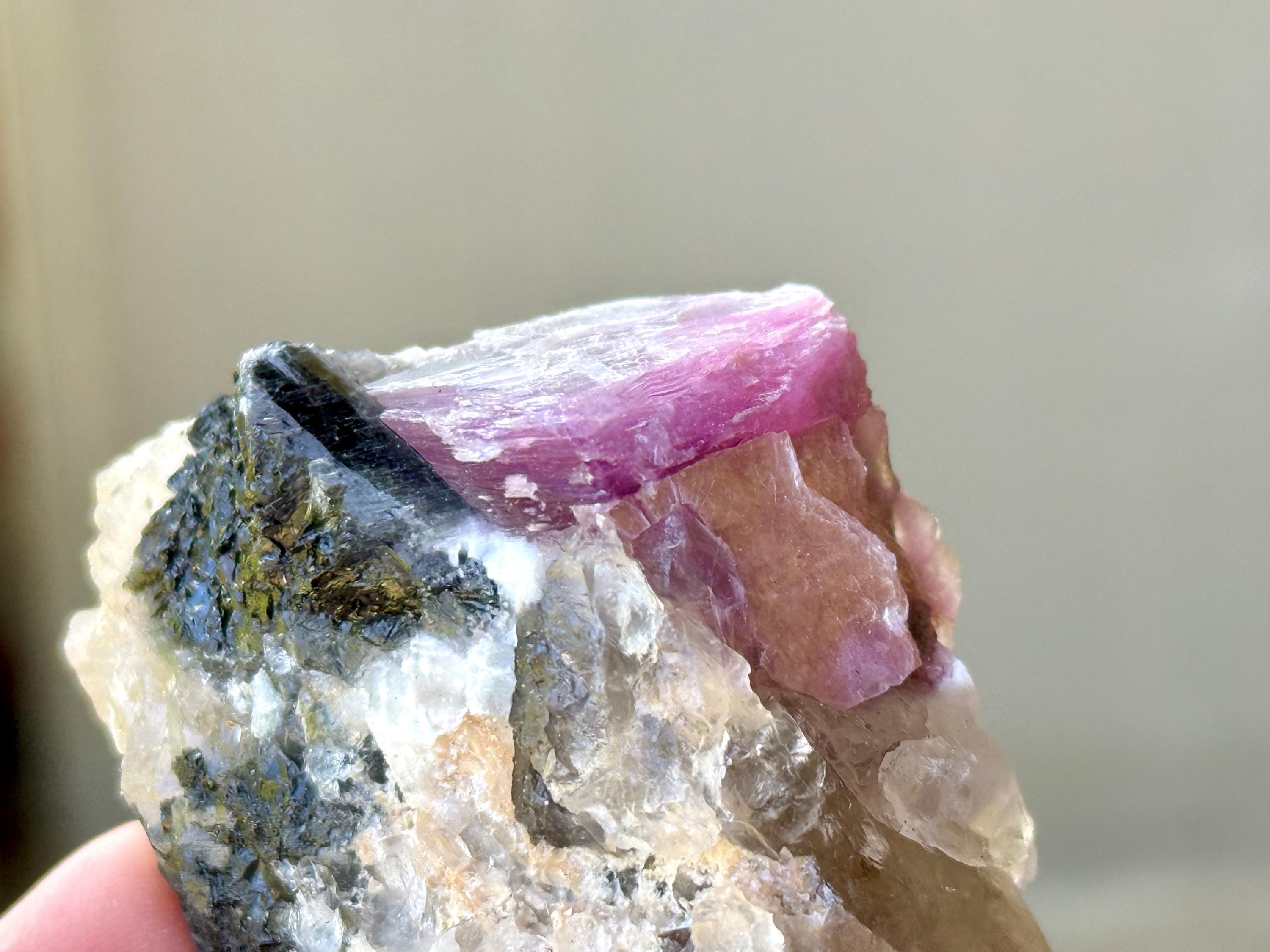 This colorful Unicorn Stone Quartz with Purple Lepidolite, Blue Tourmaline & Feldspar comes from a recent find in Coronel Murta, Minas Gerais, Brazil.
