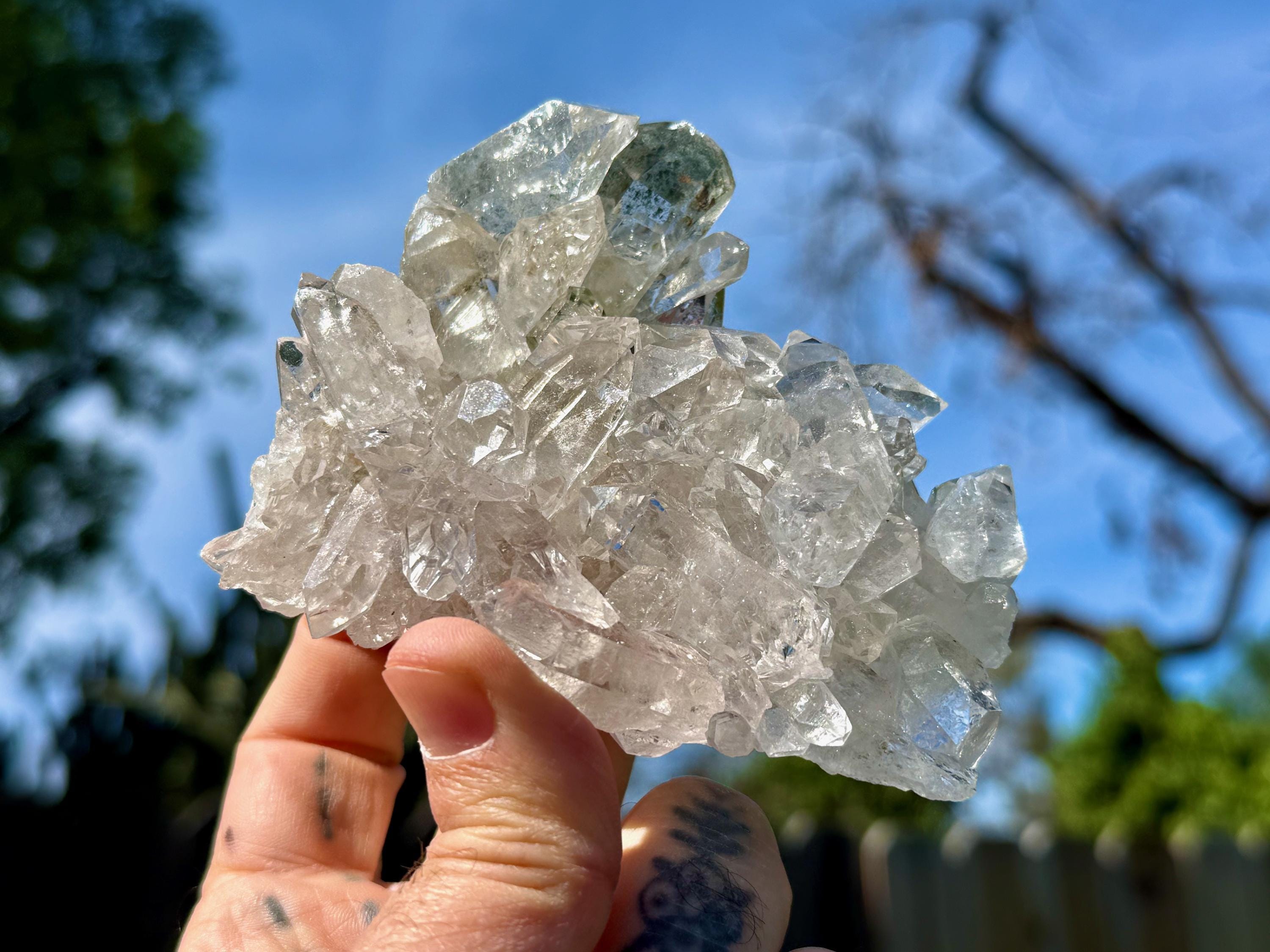 Exceptional quality to this superb Quartz Cluster from Zeca de Souza! This crystal exhibits brilliant luster and water-clear clarity, as well as a beautiful self-standing formation, which sits in two different ways (Photos 1 and 3).