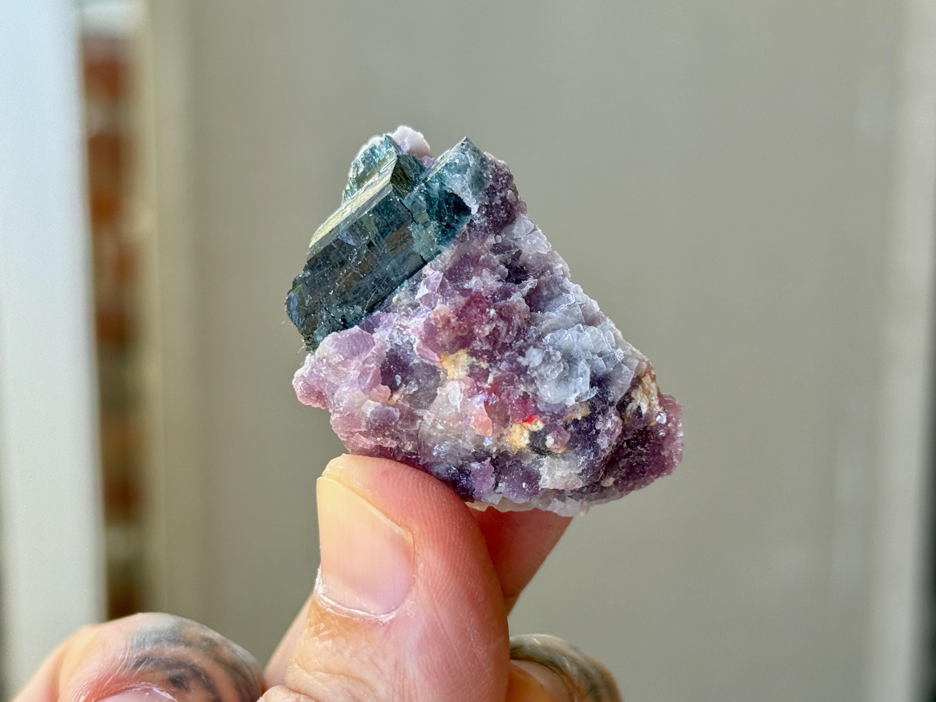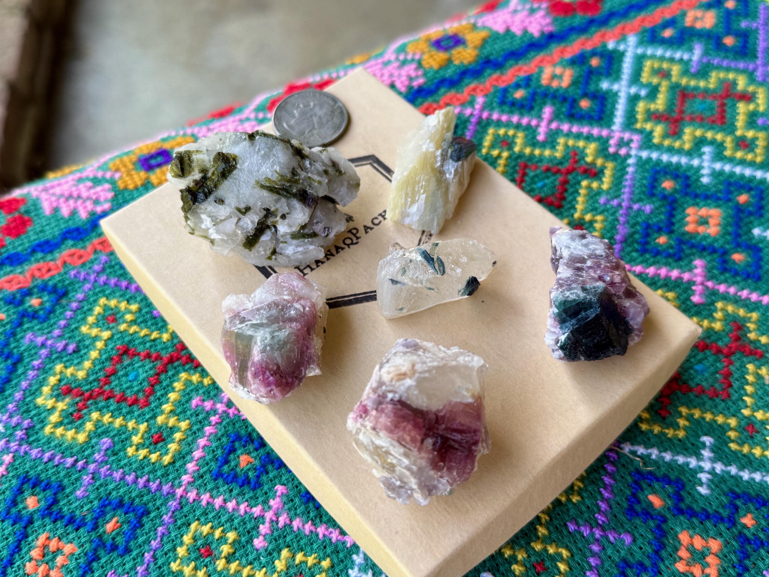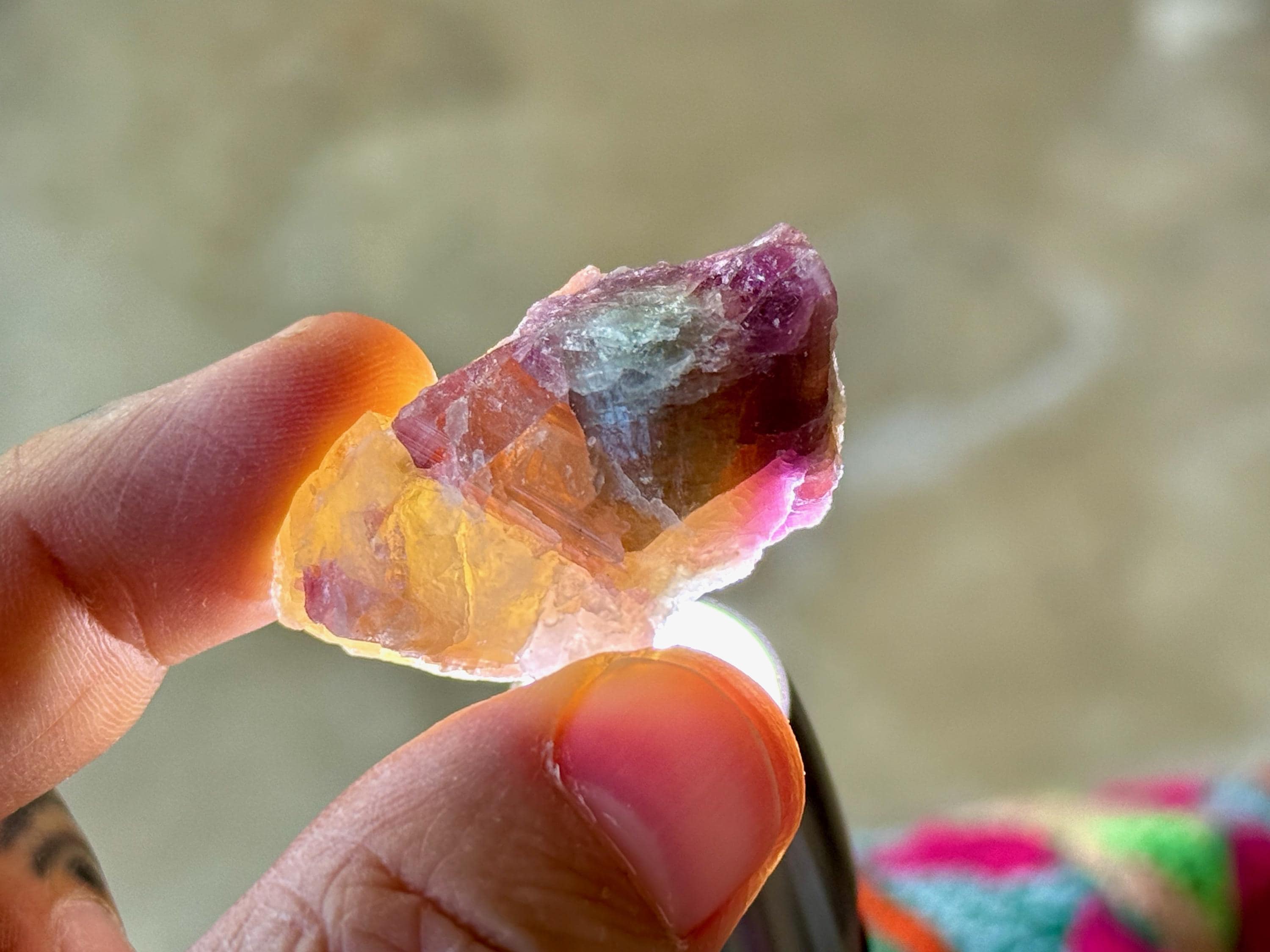 The crystals from this find include unique combinations of Quartz, Lepidolite, Citrine, Cleavelandite, Albite and Feldspar, with vividly colored Tourmalines in lovely hues of green, pink, purple and blue. Crystals with combinations of these minerals are sometimes referred to as "Unicorn Stones."