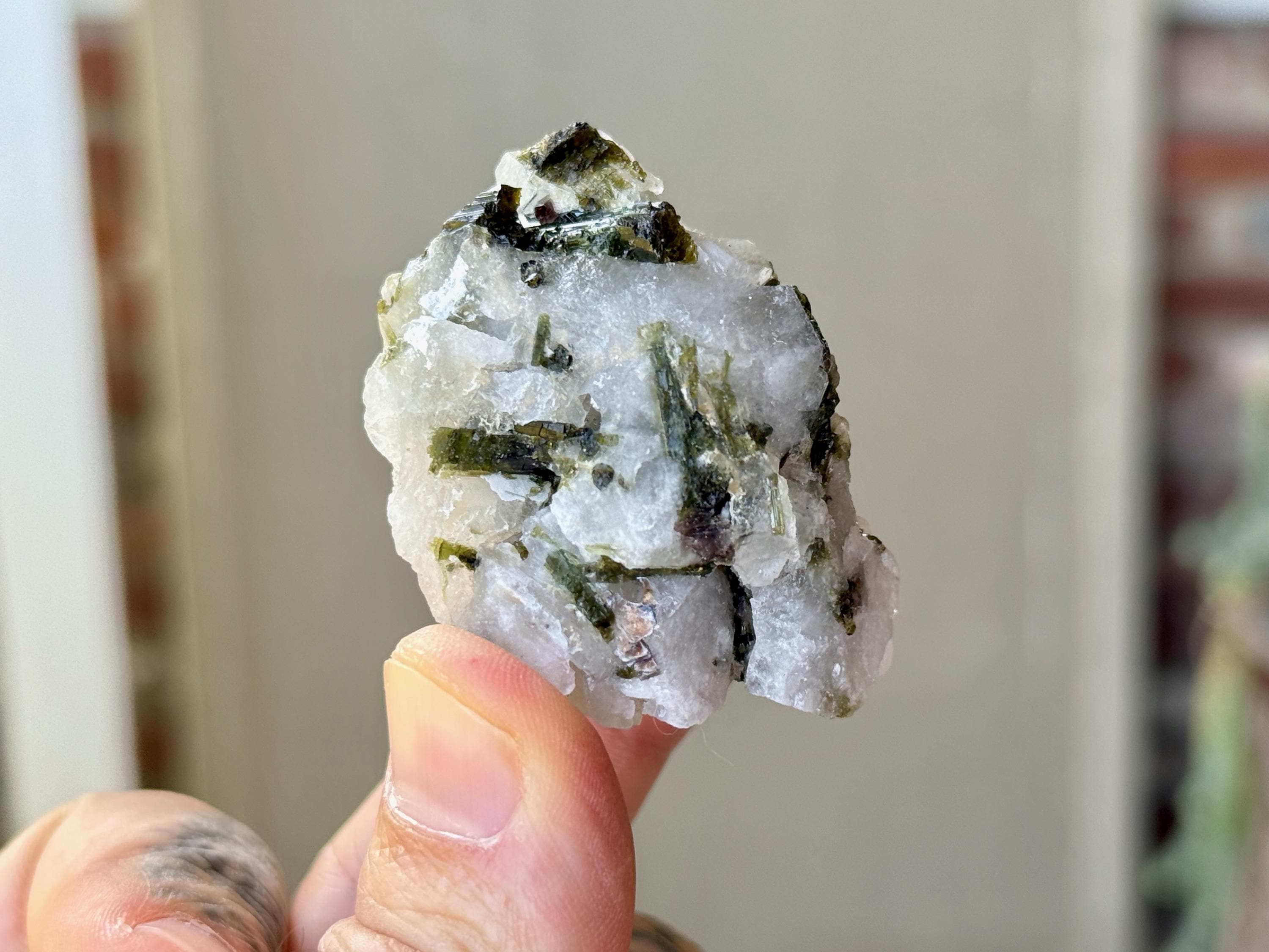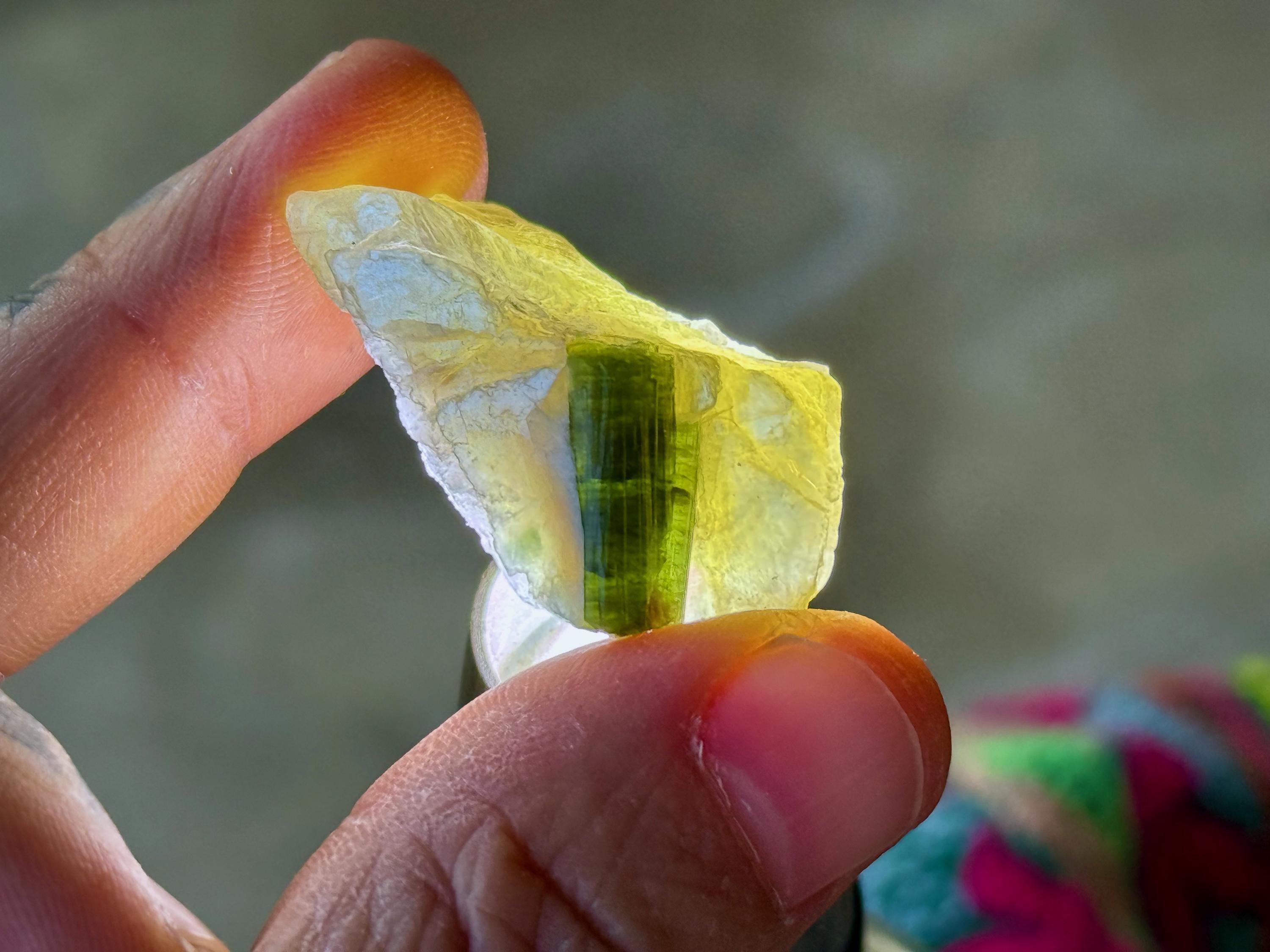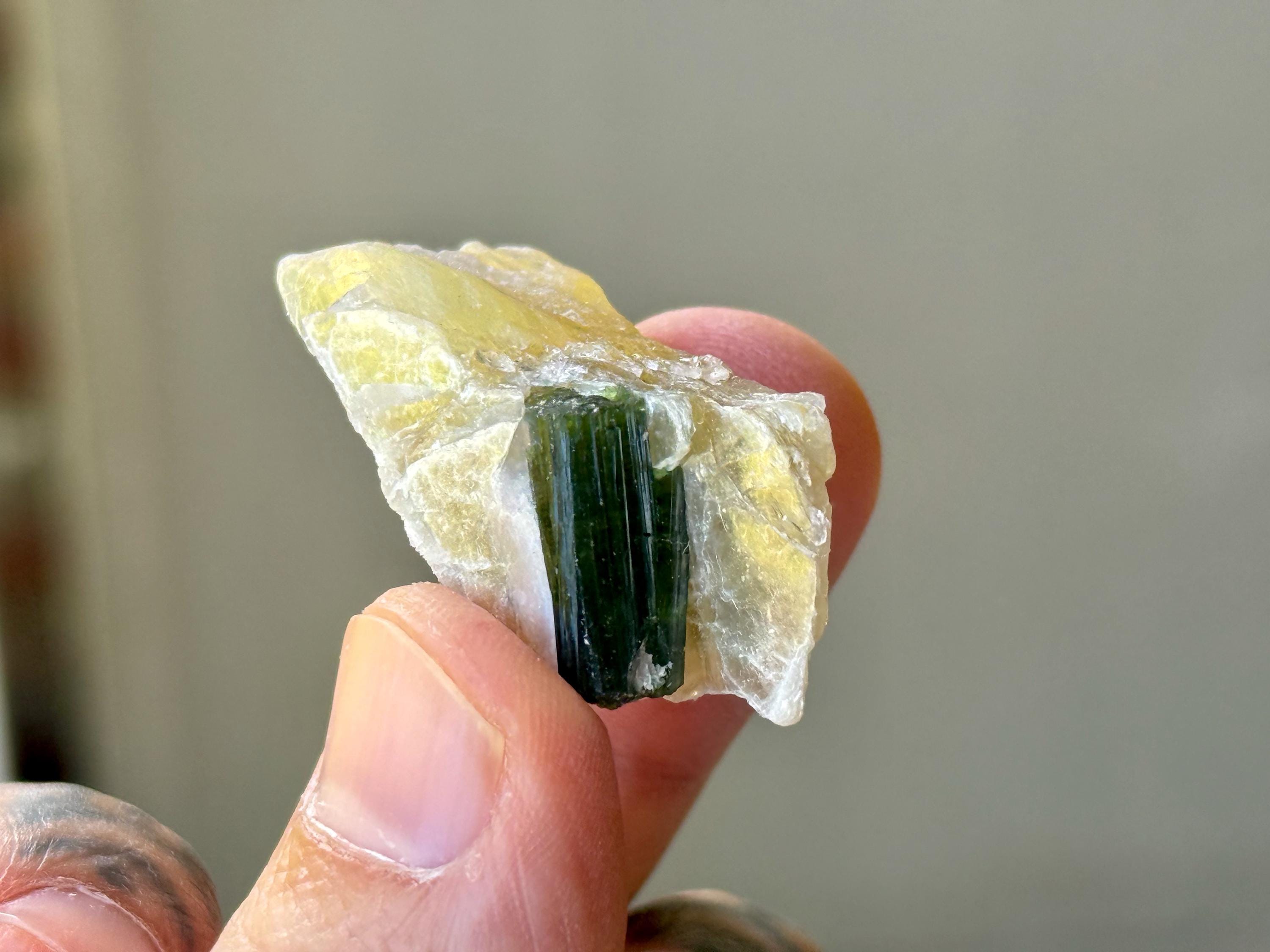 Green Tourmaline purifies and strengthens, allowing one to energetically carry greater amounts of Life Force (Prana Energy). As more energy is carried within the physical body, higher degrees of consciousness can be maintained. It is a wonderful protection stone, deal for sealing holes in the aura that leave one vulnerable to negativity.