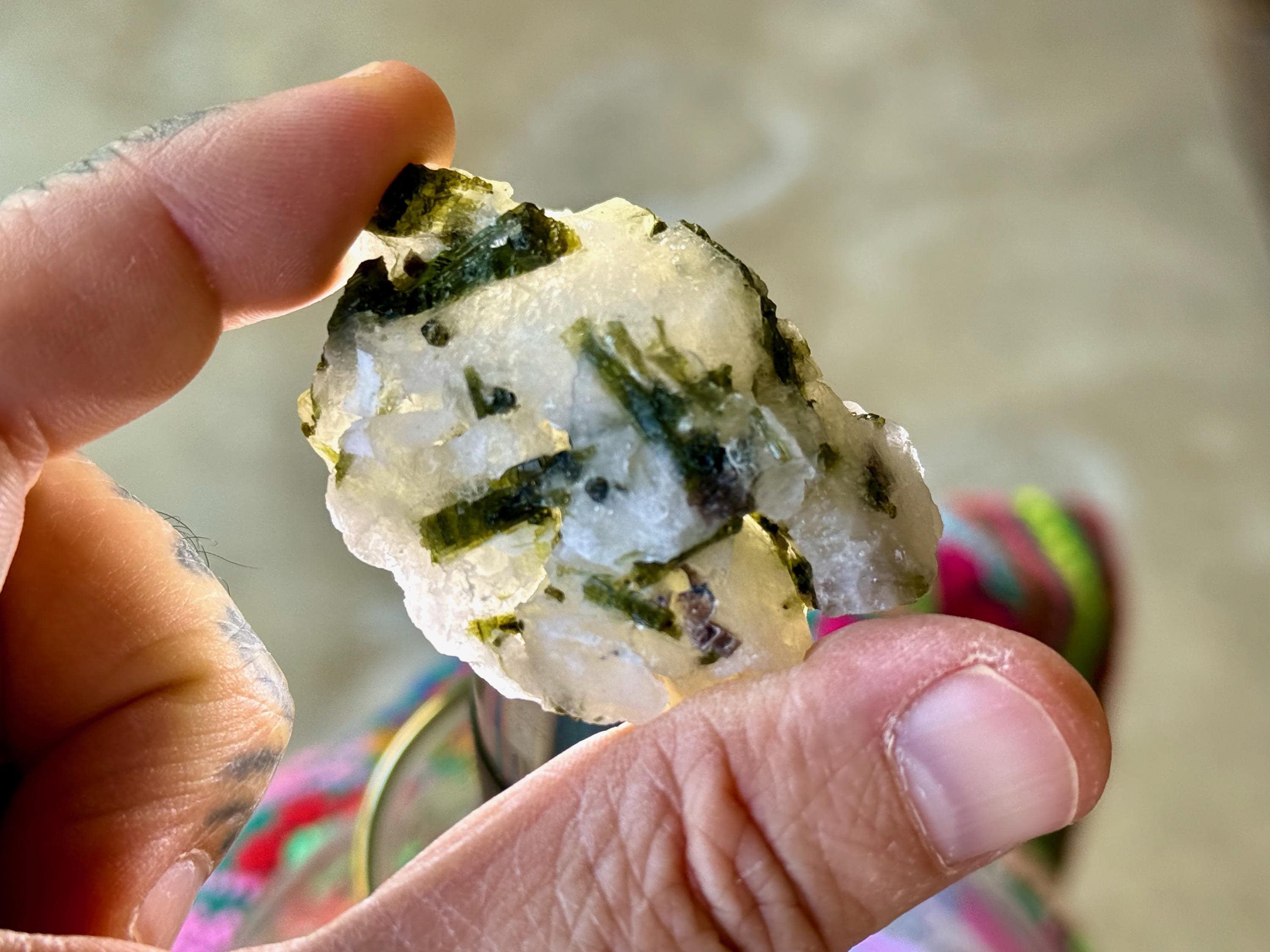 This colorful lot of Unicorn Stone Quartz with Green, Pink and Blue Tourmaline, comes from the area of Coronel Murta, Minas Gerais, Brazil