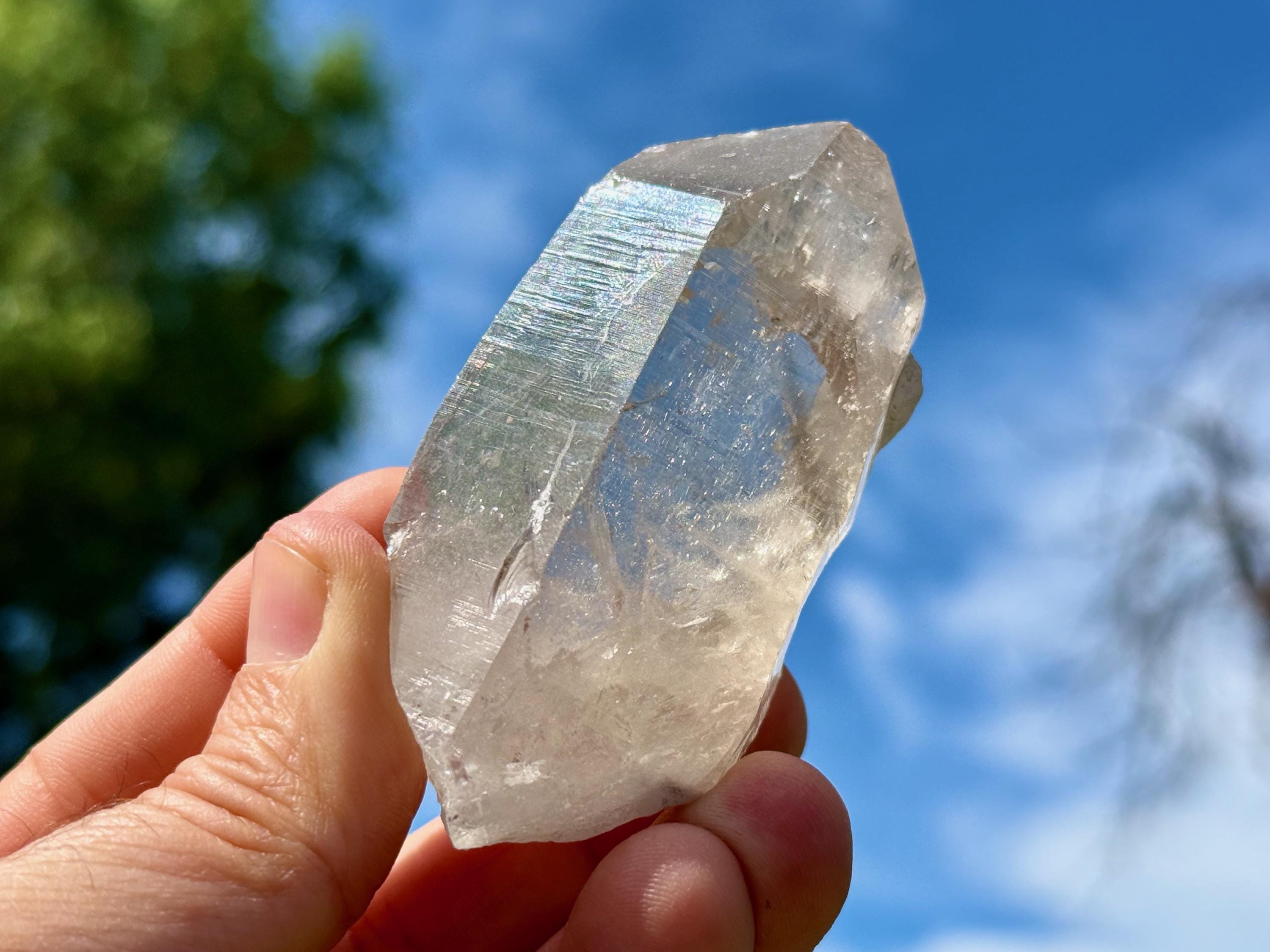 Lemurian Quartz resonates with all chakras, but primarily the Crown Chakra. It has one of the highest vibrations of any crystal and is a beautiful companion for meditation and to realign energies in the body. It can assist in clearing blockages in one's energy field and/or chakras, dispelling heavy energies from the body. If there is stagnant energy in the body, it can help to increase Prana (life force) energy to get things moving properly again. Meditating with Lemurian Crystals can allow us to connect with higher-dimensional spirit guides and connect to Divine realms, as well as to decode the information they contain within.