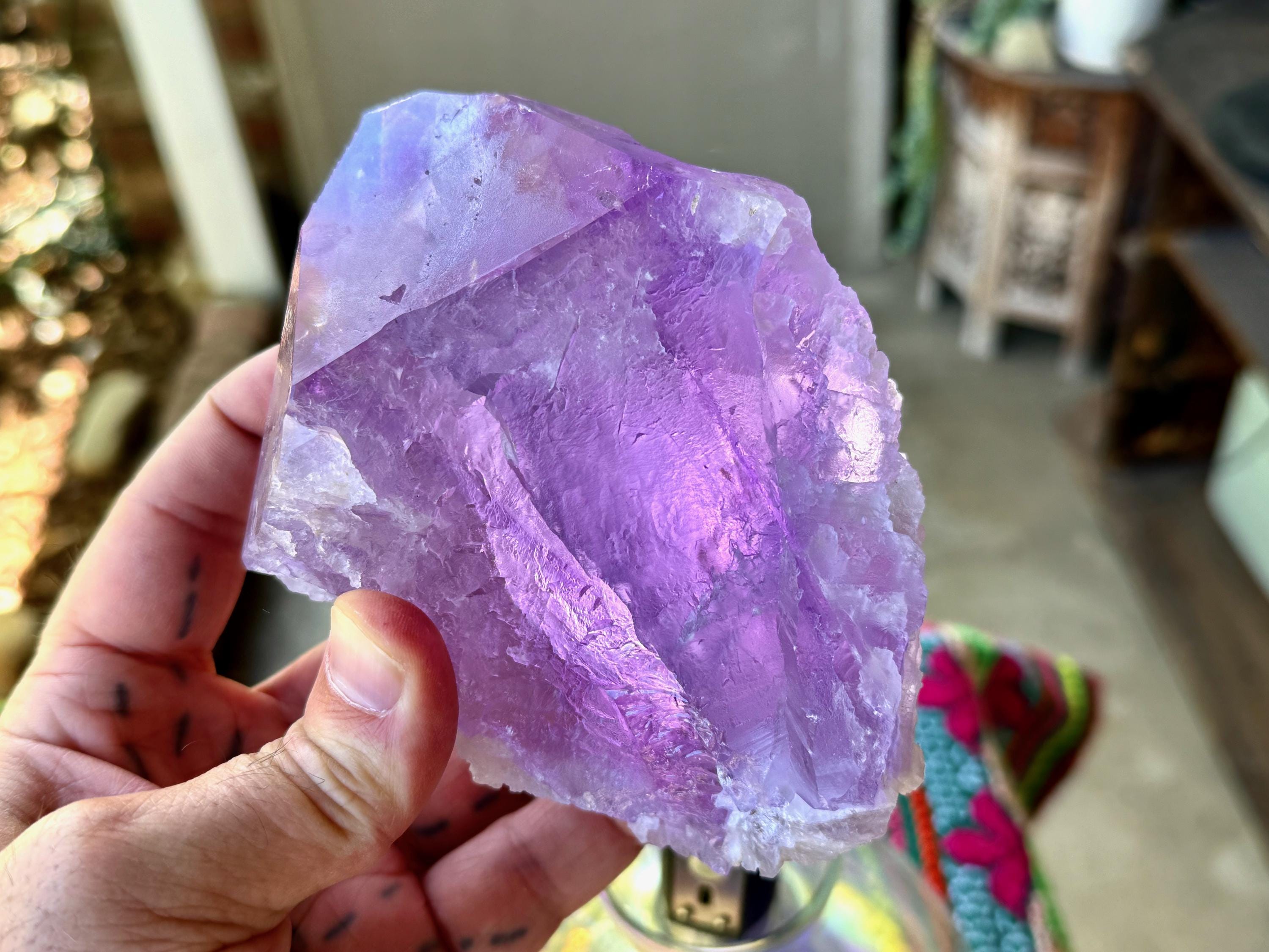 What's most handsome about this piece is the broad main facet area, so lustrous and vibrant with its lilac hues and darker purple edges. When backlit, as in Photos 3-6, we can see how nice the translucency is, and also just how vibrant the colors are!