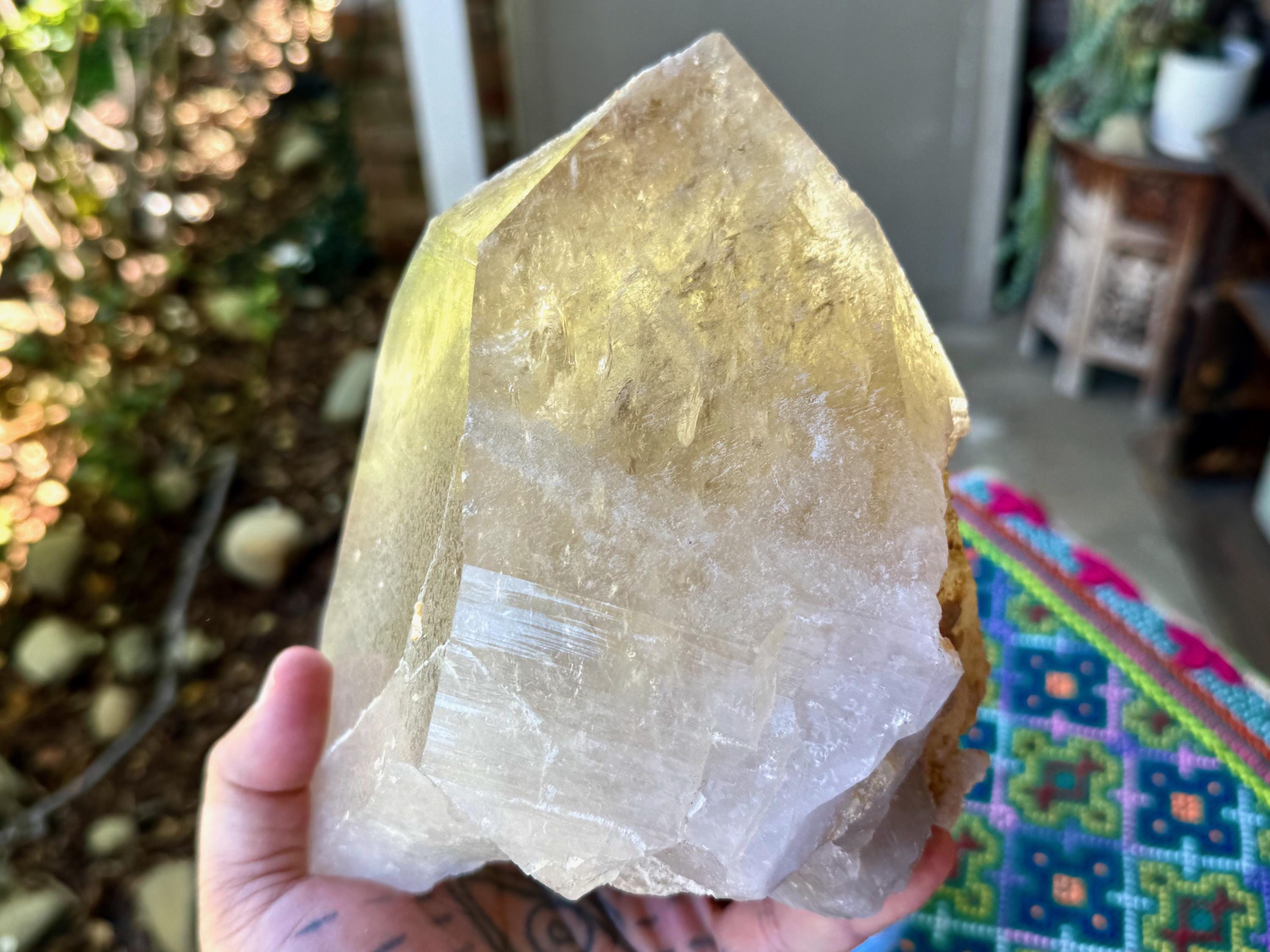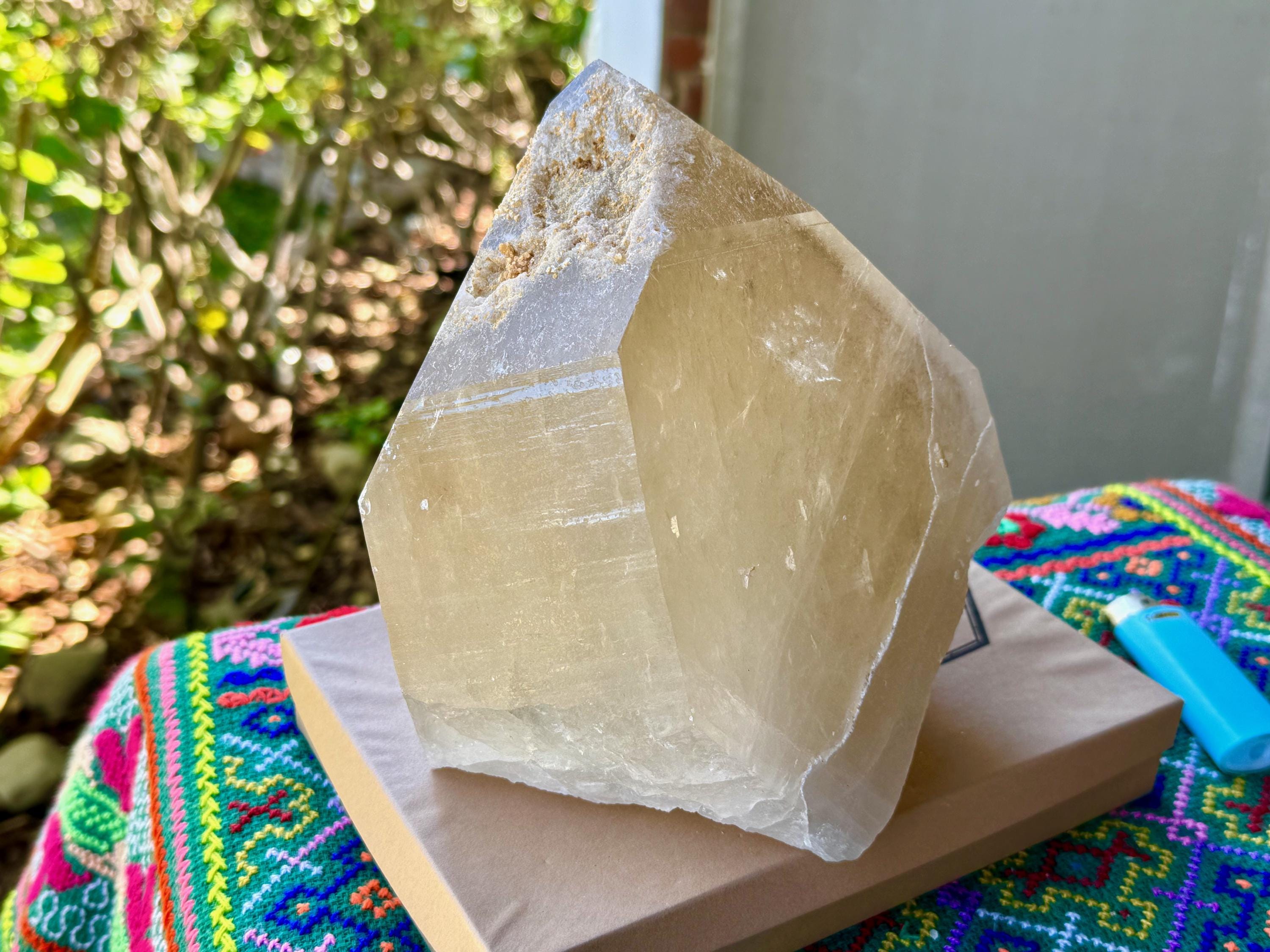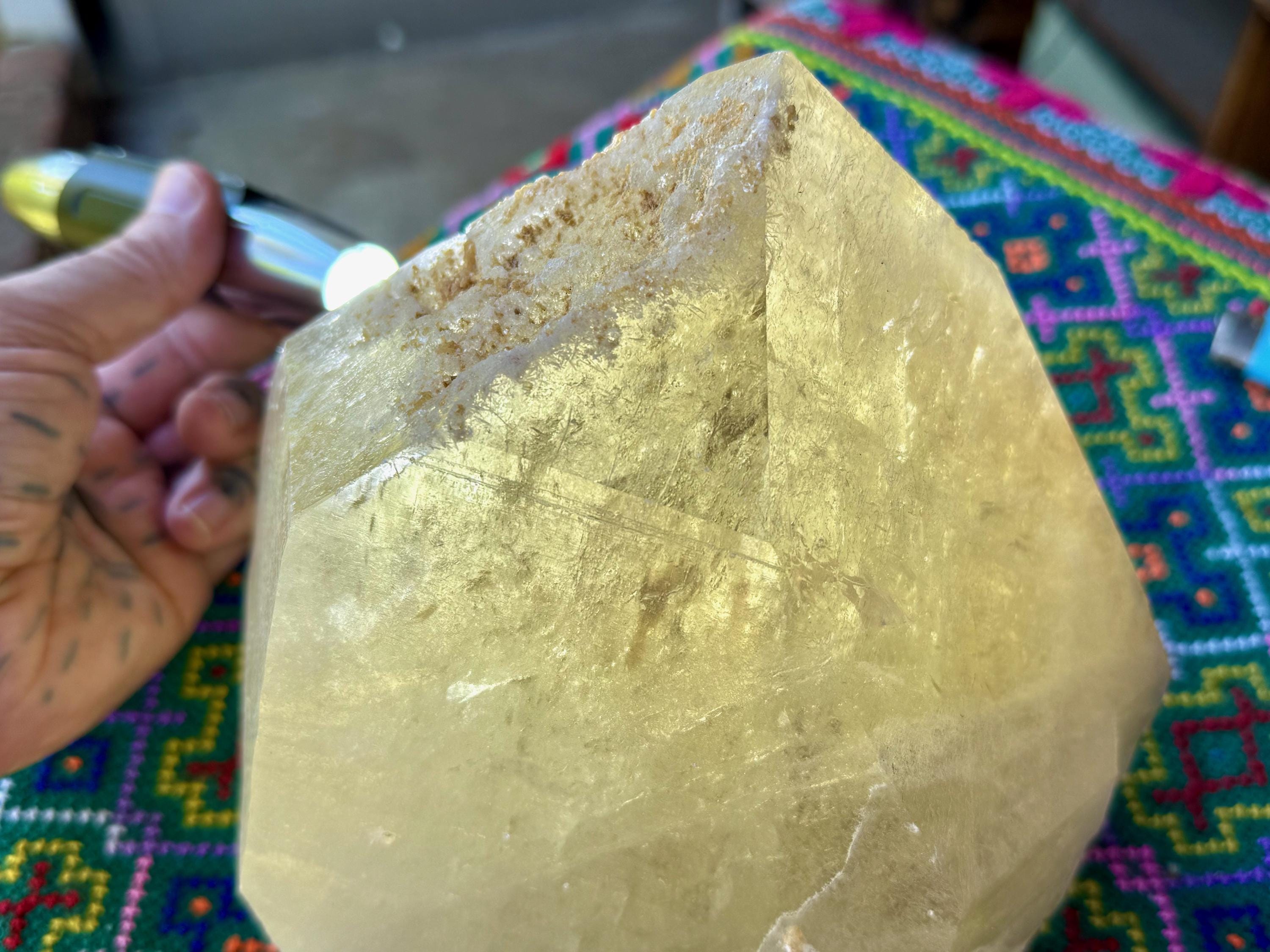 A vibrant golden powerhouse of manifesting energies! This is a massive, natural Citrine crystal with a golden-yellow color and handsome formation. At 4.4 Kilos (nearly 10 pounds), this is also one of the largest Citrines we currently have available.