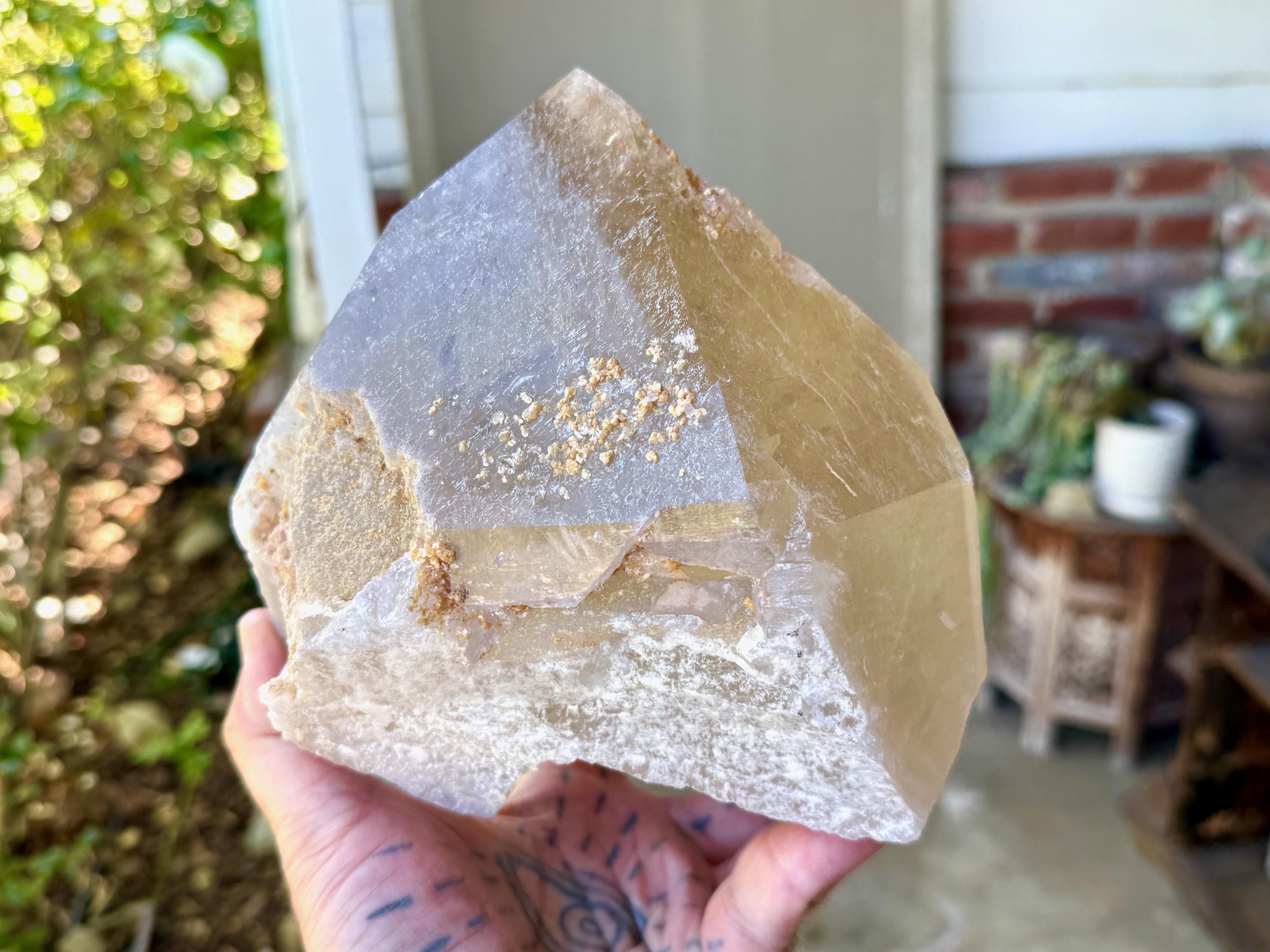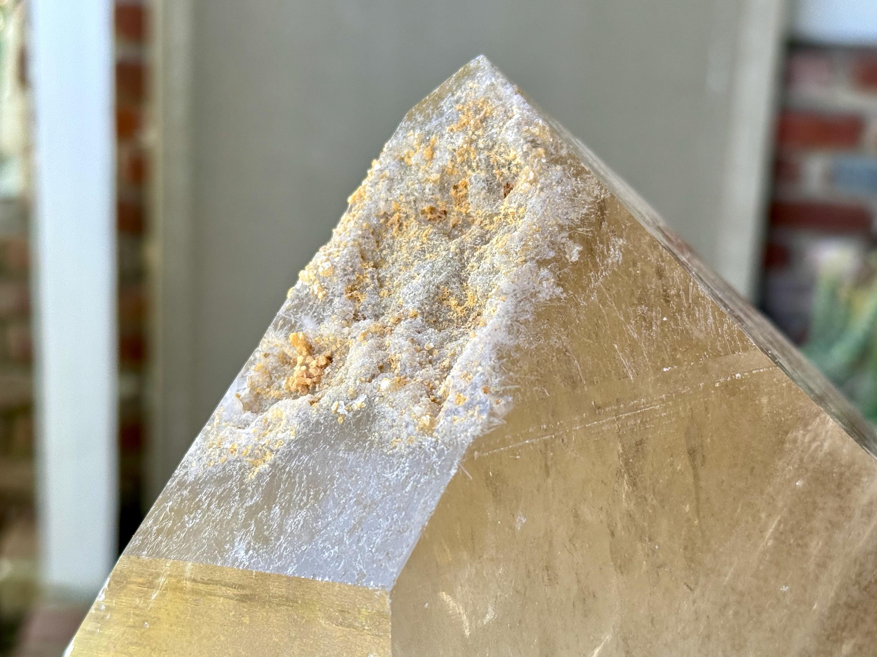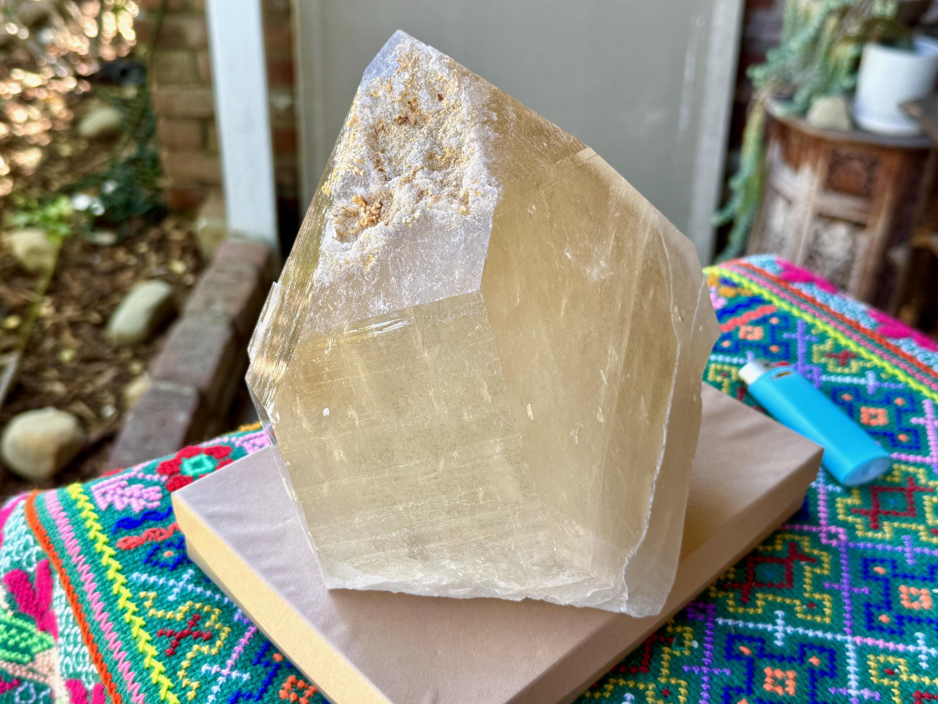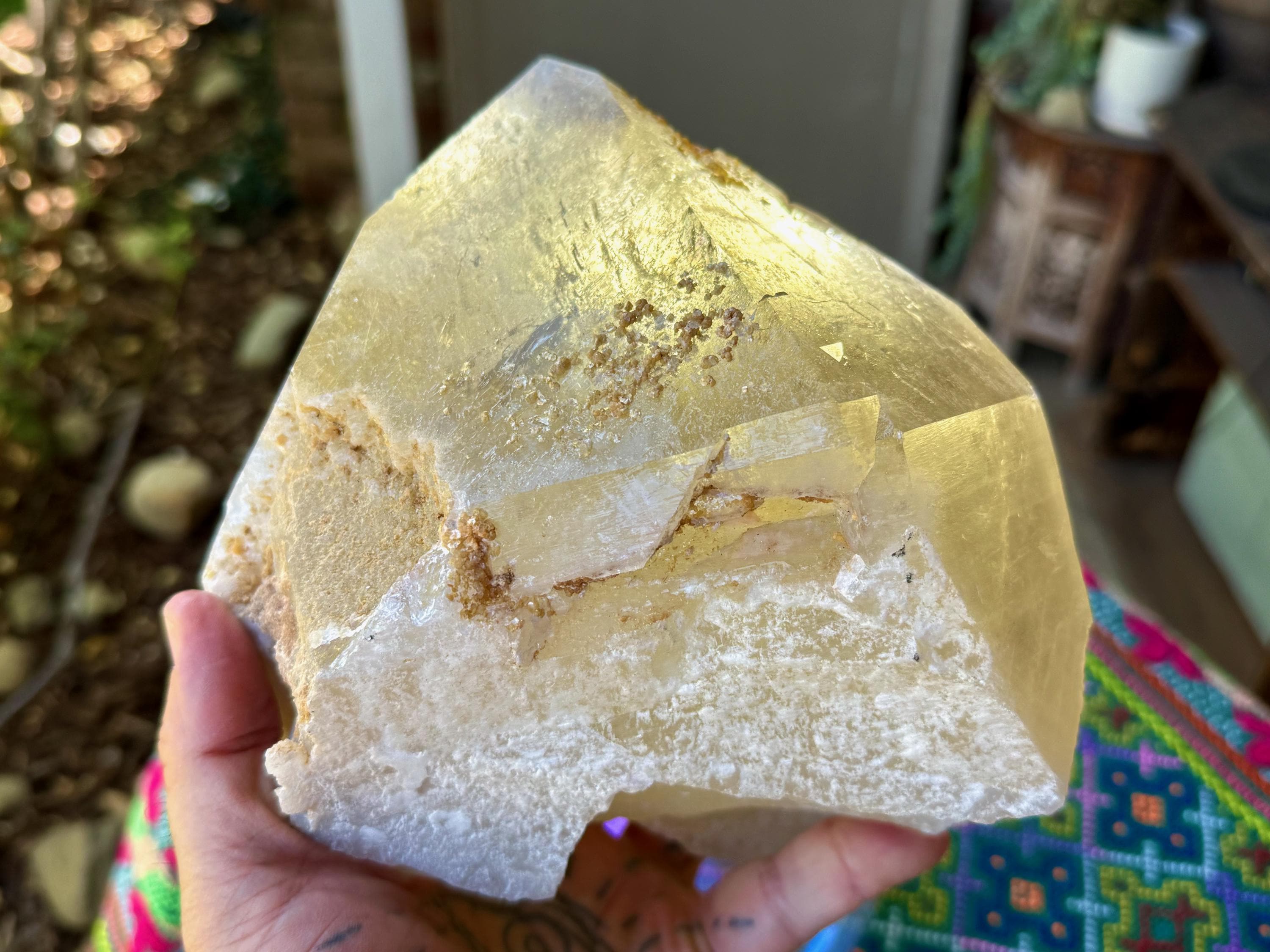 A vibrant golden powerhouse of manifesting energies! This is a massive, natural Citrine crystal with a golden-yellow color and handsome formation. At 4.4 Kilos (nearly 10 pounds), this is also one of the largest Citrines we currently have available.