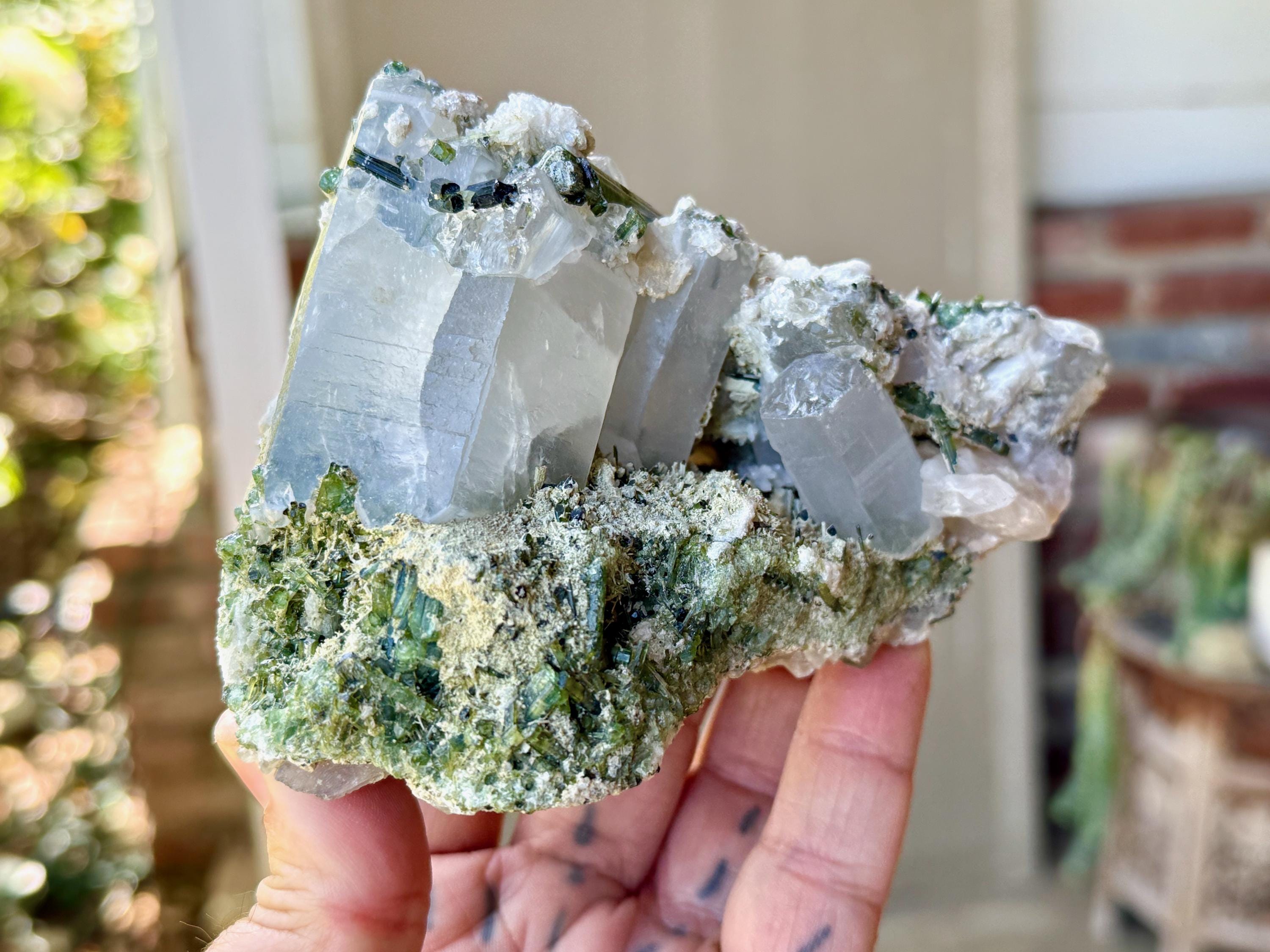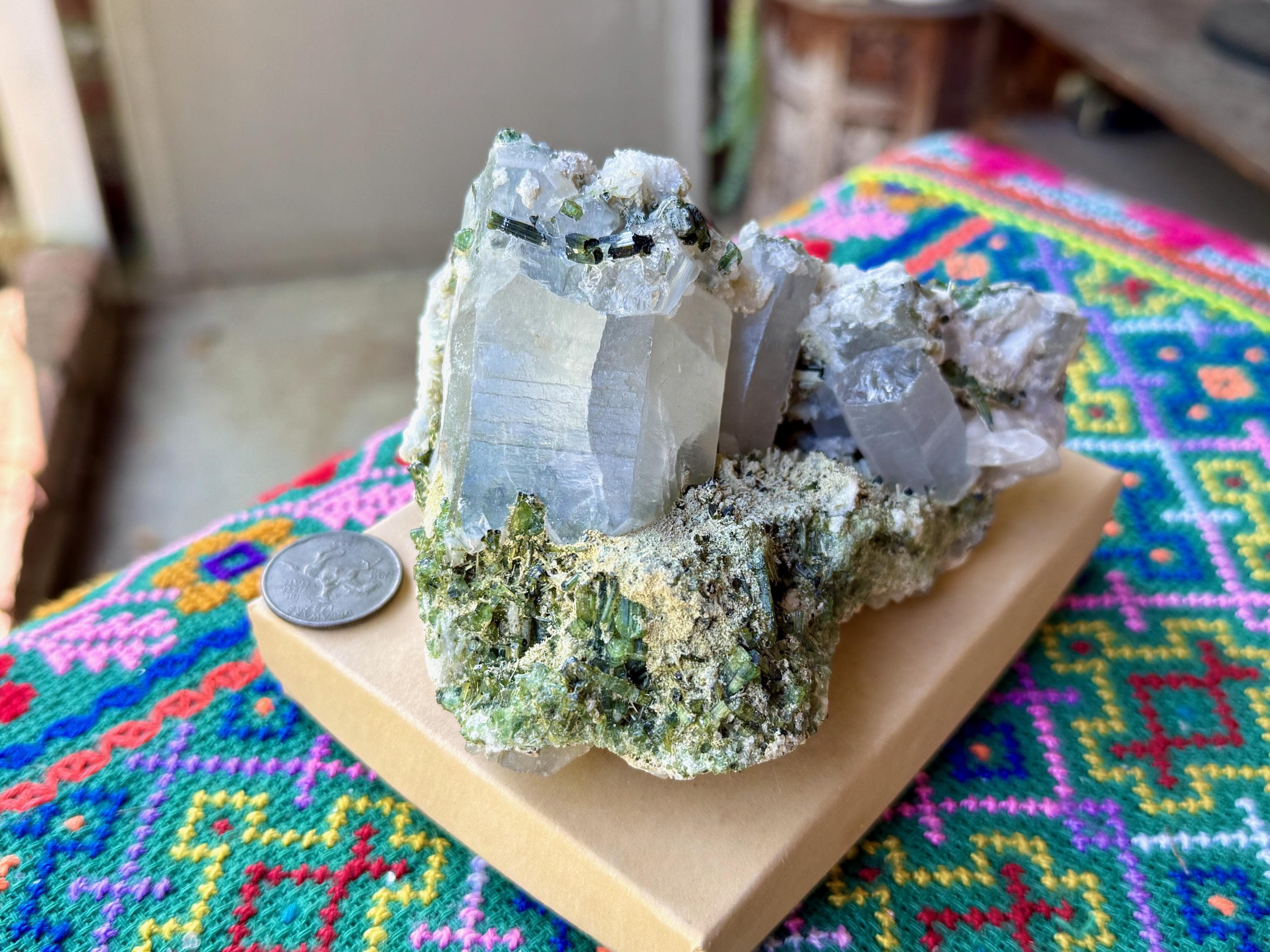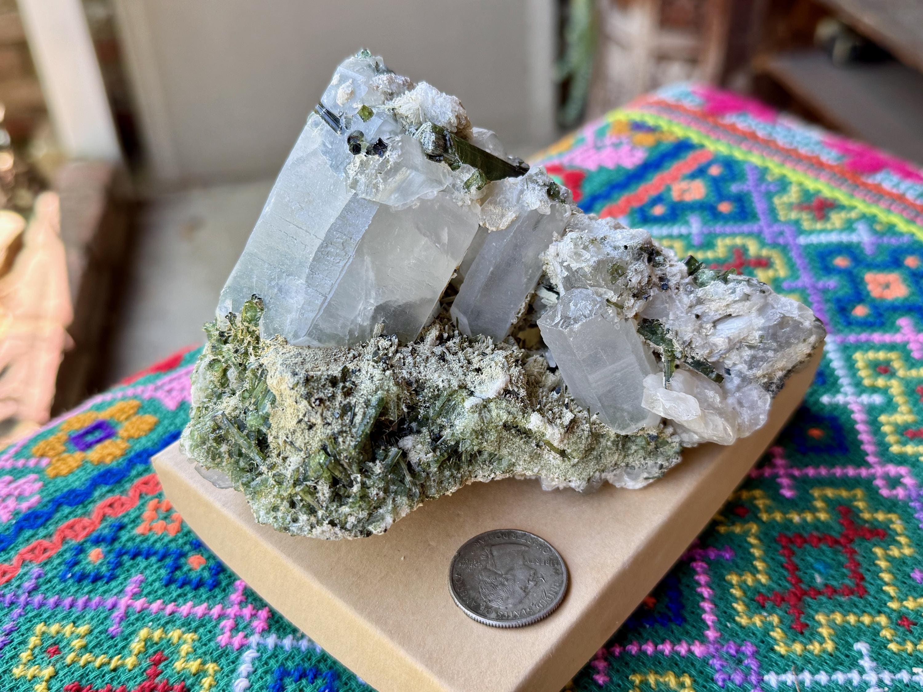 Gorgeous colors and marvelous formation to this large Green Tourmaline Quartz crystal!