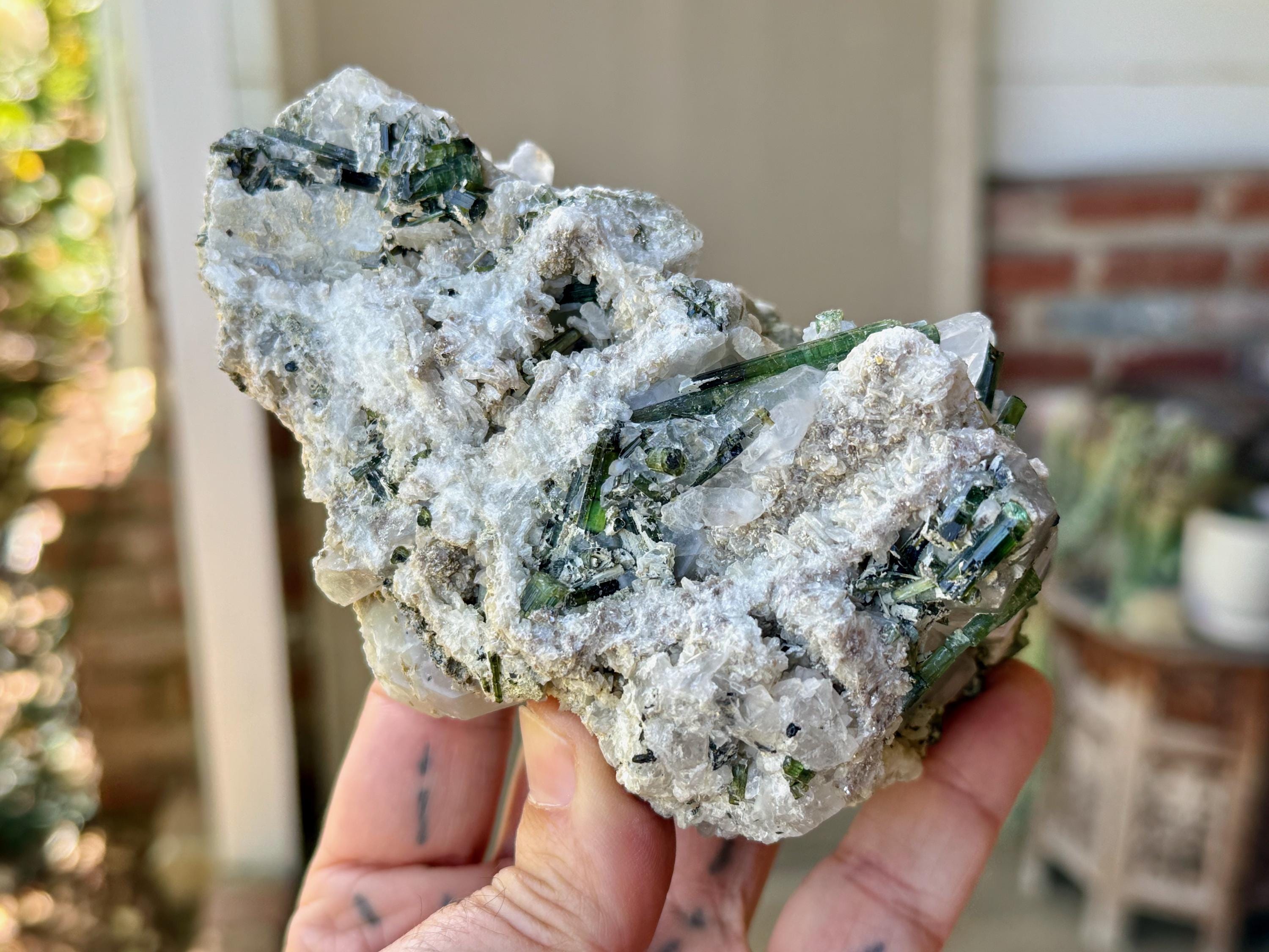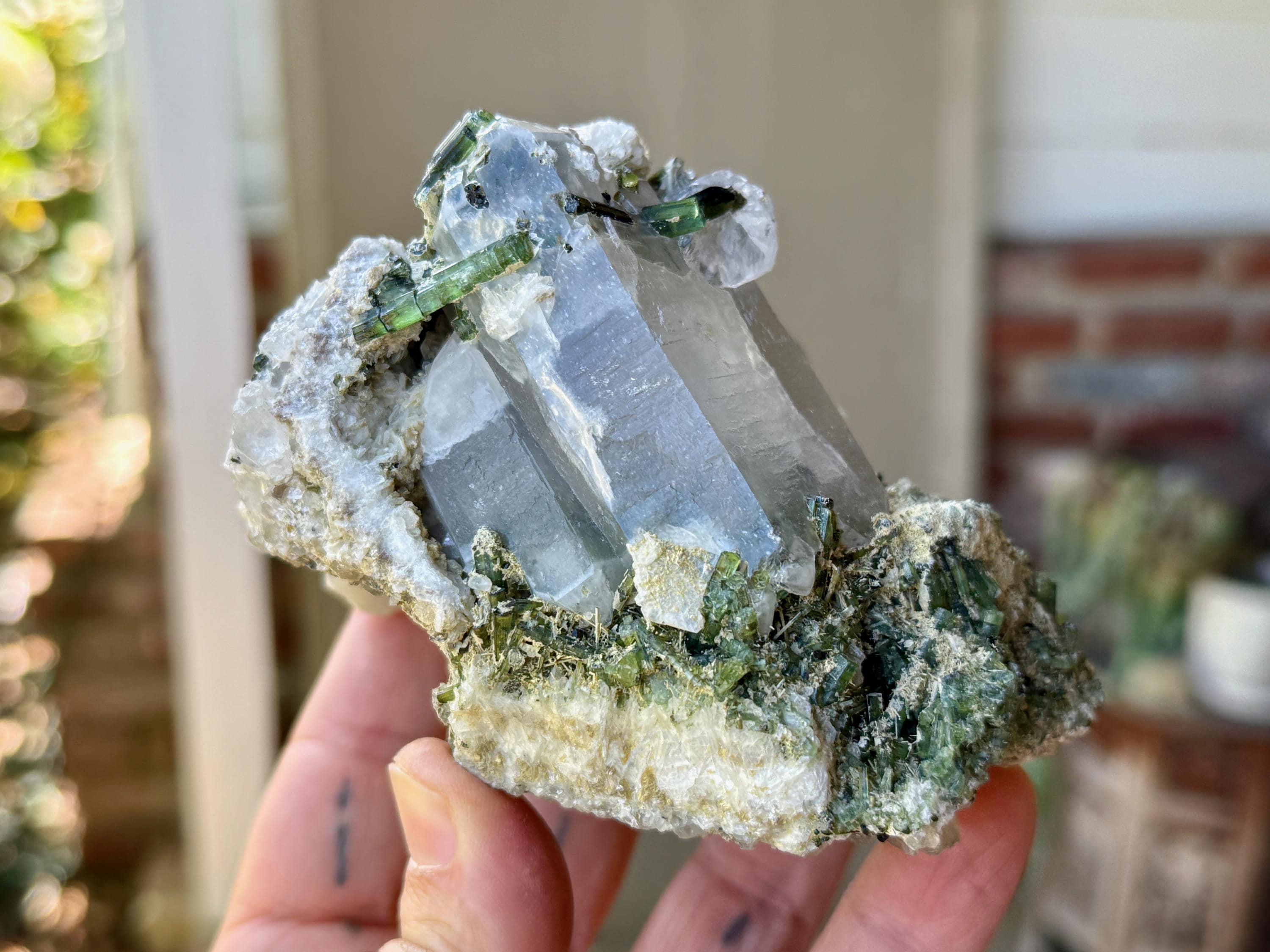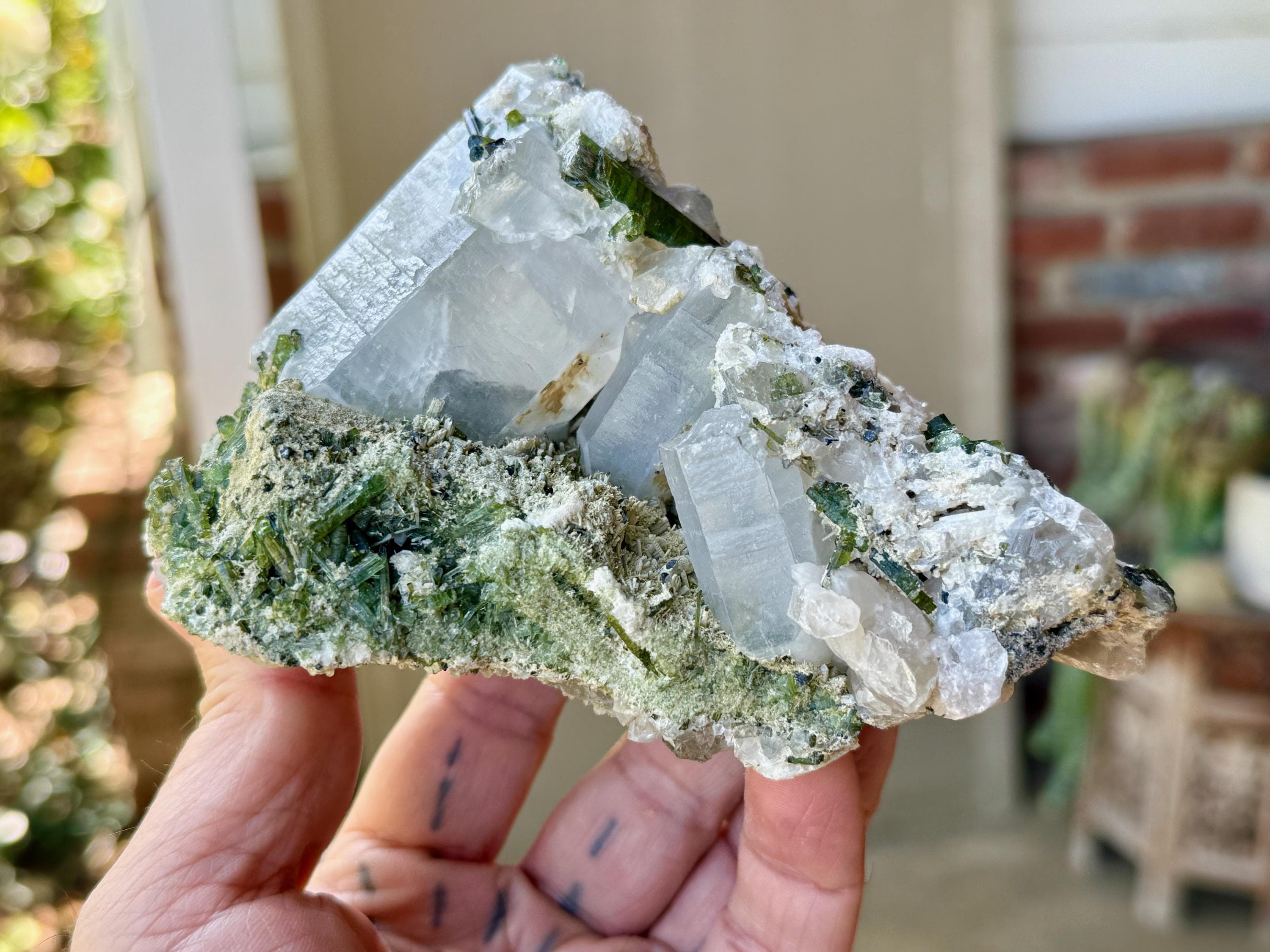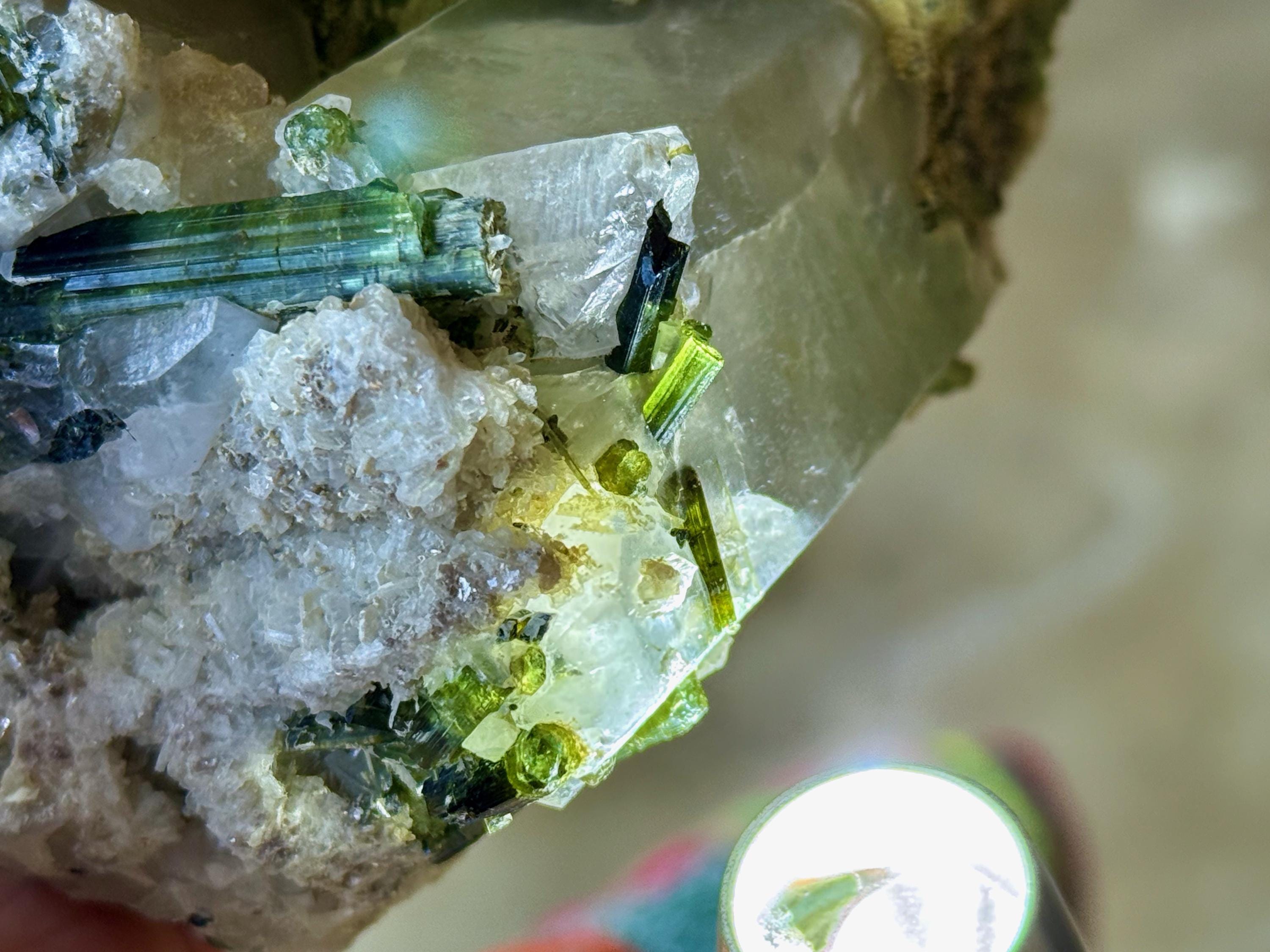 Gorgeous colors and marvelous formation to this large Green Tourmaline Quartz crystal!