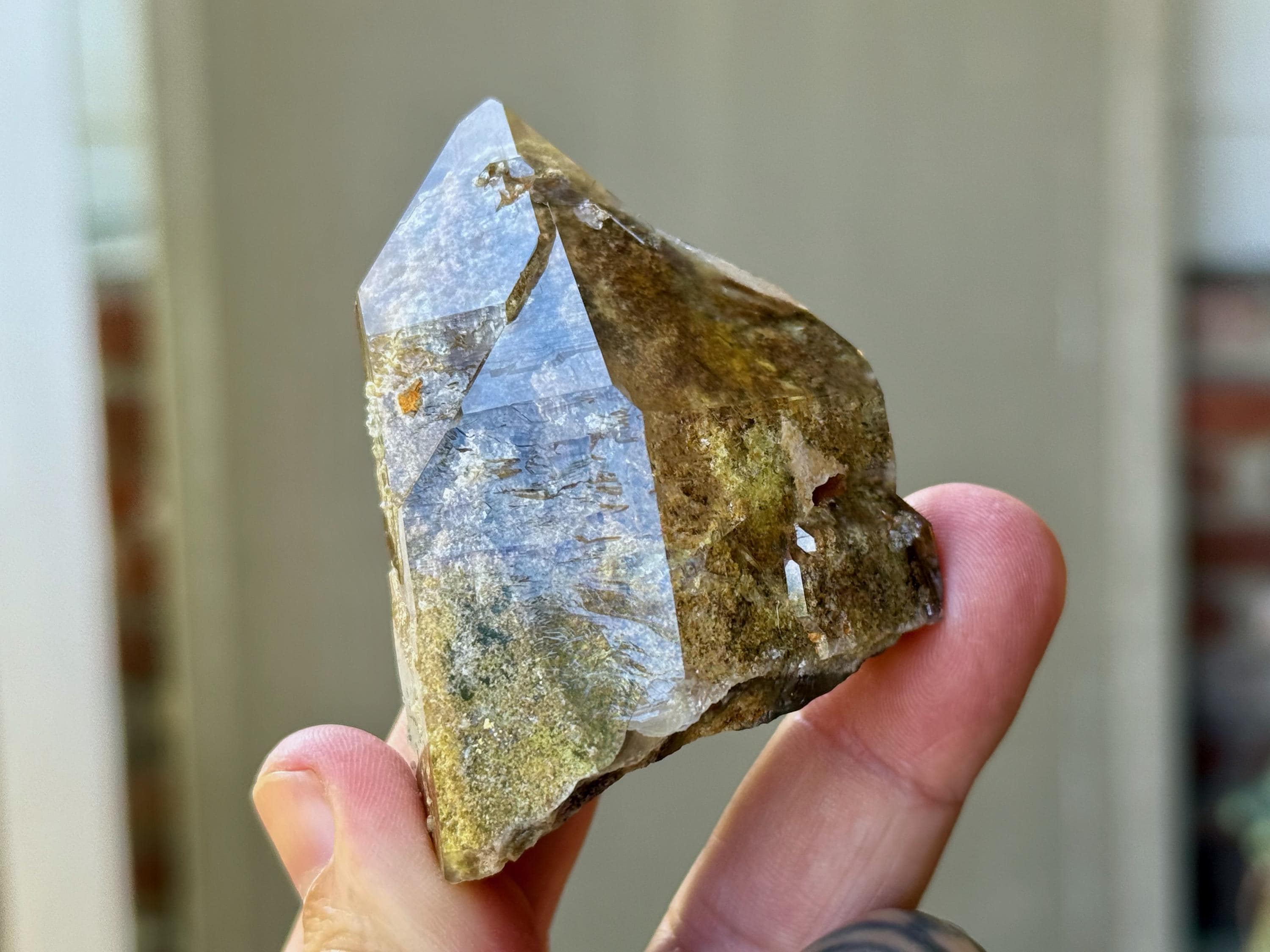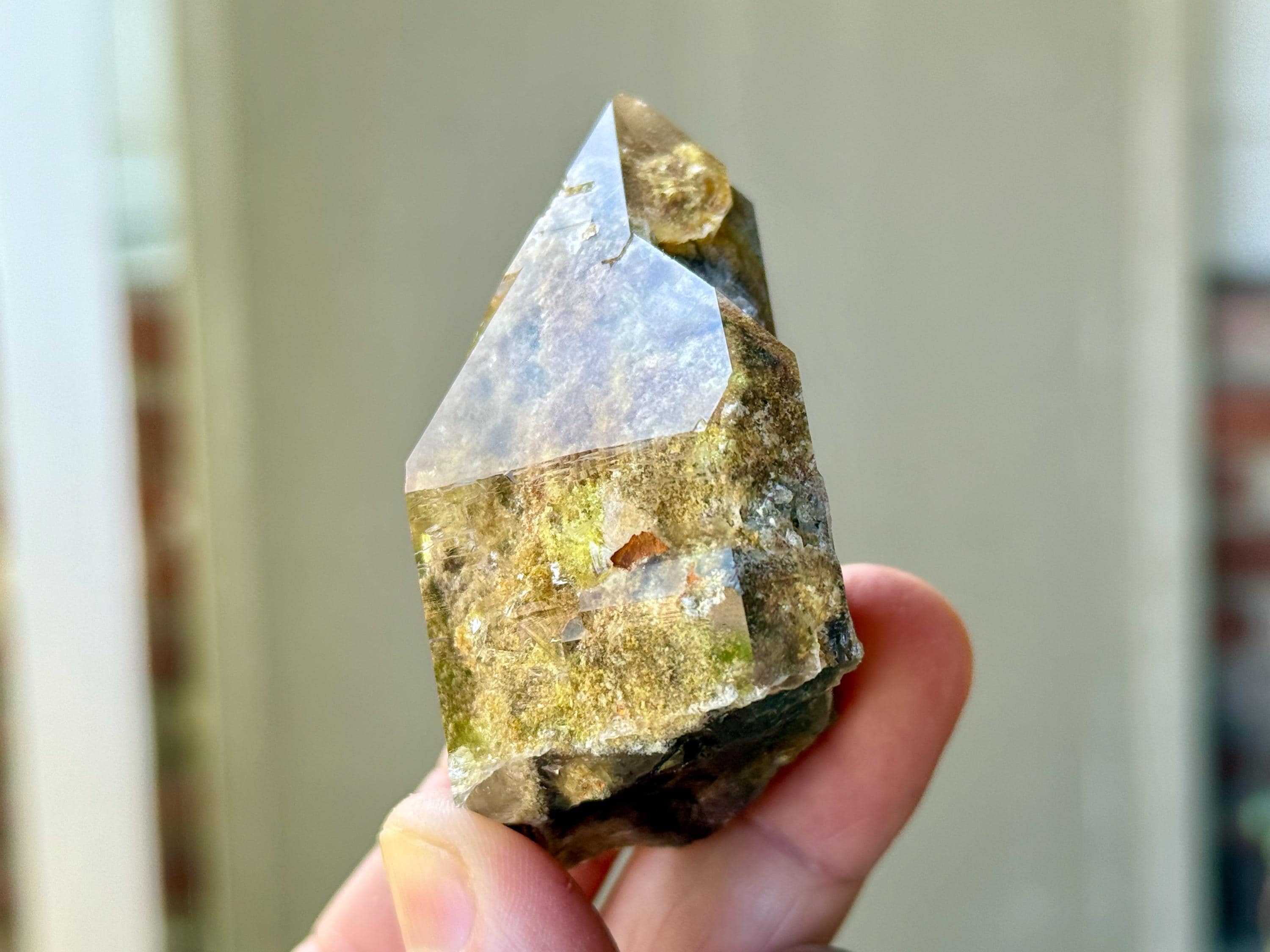 Lodolite Quartz, sometimes referred to as Garden Quartz for their beautiful inner landscapes, refers to crystals with colorful inclusions that may include Green Chlorite, Kaolinite, Hematite, Sulfite and other inclusions that all fall under the umbrella of "Lodolite." Each of these inclusions carries a particular energy of purification, grounding or healing, and the combination of these elements together, amplified by the Quartz surrounding them, creates a powerful healing energy. Aesthetically, they often have stunning inner landscapes that often look like mossy underwater gardens.