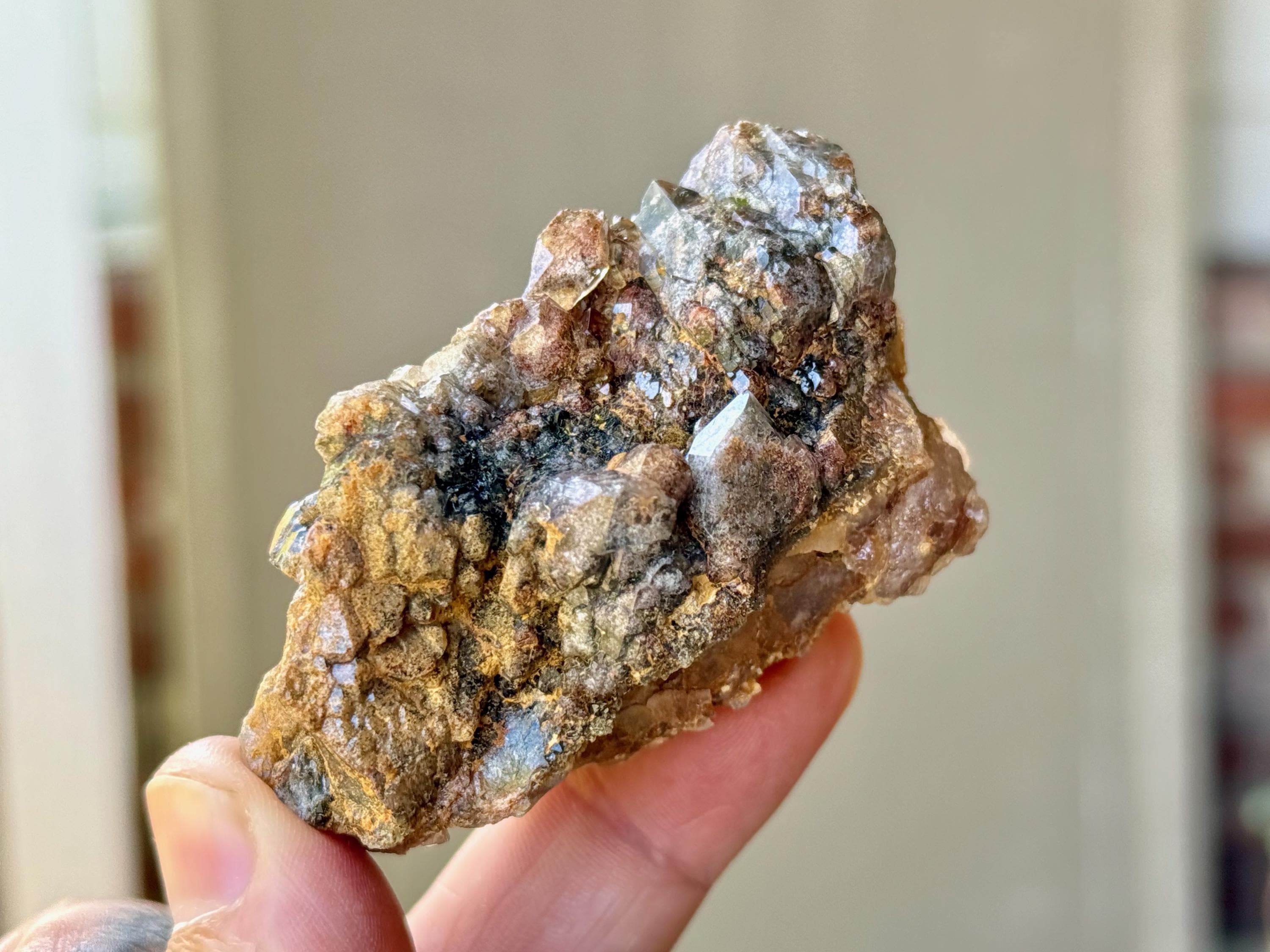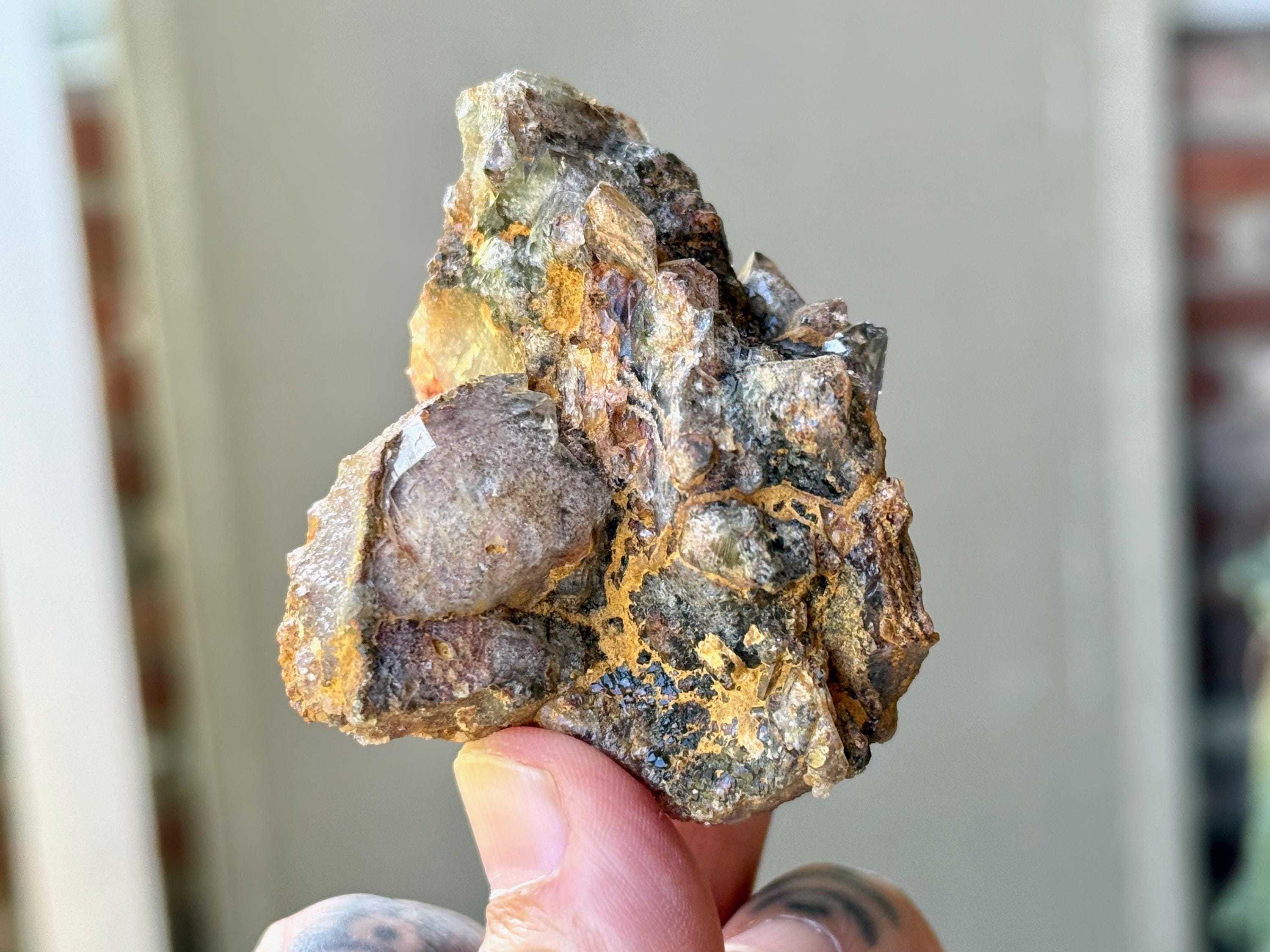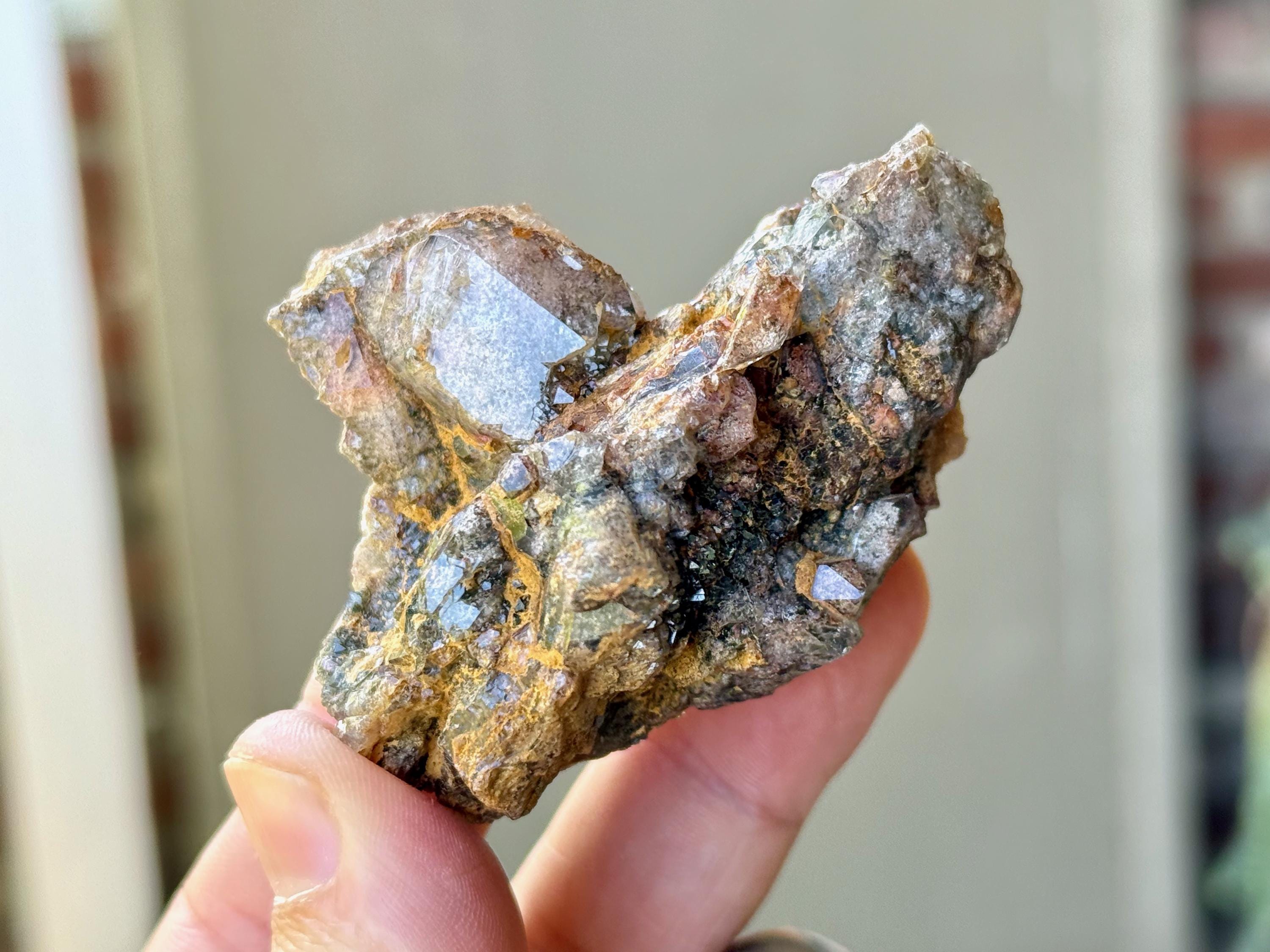 Such a unique formation to this vibrant Shaman's Dream Quartz crystal that is densely packed with colorful Lodolite inclusions, including dark Green Chlorite and orange Hematite.