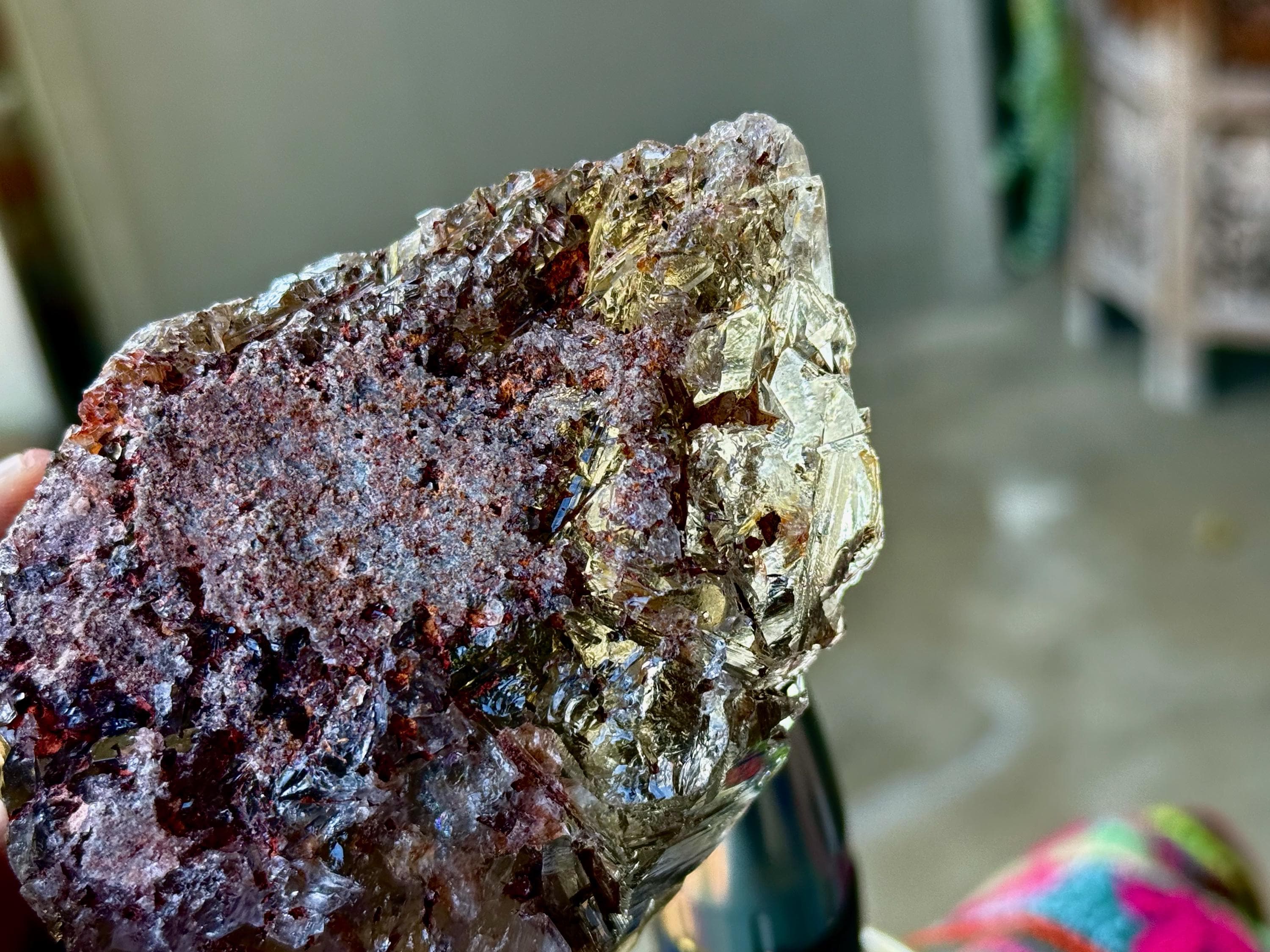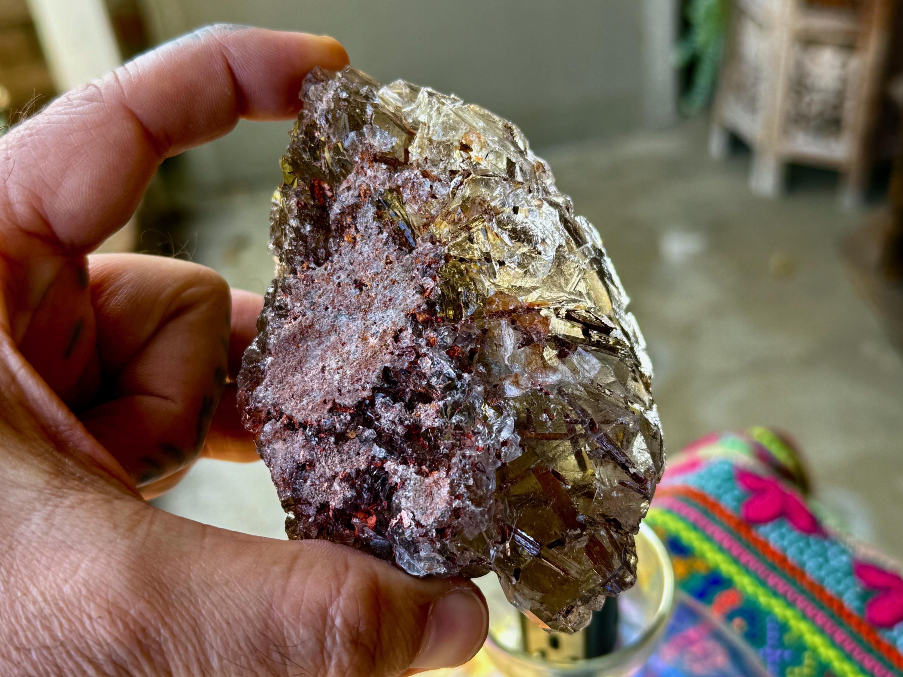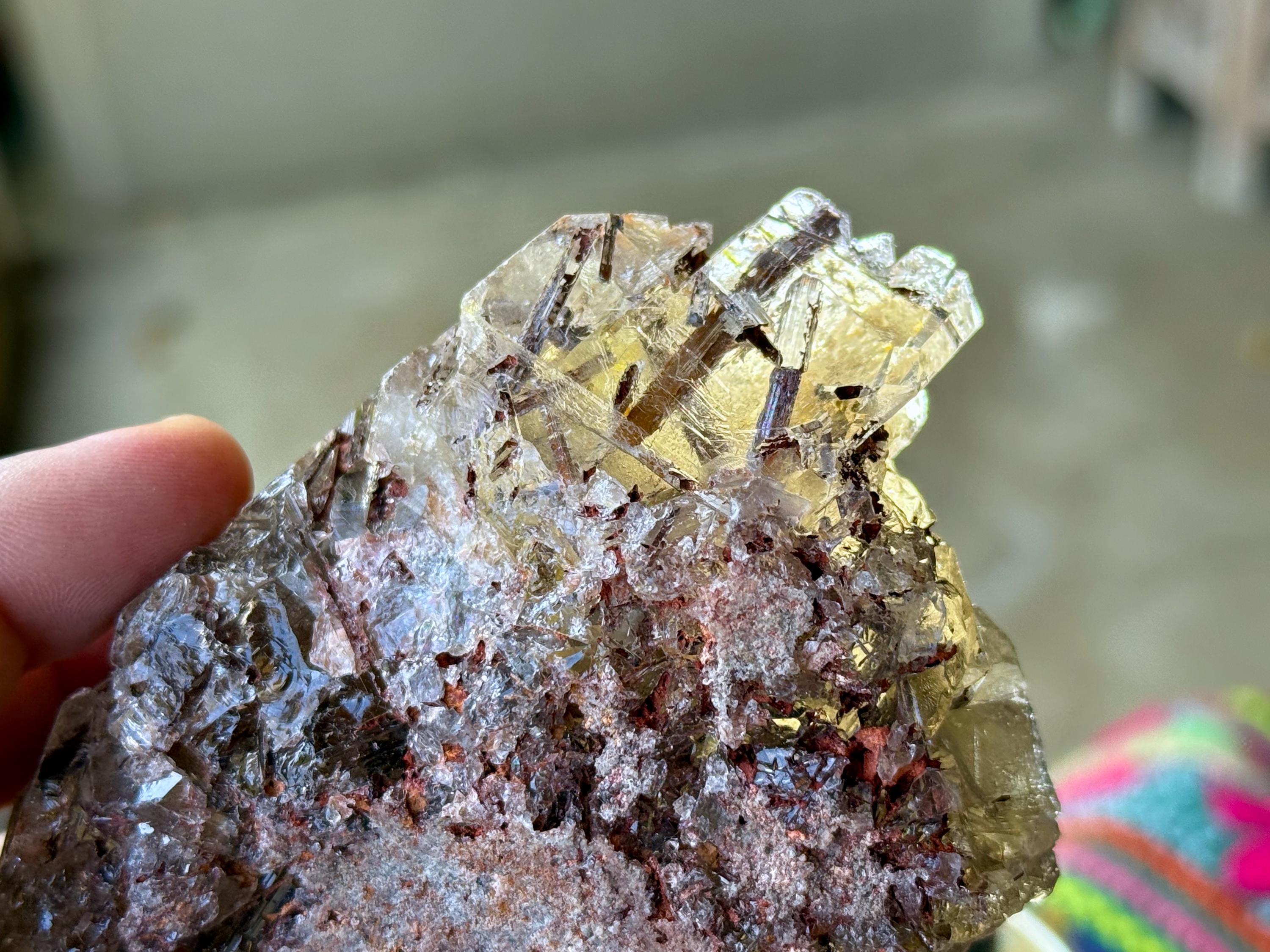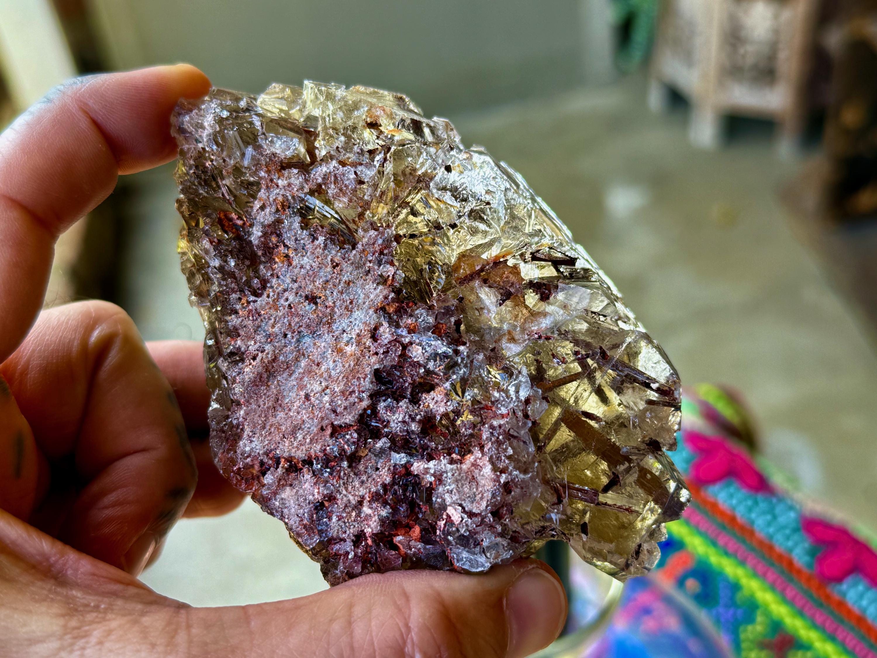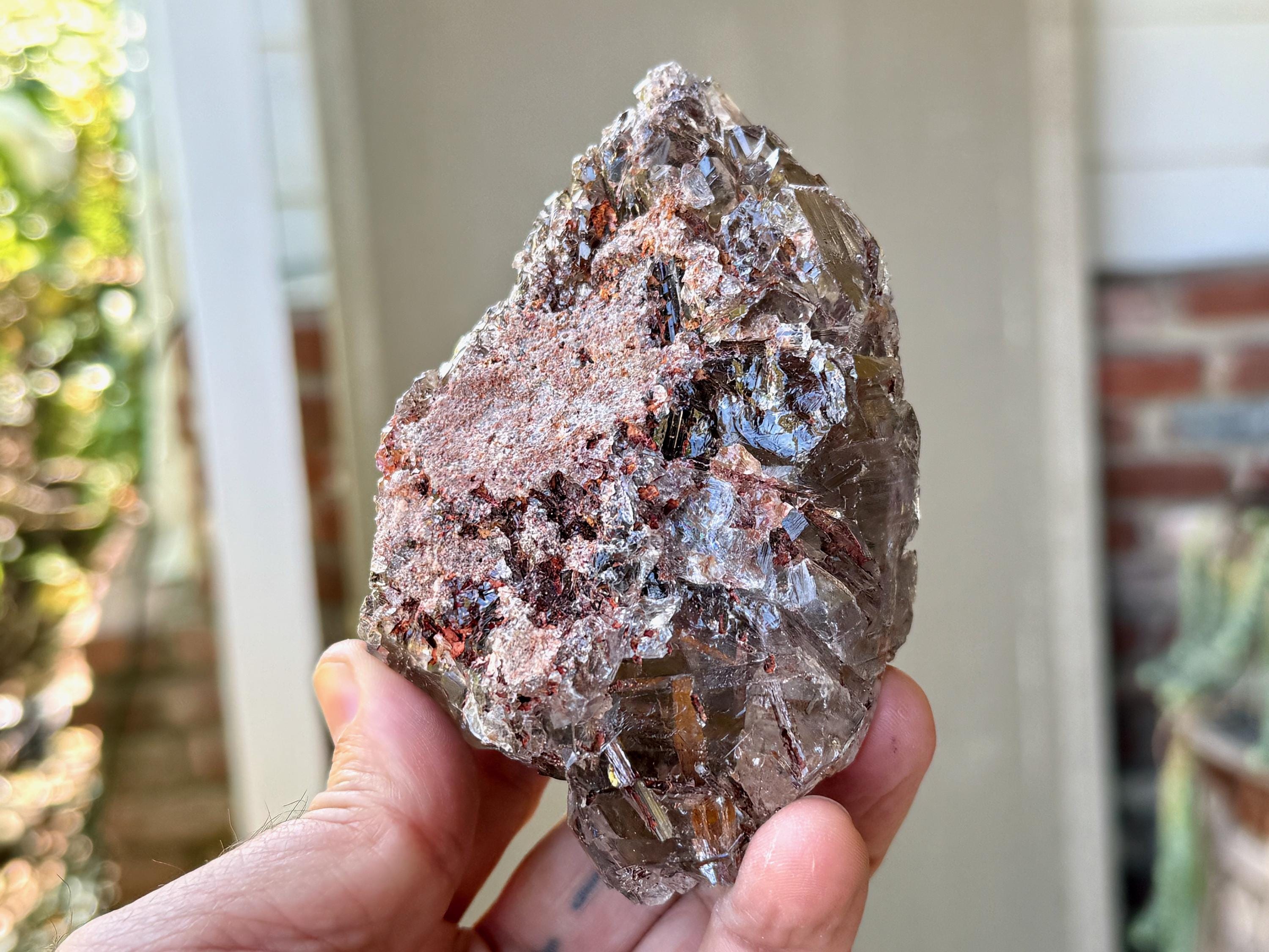 This find produced crystals exhibiting both unique growth interference indications as well as rare inclusions of Red Epidote, otherwise known as Piemontite. Piemontite is a member of the Epidote family, and grows in beautiful reddish brown cylindrical forms with gorgeous luster.