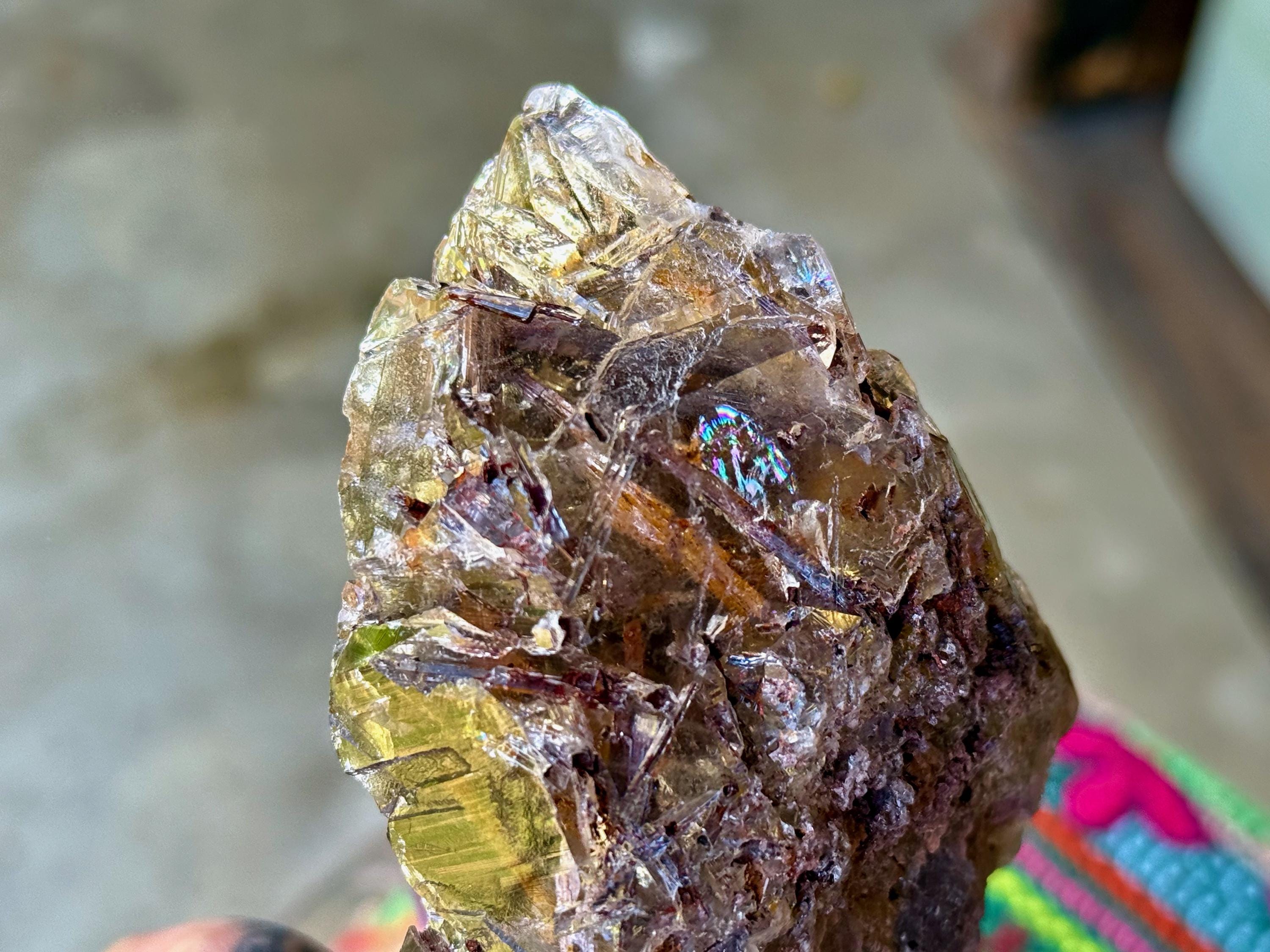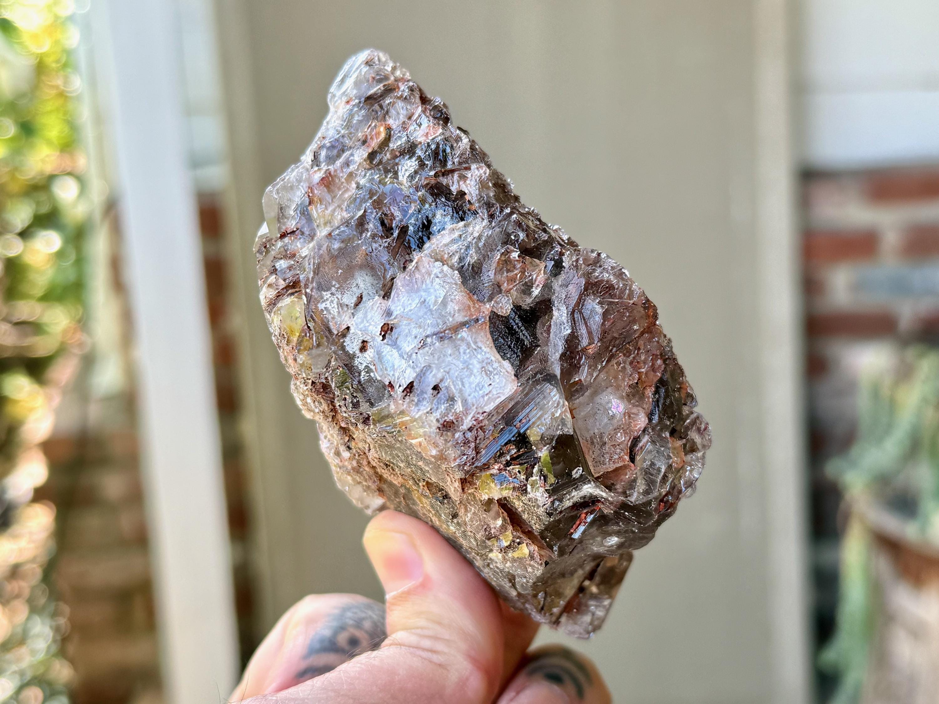 One of the largest pieces from this collection, this piece displays all the characteristics we love to see in these Smoky Growth Interference crystals!