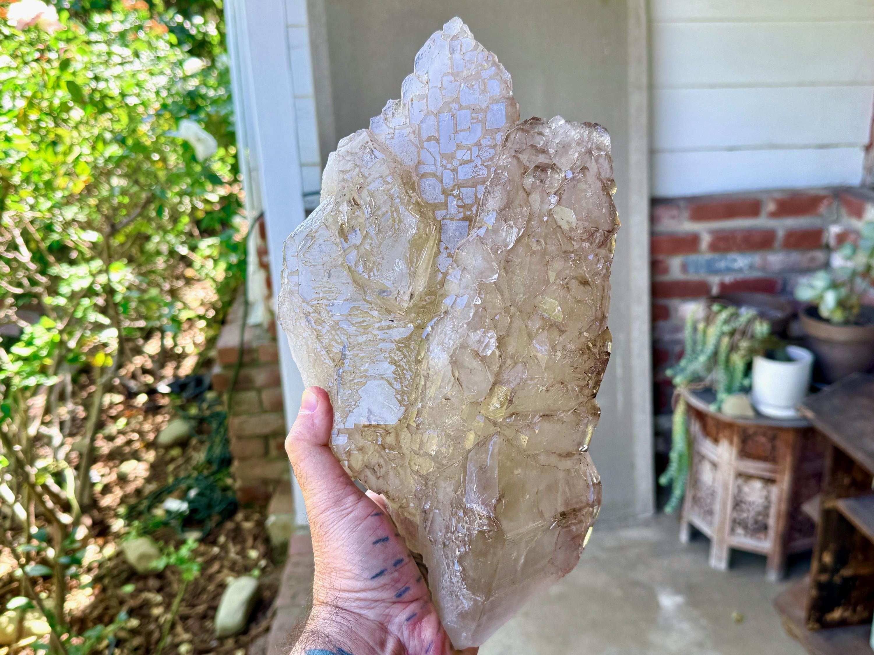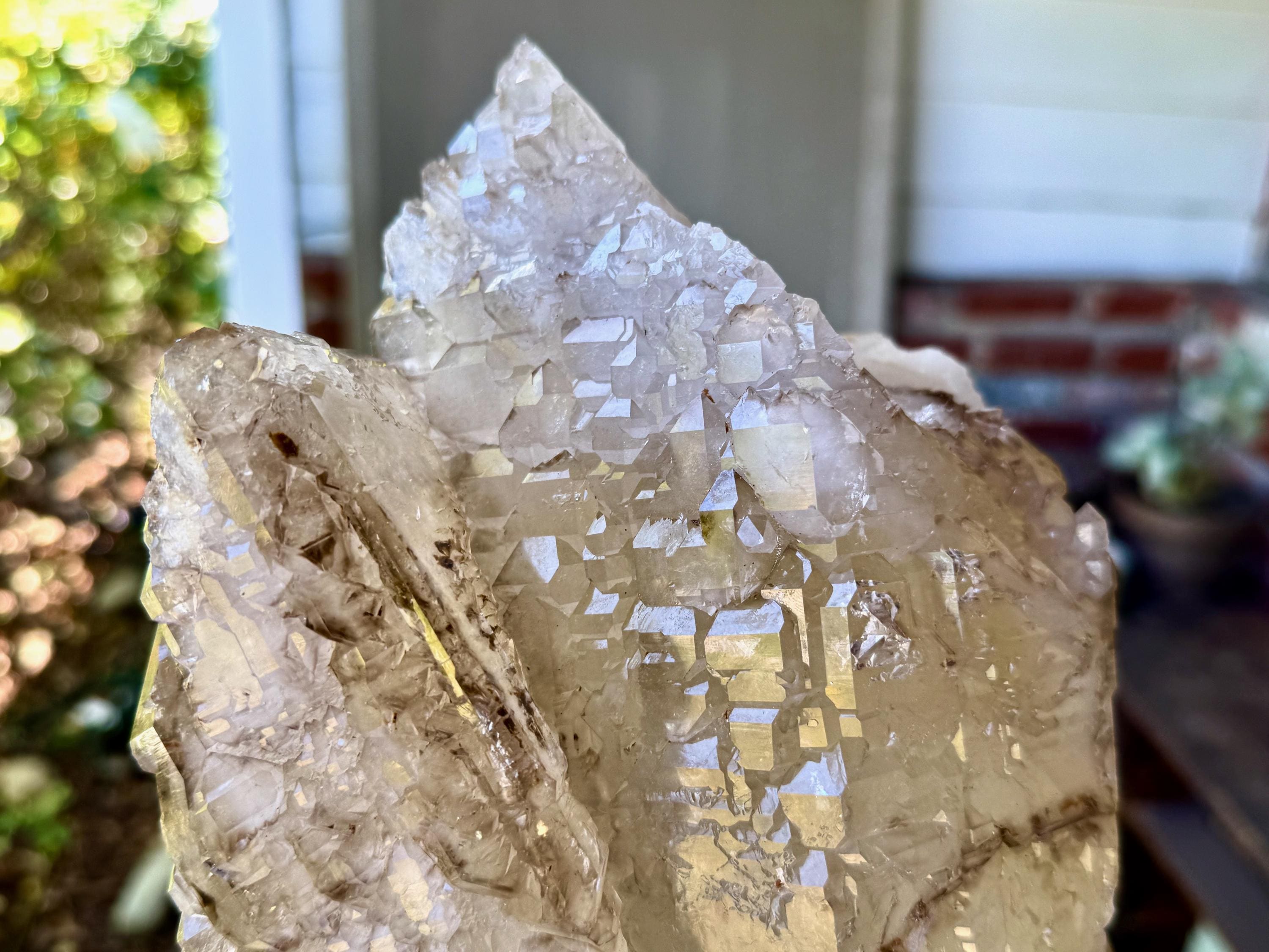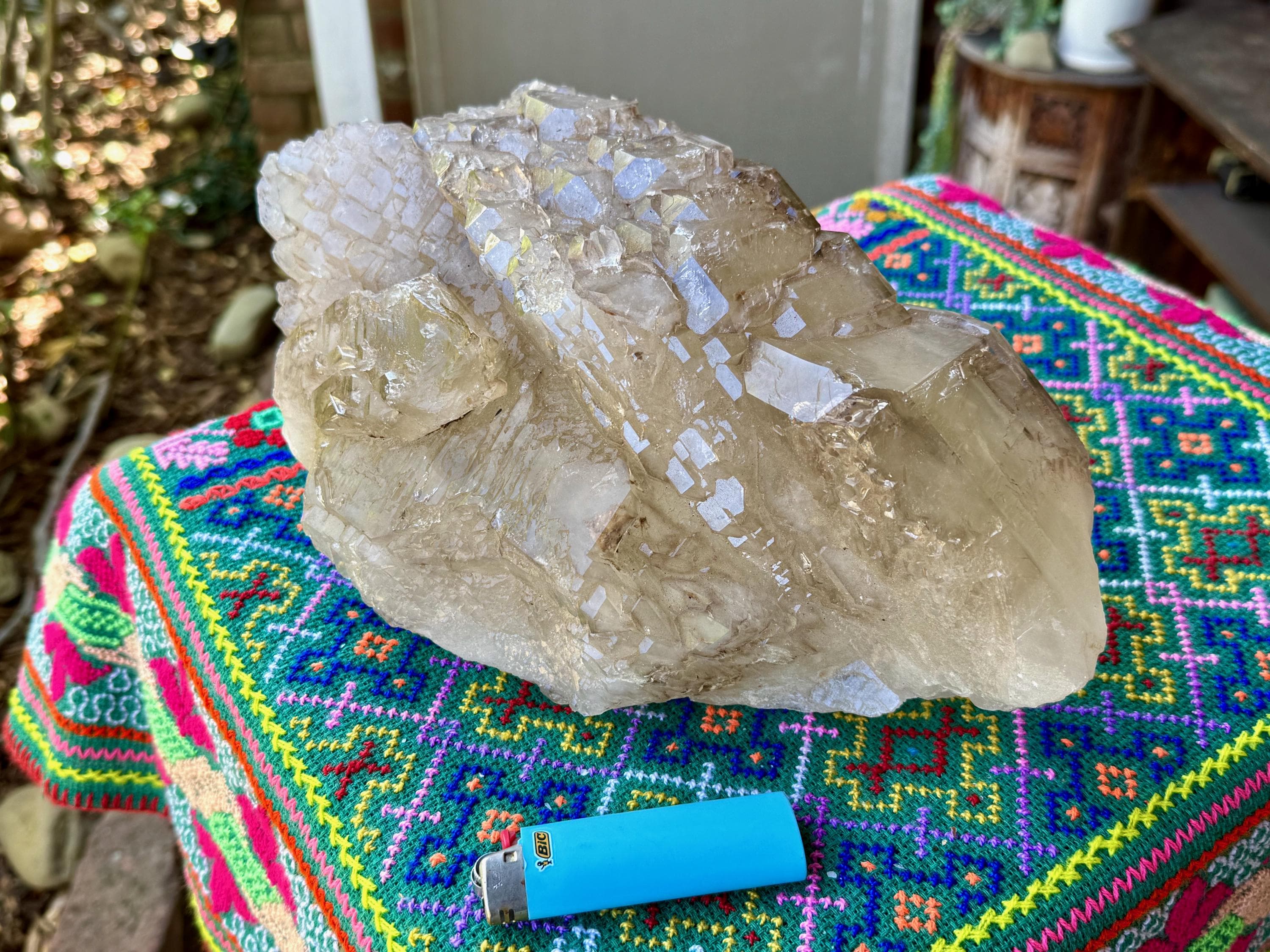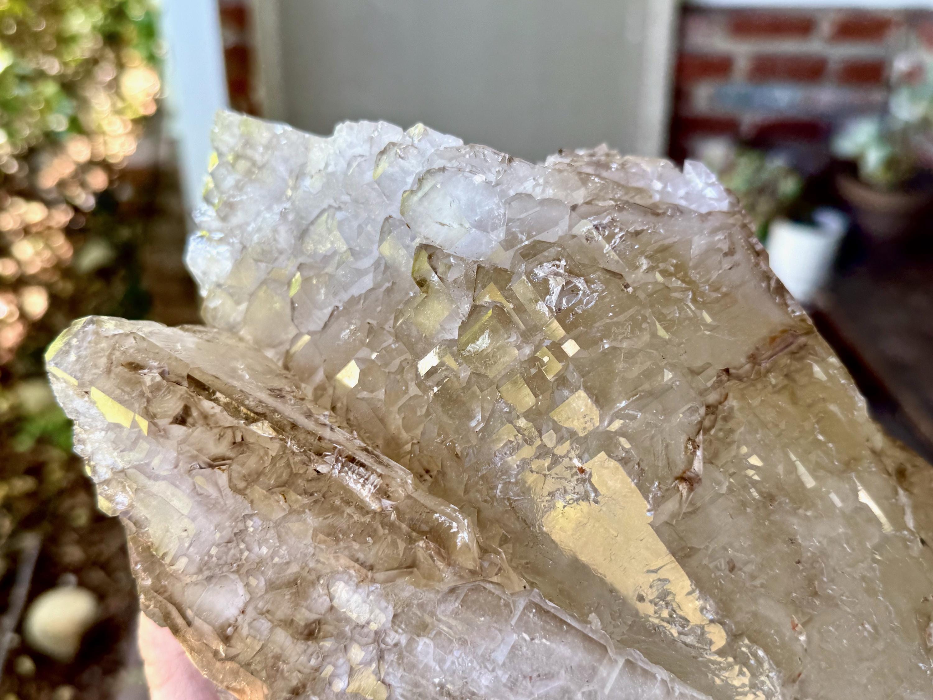 At close to 6 kilograms (over 12 pounds), the size of this crystal is truly impressive, as is the quality, displaying brilliant luster and a marvelous zoning of color, ranging from mildly golden, to mildly smoky to white and clear. The overall hue is mild, indicating a higher Quartz to Citrine ratio, but at certain angles, the golden hues really do come through.