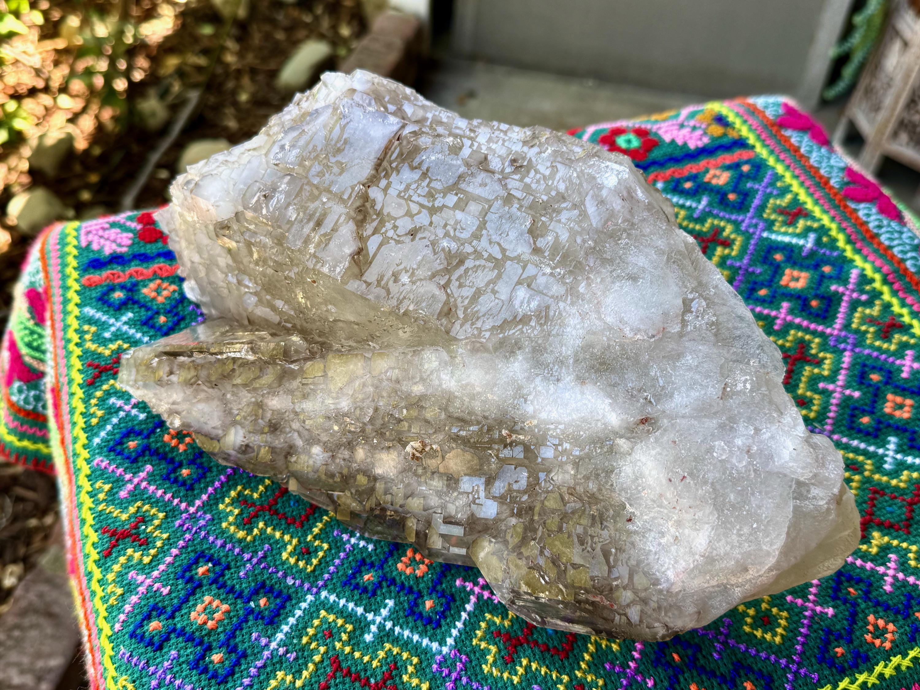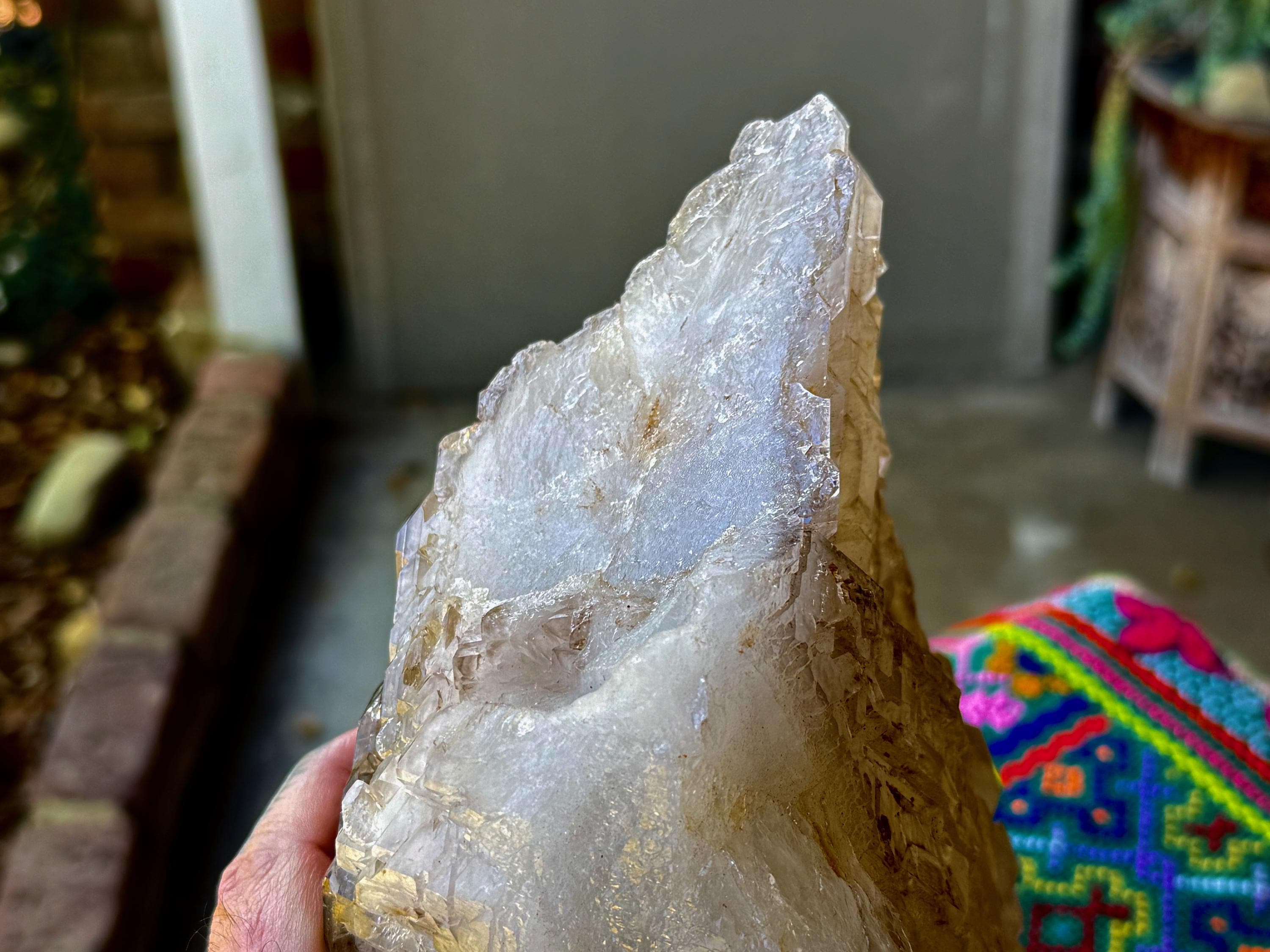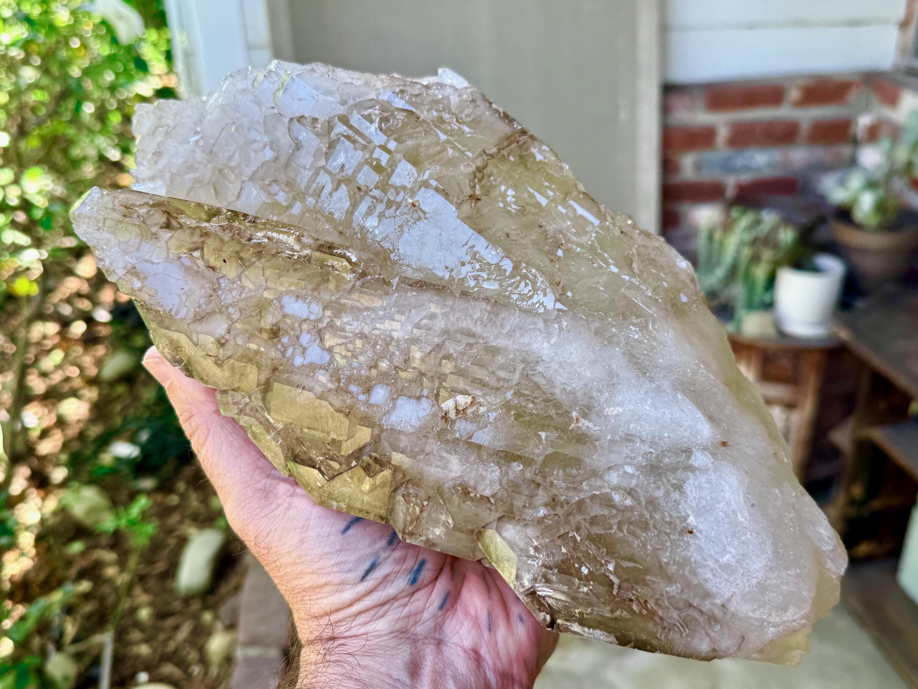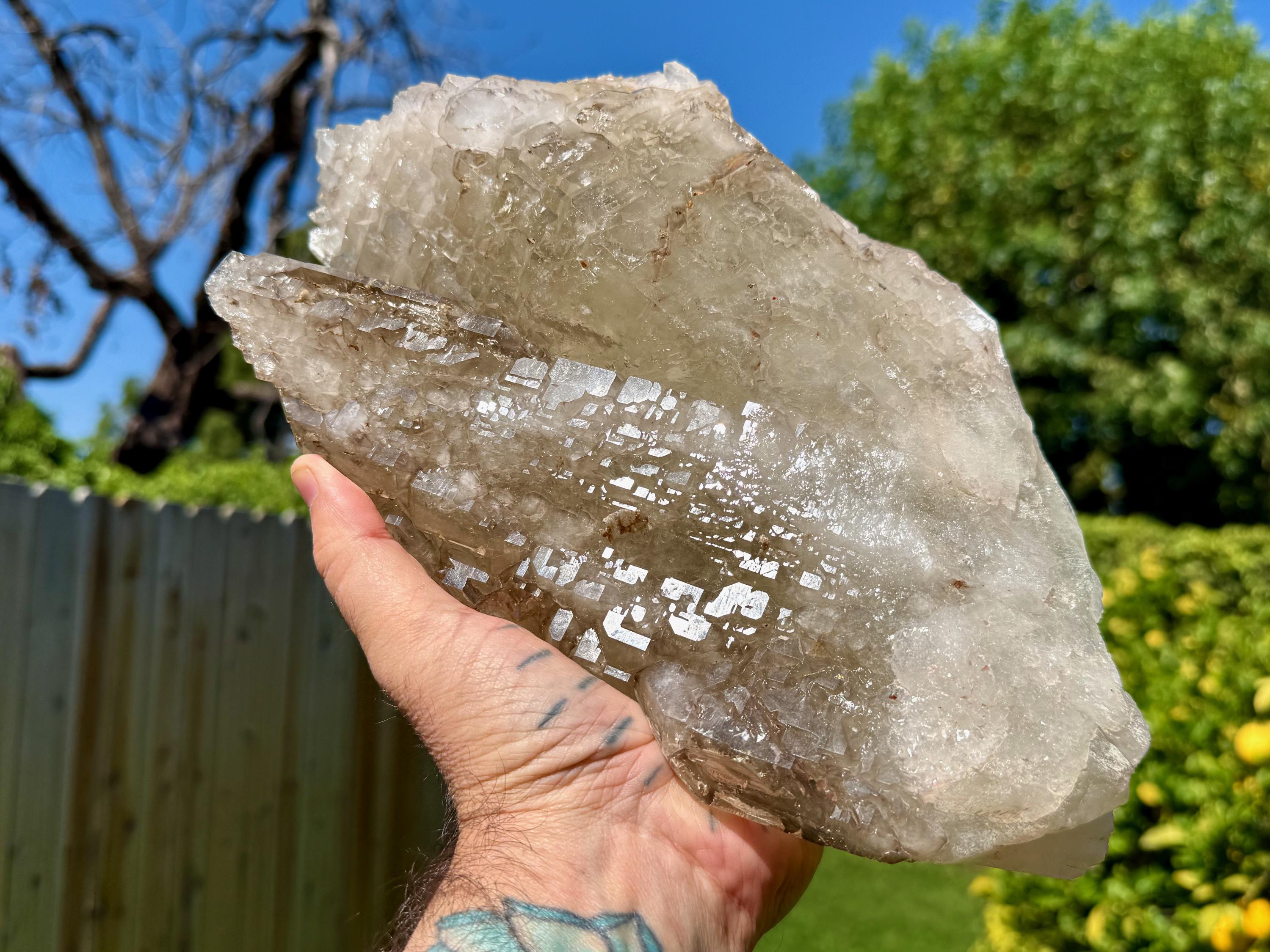 At close to 6 kilograms (over 12 pounds), the size of this crystal is truly impressive, as is the quality, displaying brilliant luster and a marvelous zoning of color, ranging from mildly golden, to mildly smoky to white and clear. The overall hue is mild, indicating a higher Quartz to Citrine ratio, but at certain angles, the golden hues really do come through.