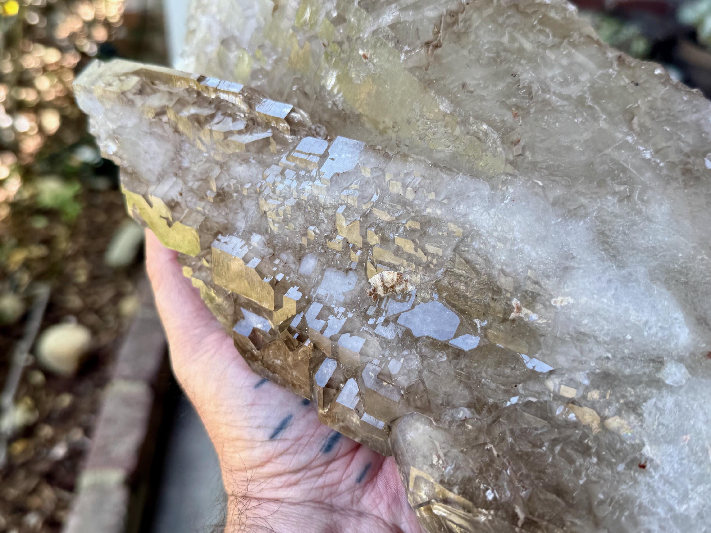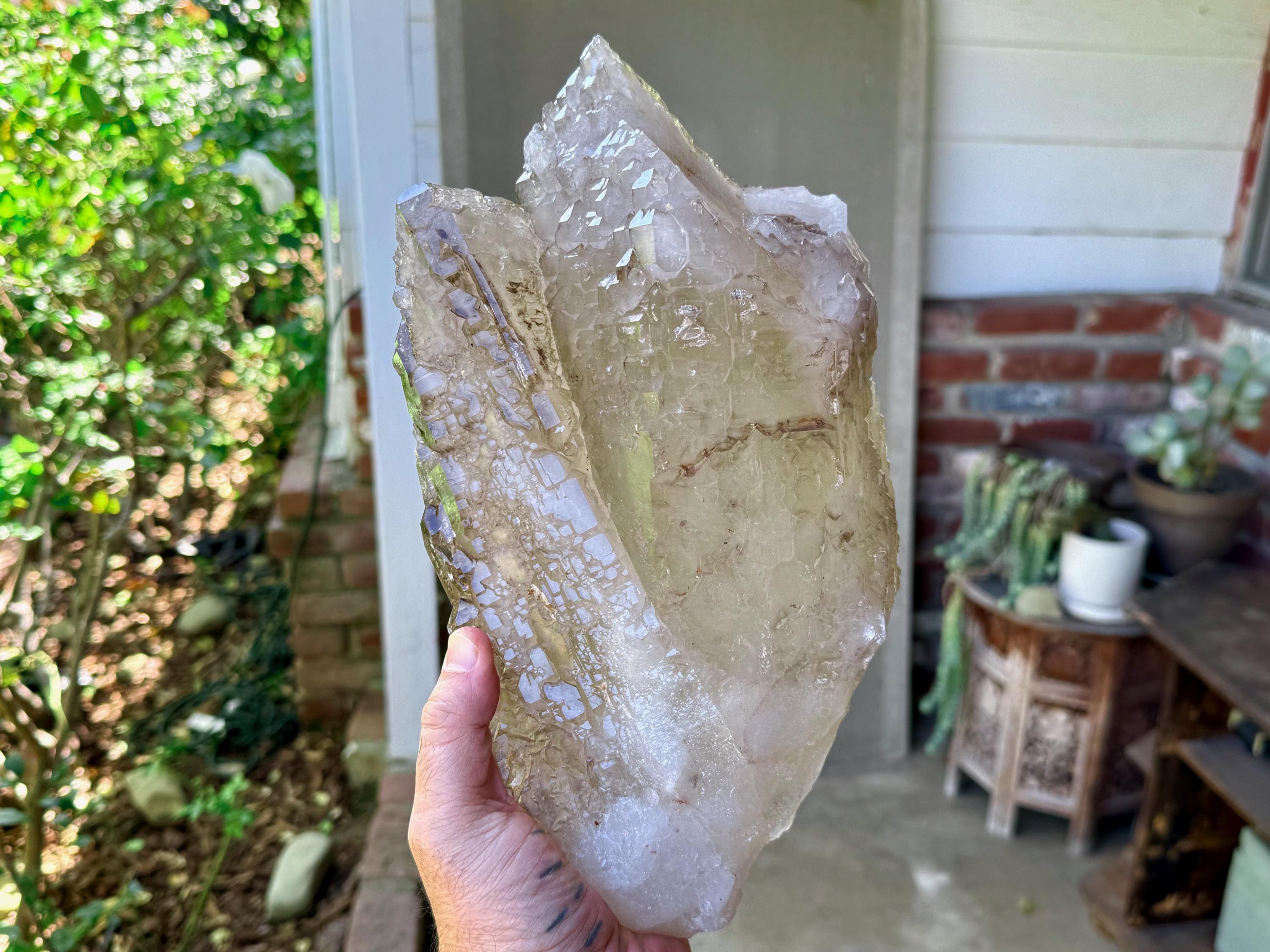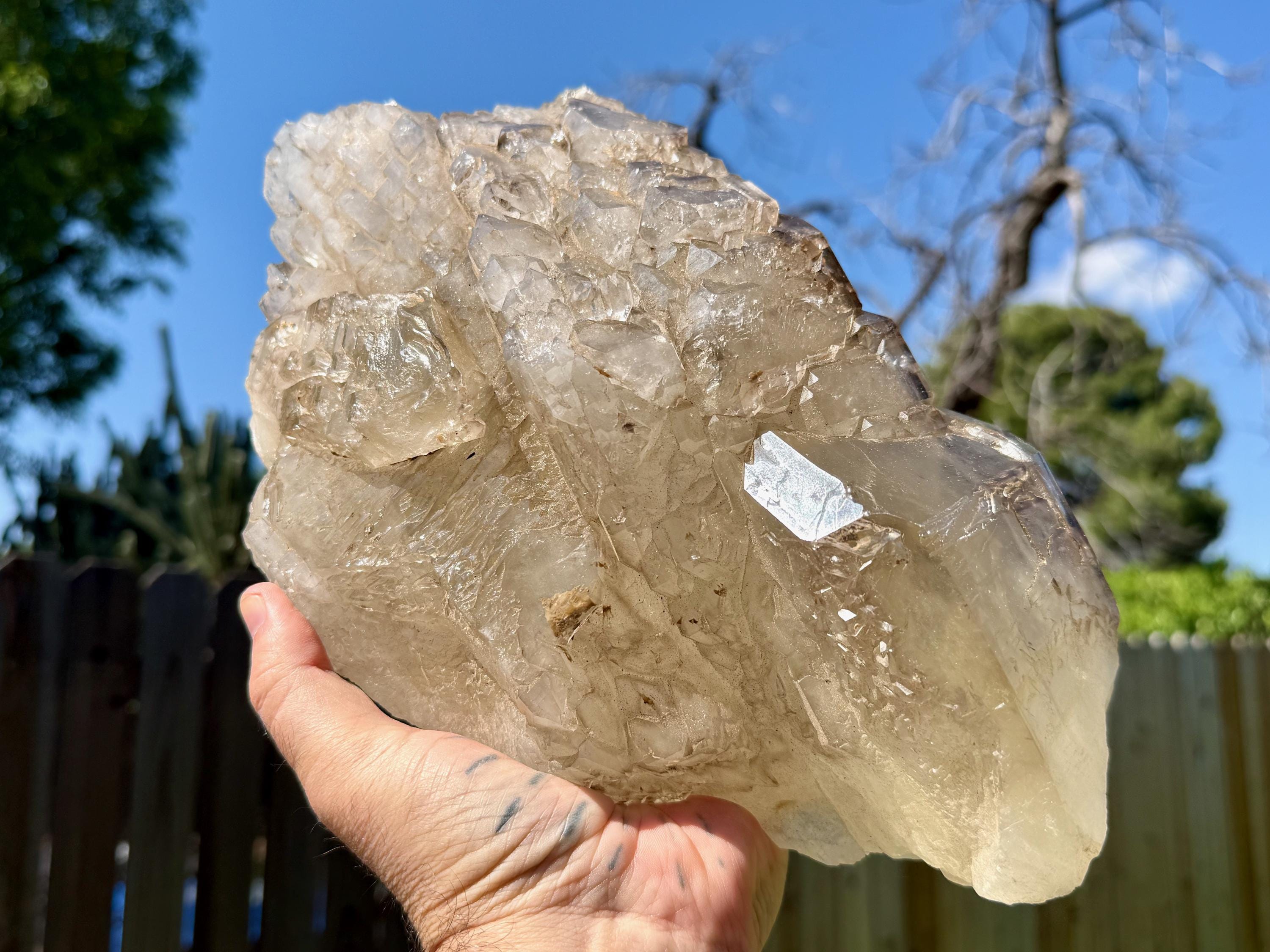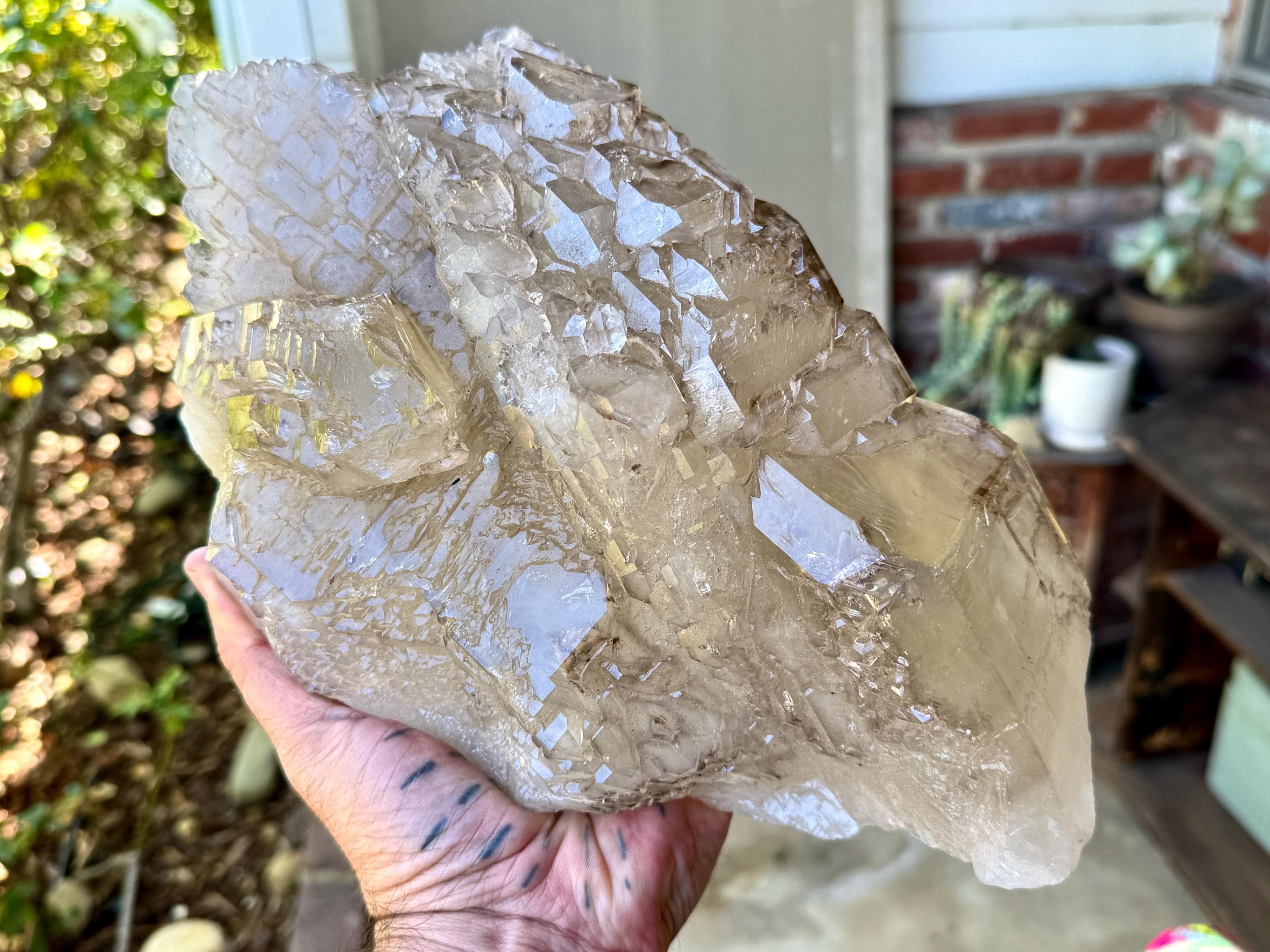At close to 6 kilograms (over 12 pounds), the size of this crystal is truly impressive, as is the quality, displaying brilliant luster and a marvelous zoning of color, ranging from mildly golden, to mildly smoky to white and clear. The overall hue is mild, indicating a higher Quartz to Citrine ratio, but at certain angles, the golden hues really do come through.