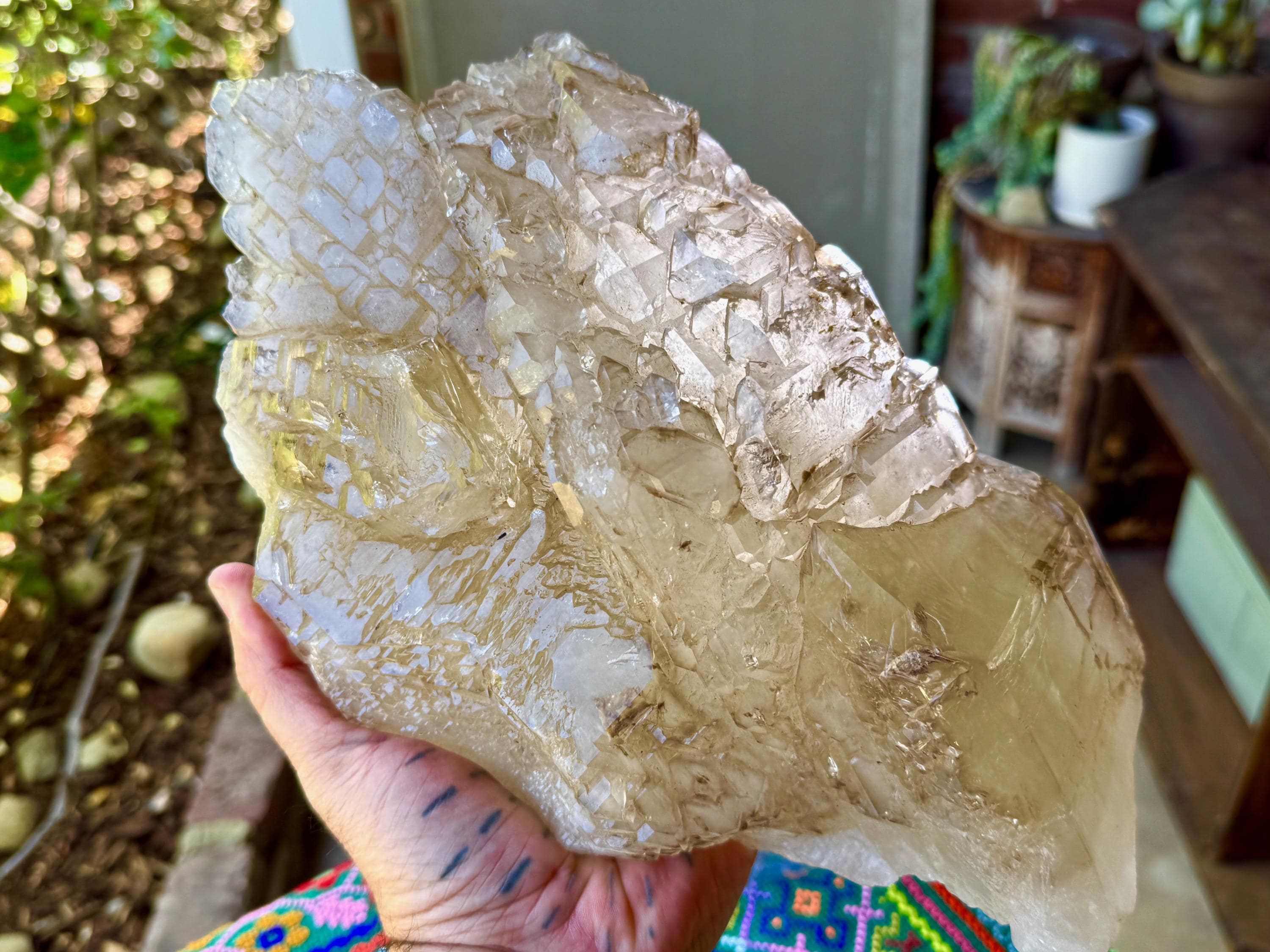 The terminations (non-traditional) are excellent and there is no visible chips or damage on this crystal. Spectacular quality and power to this enormous Elestial Citrine that would make a handsome addition to any collection, home, living space, yoga studio, etc.