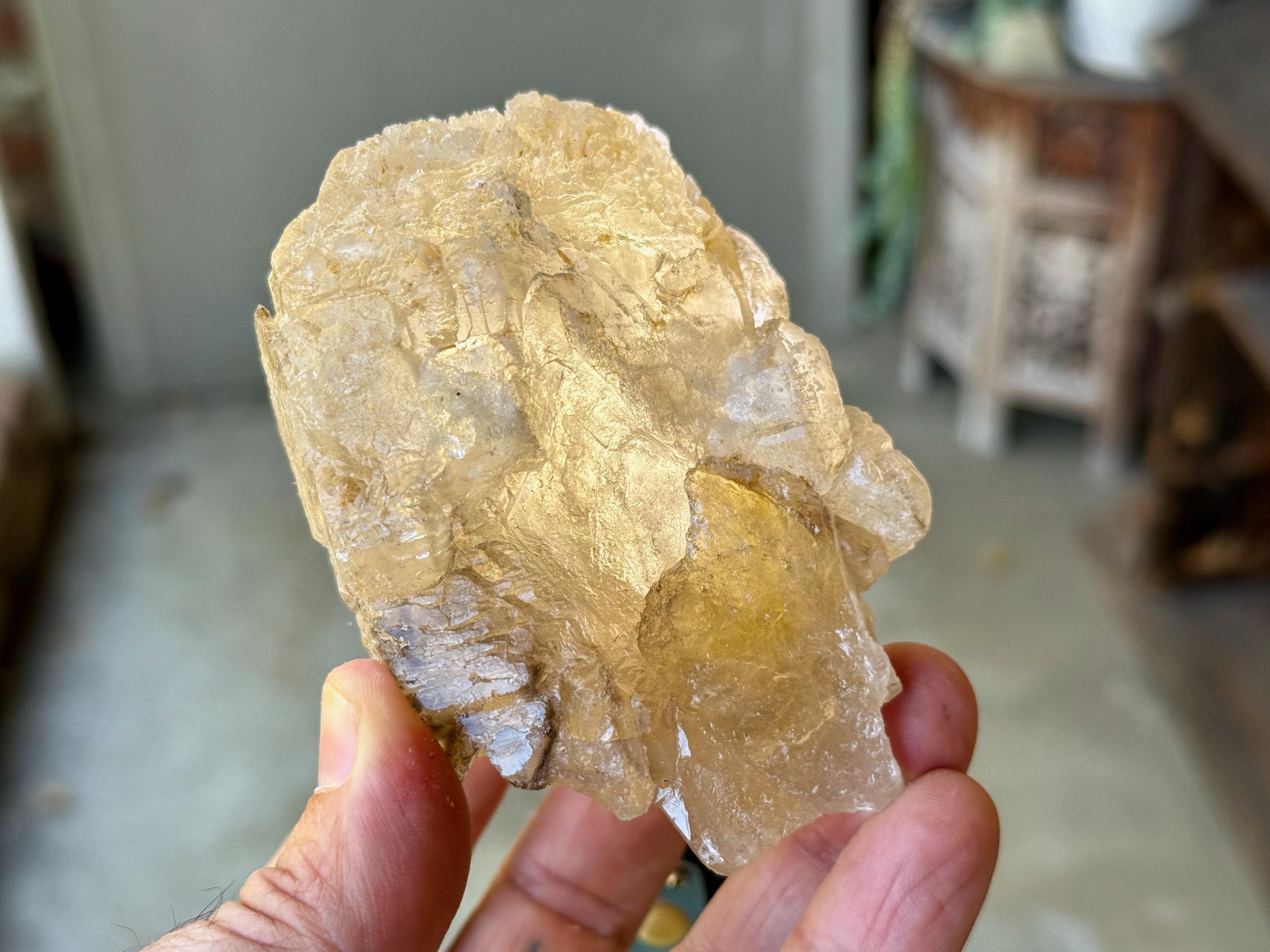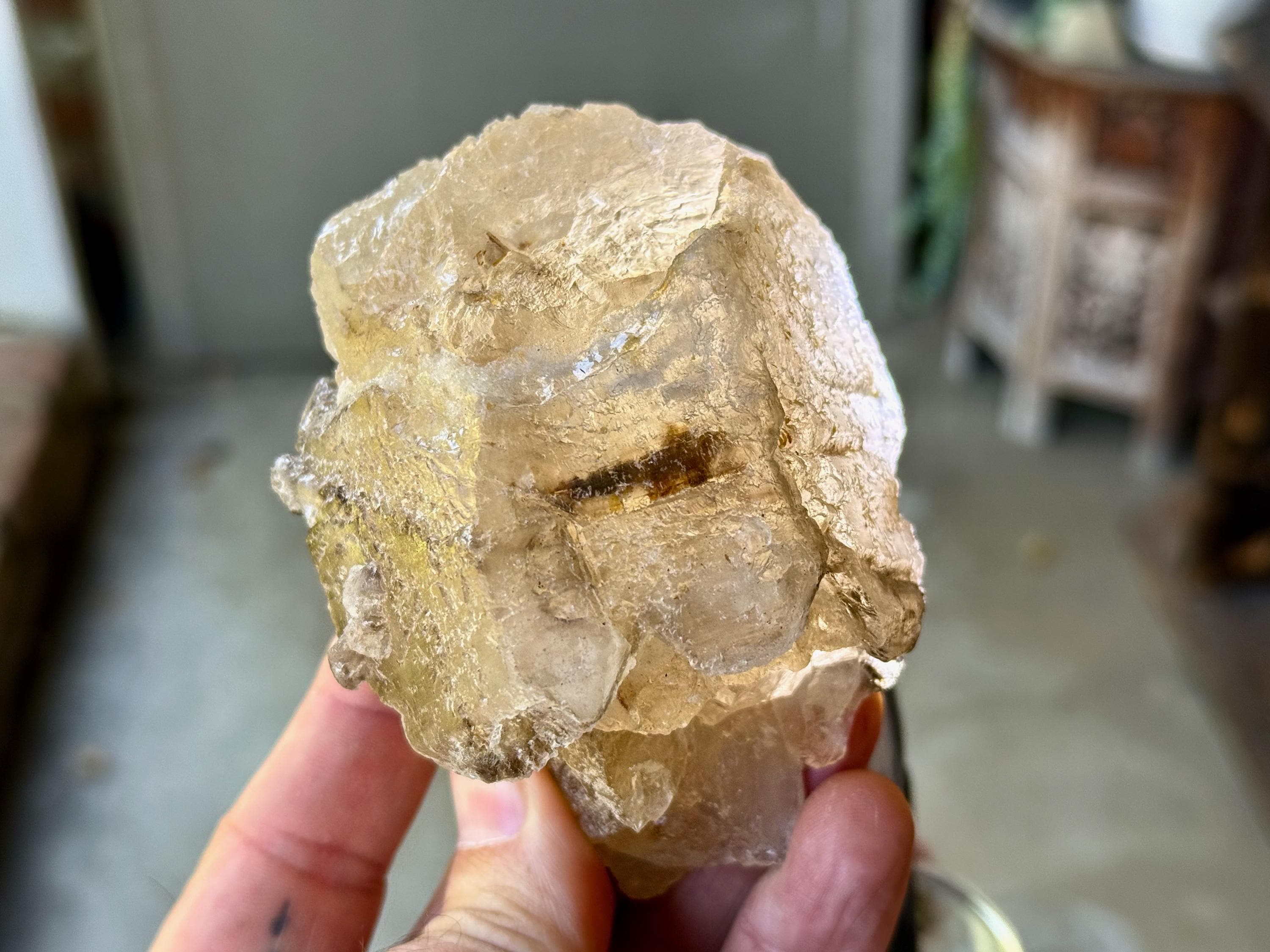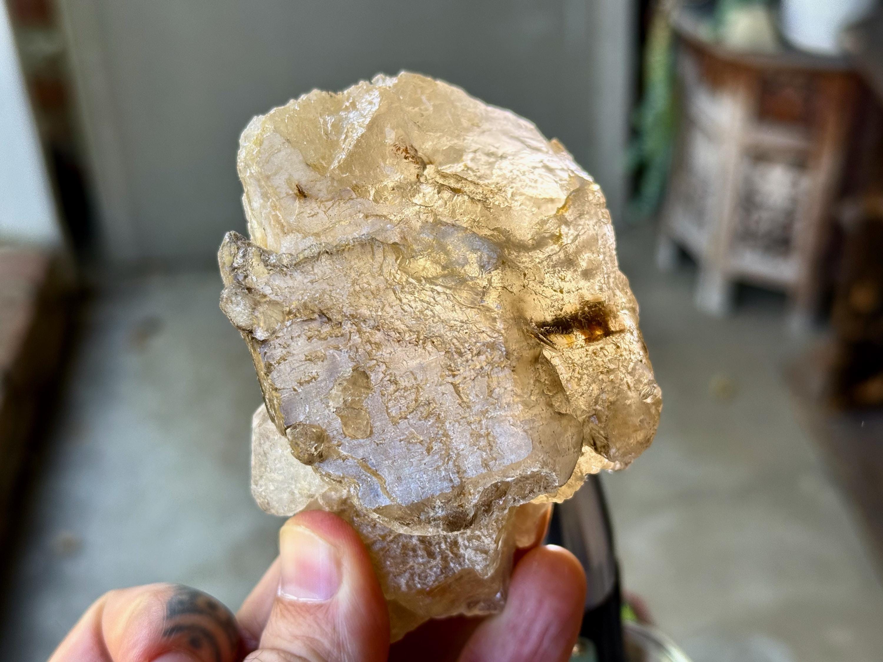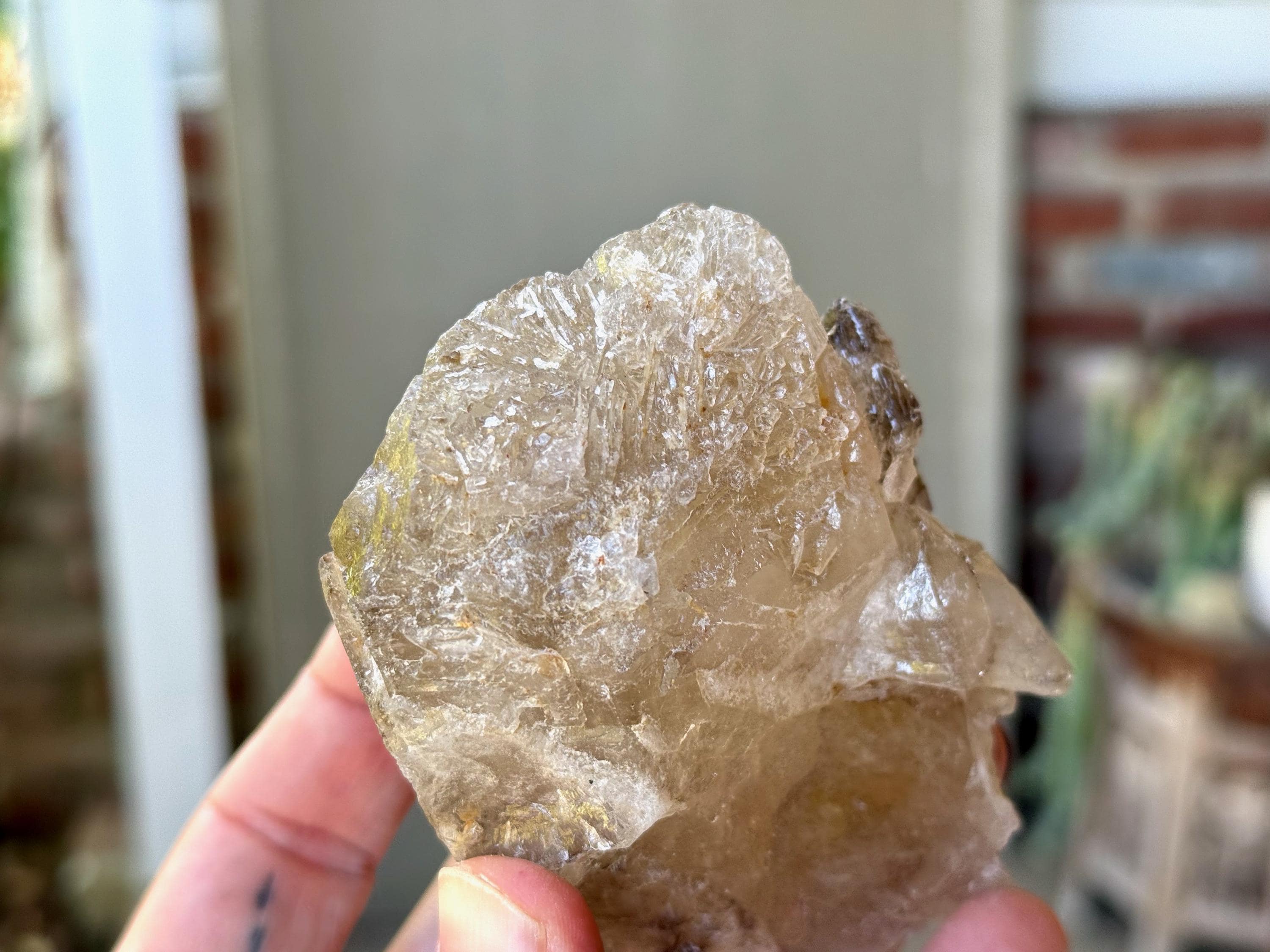 This natural Elestial Smoky Citrine comes from a recent find in Aracuai, Minas Gerais, Brazil. Citrine activates, opens, and energizes the Solar Plexus and Navel Chakras, releasing personal power, creativity and most importantly the ability to manifest.