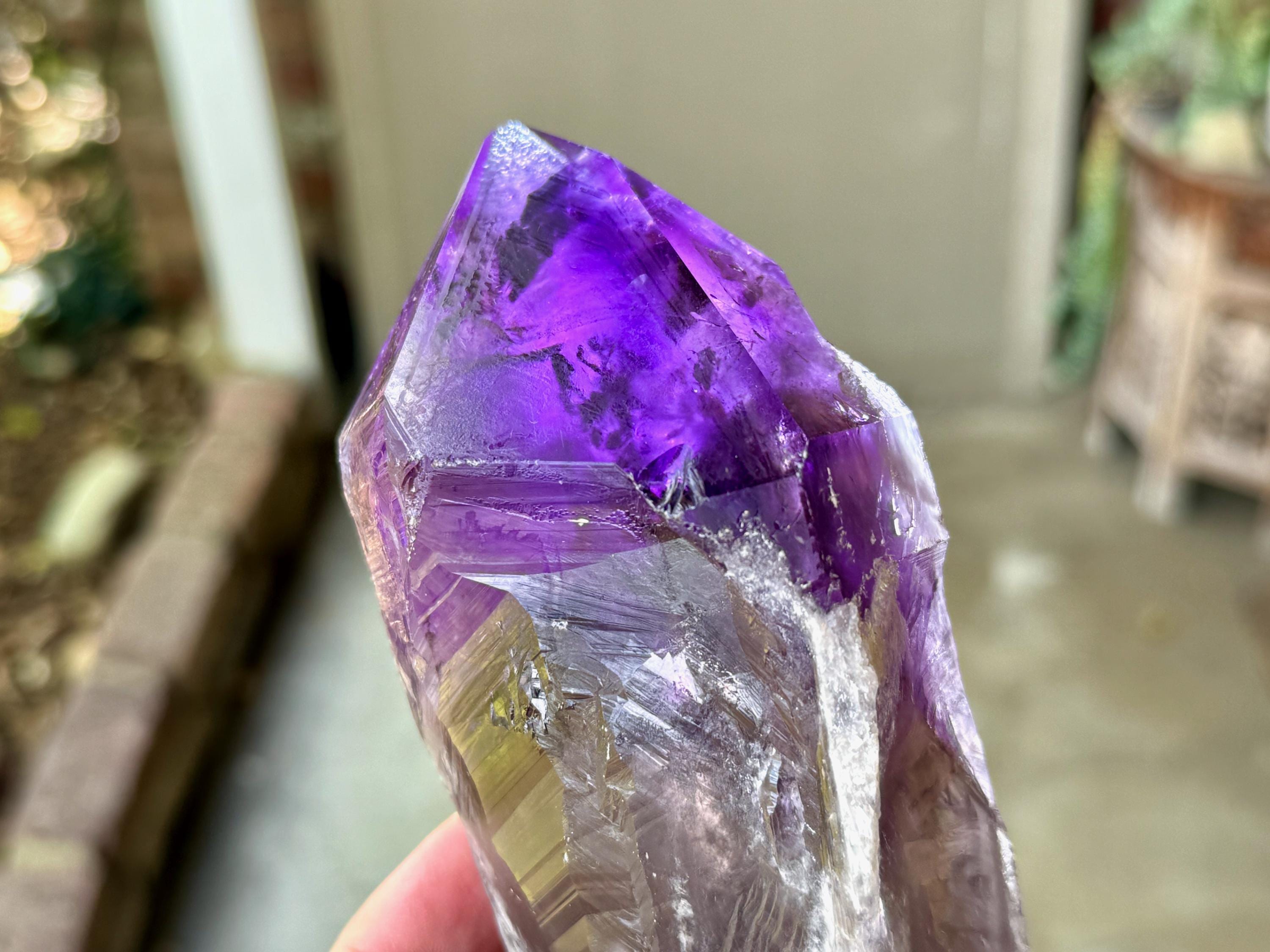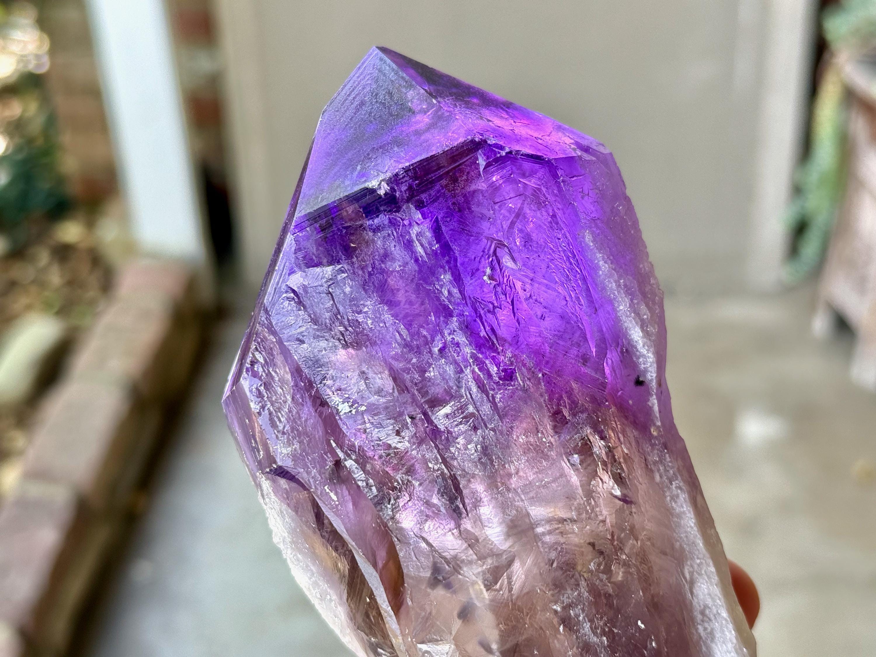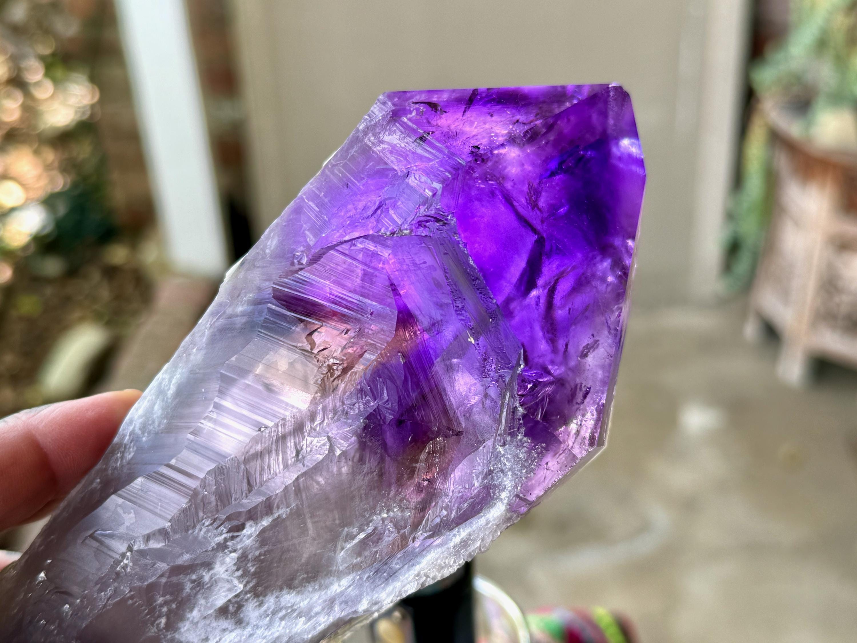 The main facet area and termination are excellent. A powerful Amethyst light saber!
