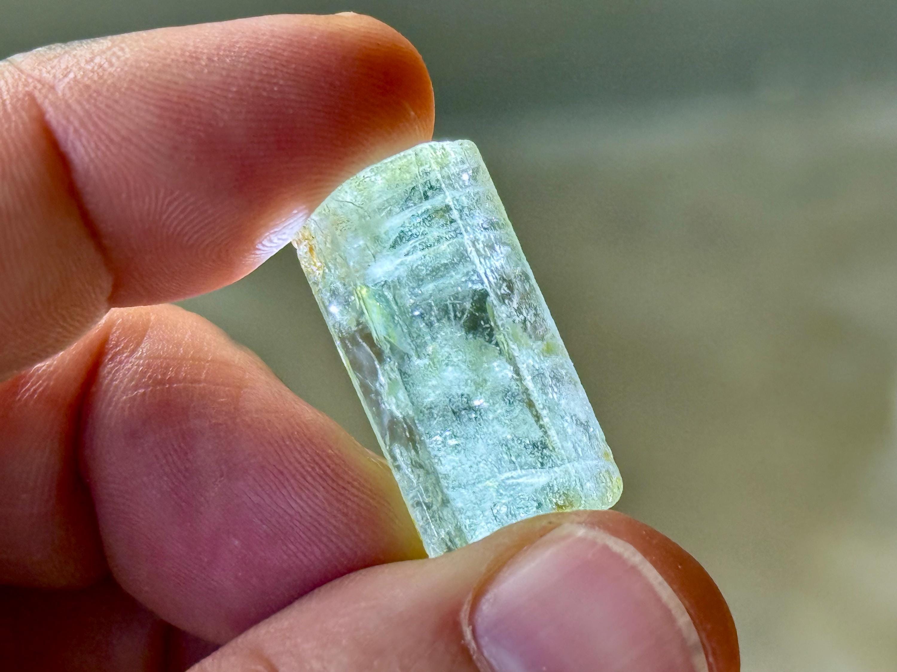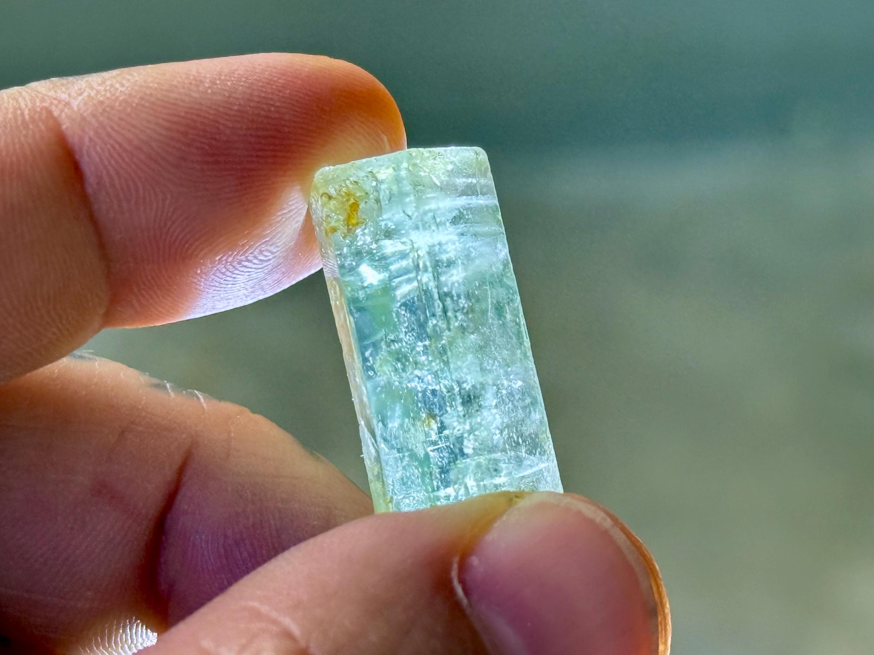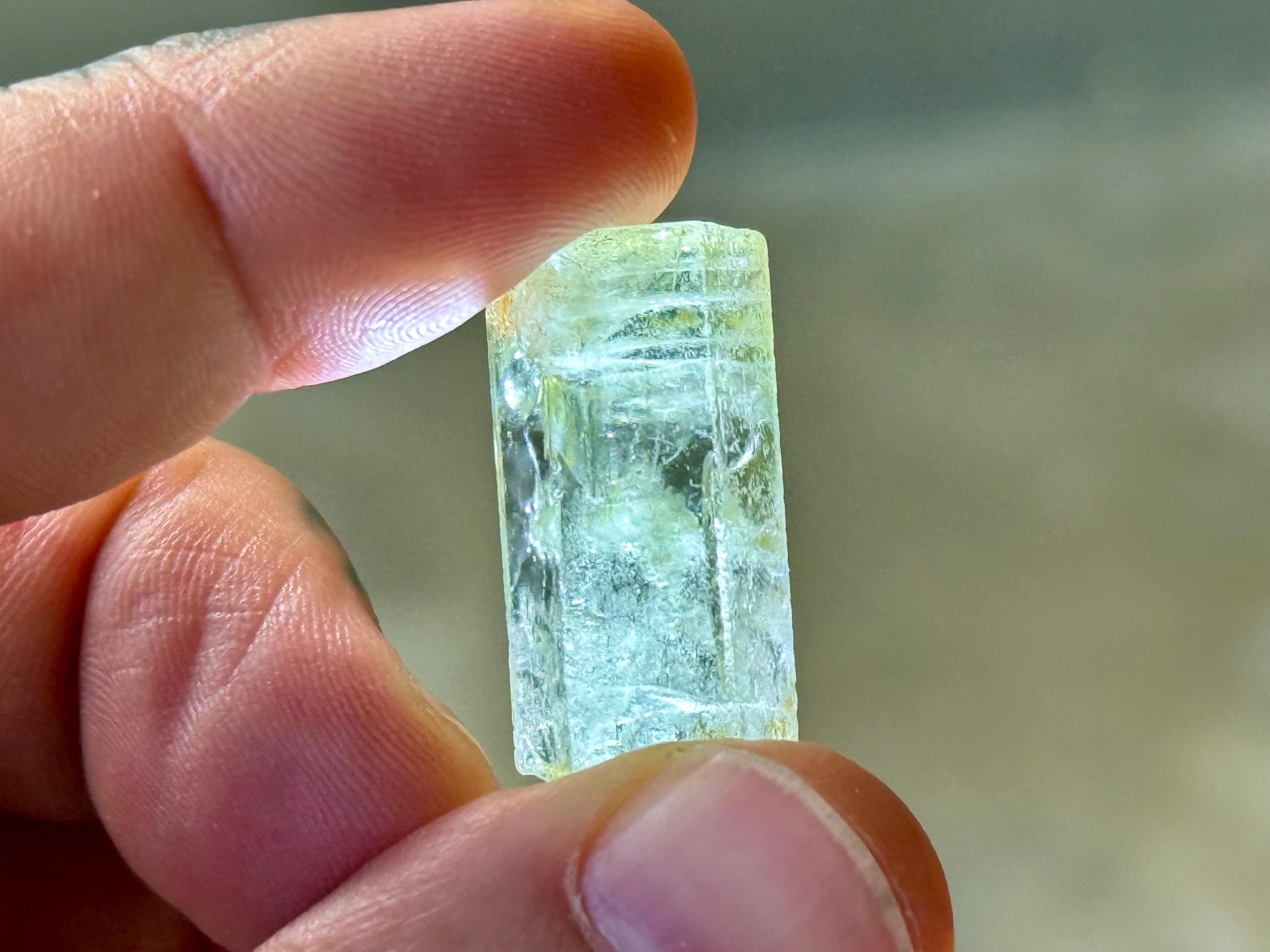 Water-clear clarity and a beautiful blue-green-golden hue to this magnificent Aquador crystal. This crystal possesses a naturally hexagonal formation and superb luster.