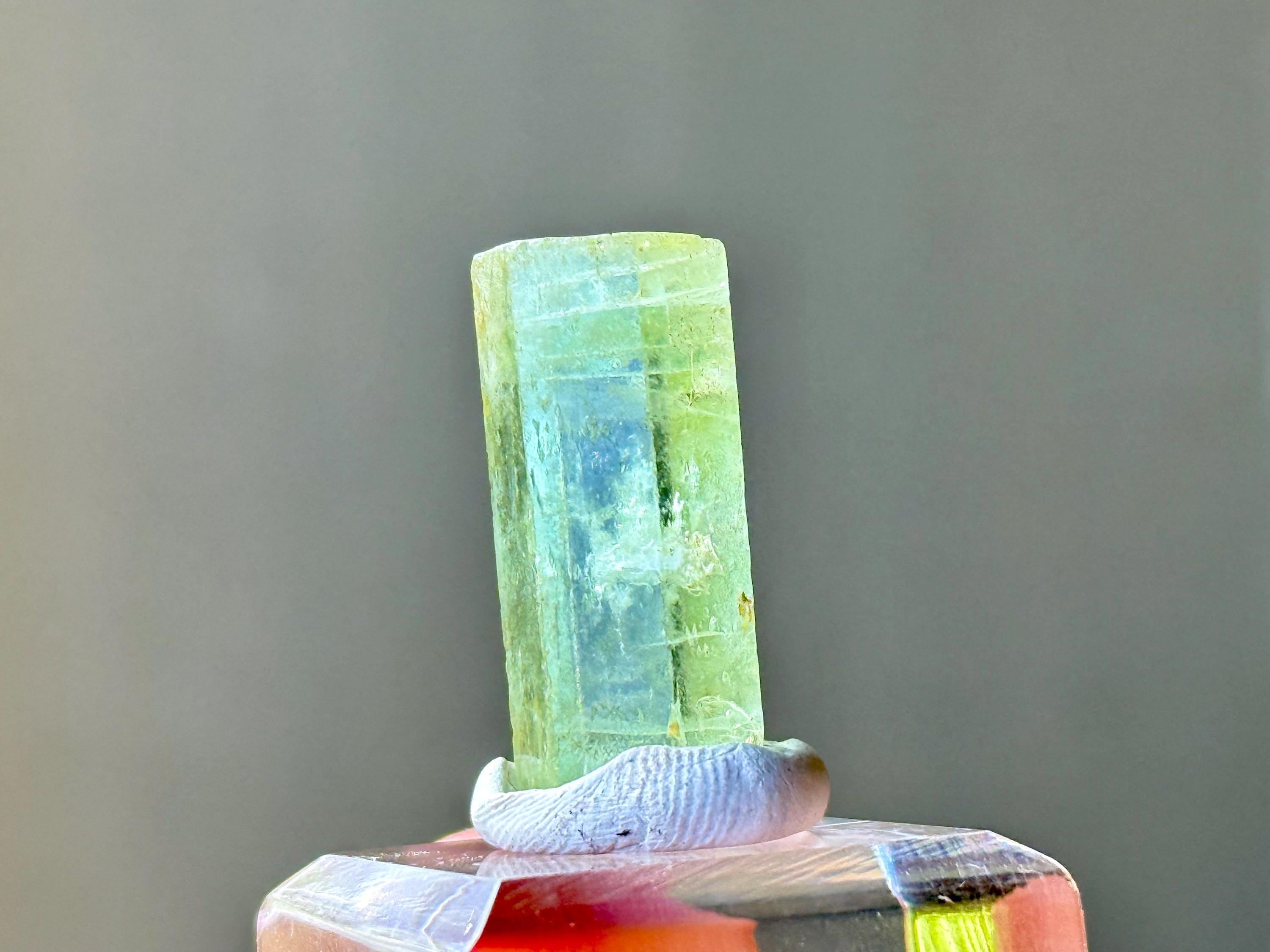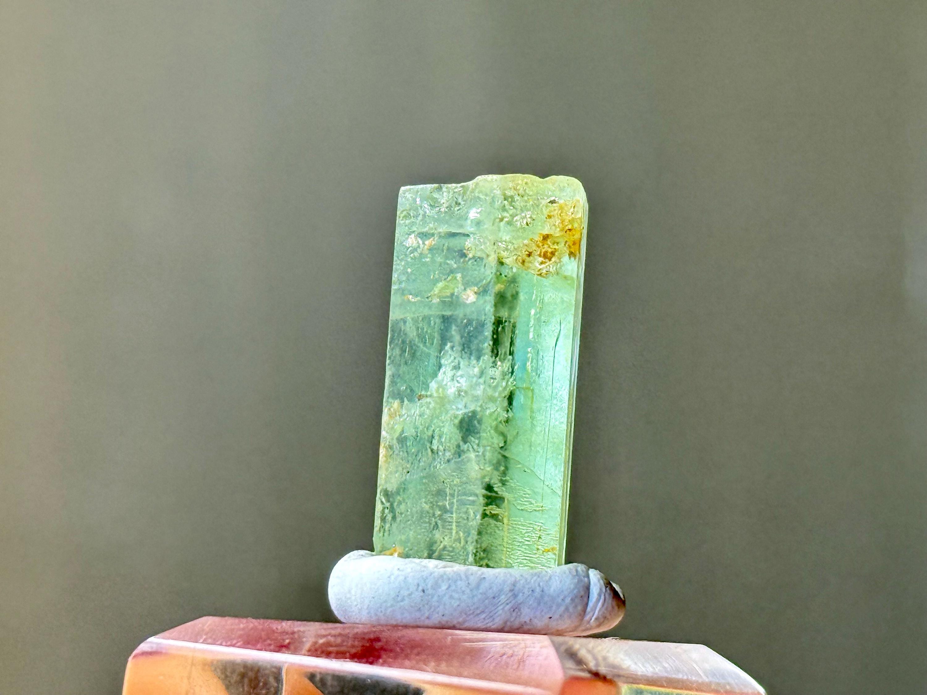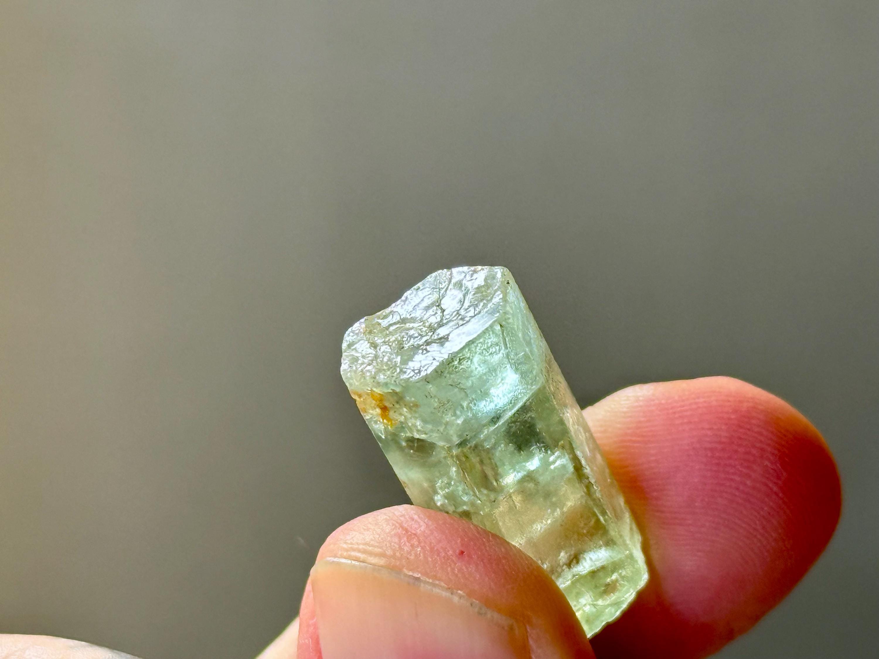 Water-clear clarity and a beautiful blue-green-golden hue to this magnificent Aquador crystal. This crystal possesses a naturally hexagonal formation and superb luster.