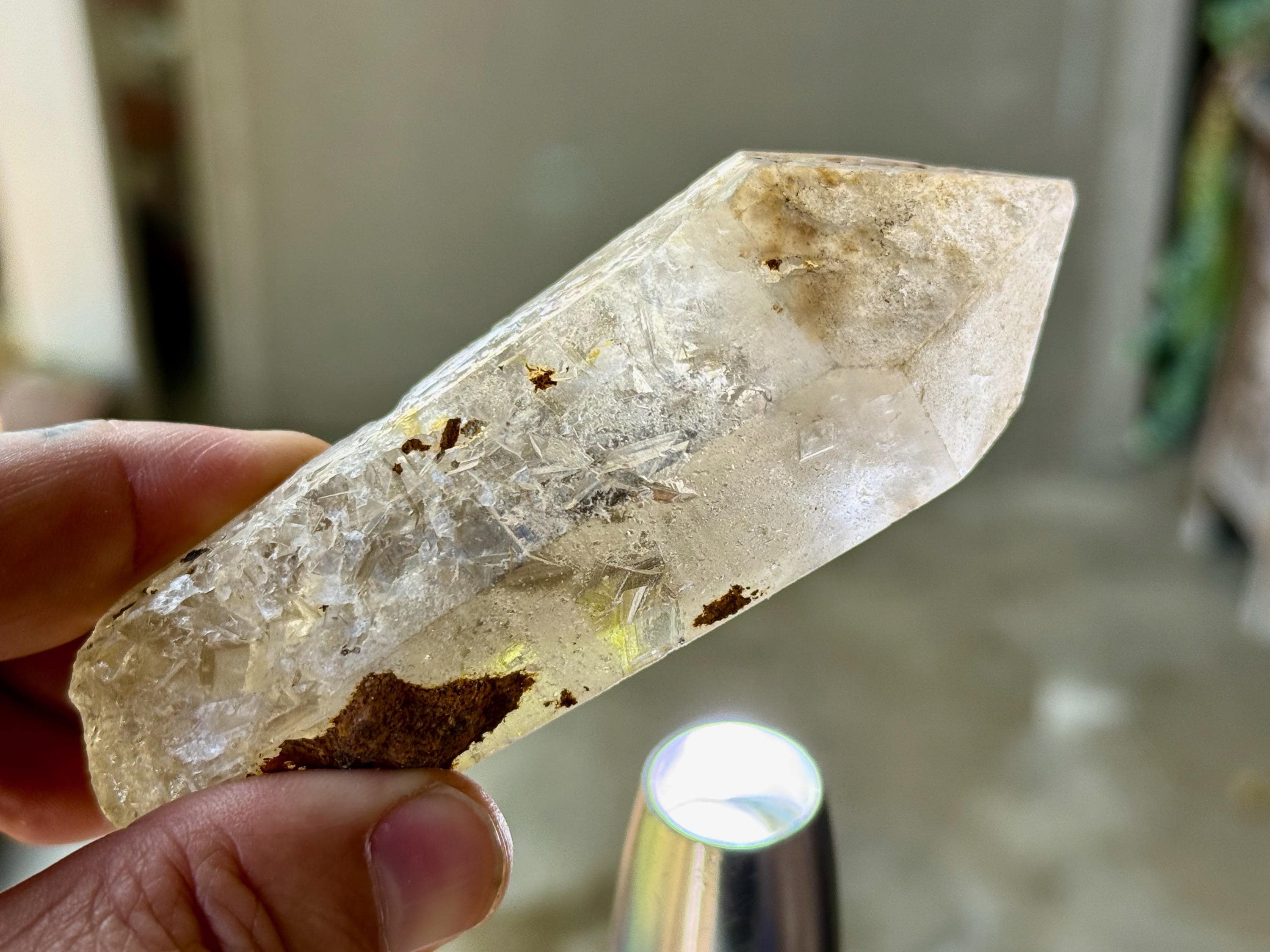 This Russian Lemurian (aka Sacred Scribe) Quartz comes from the original 1990's find in the Yuzhnyi Quarry, Astaf'evskoe Quartz Deposit, Chelyabinsk, Oblast, Russia. This crystal is part of a collection we acquired in 2026 from an Italian collector who had a parcel of these rare crystals in storage since the early 2000's.