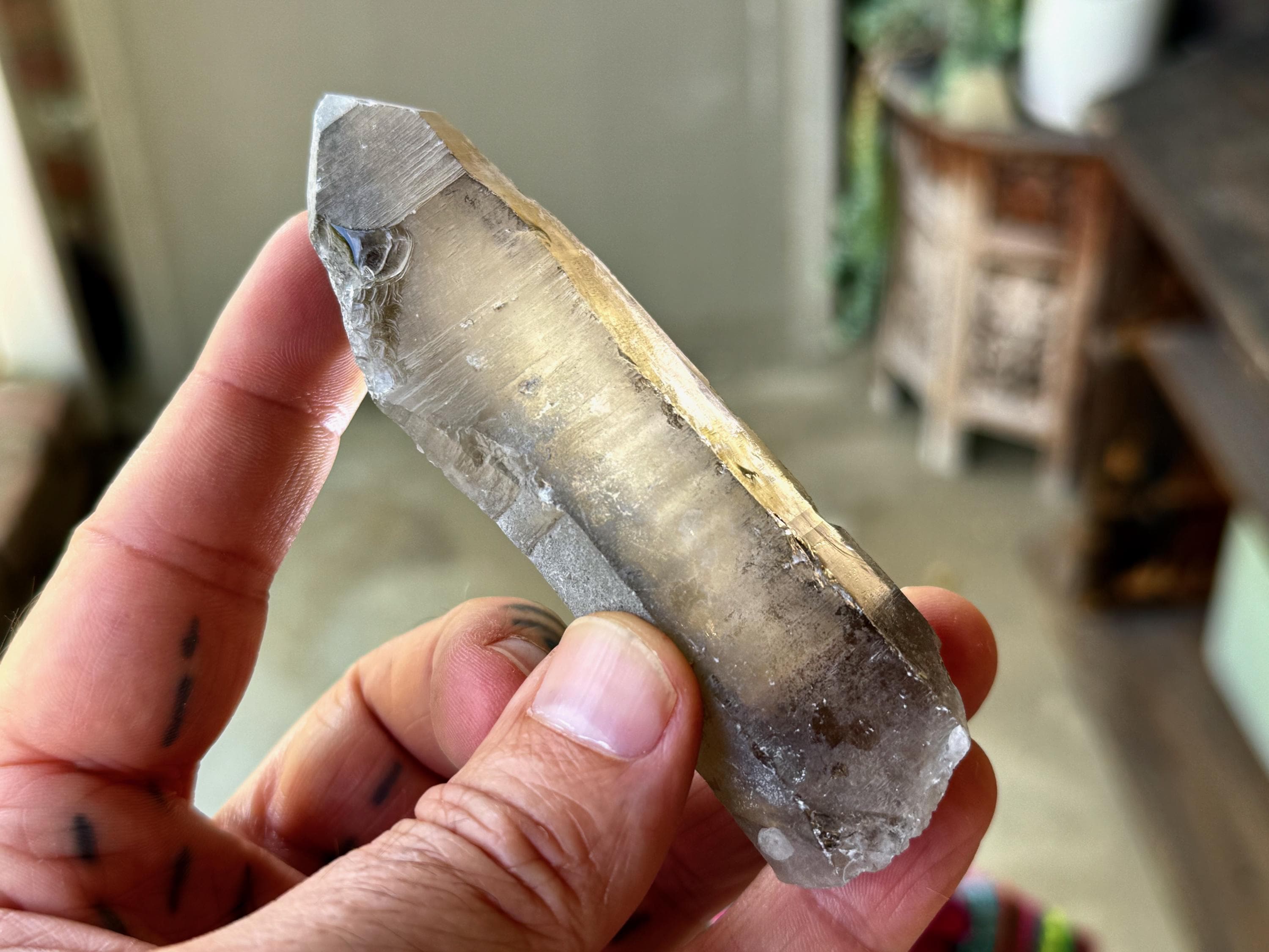 This Russian Lemurian (aka Sacred Scribe) Quartz comes from the original 1990's find in the Yuzhnyi Quarry, Astaf'evskoe Quartz Deposit, Chelyabinsk, Oblast, Russia. This crystal is part of a collection we acquired in 2026 from an Italian collector who had a parcel of these rare crystals in storage since the early 2000's.