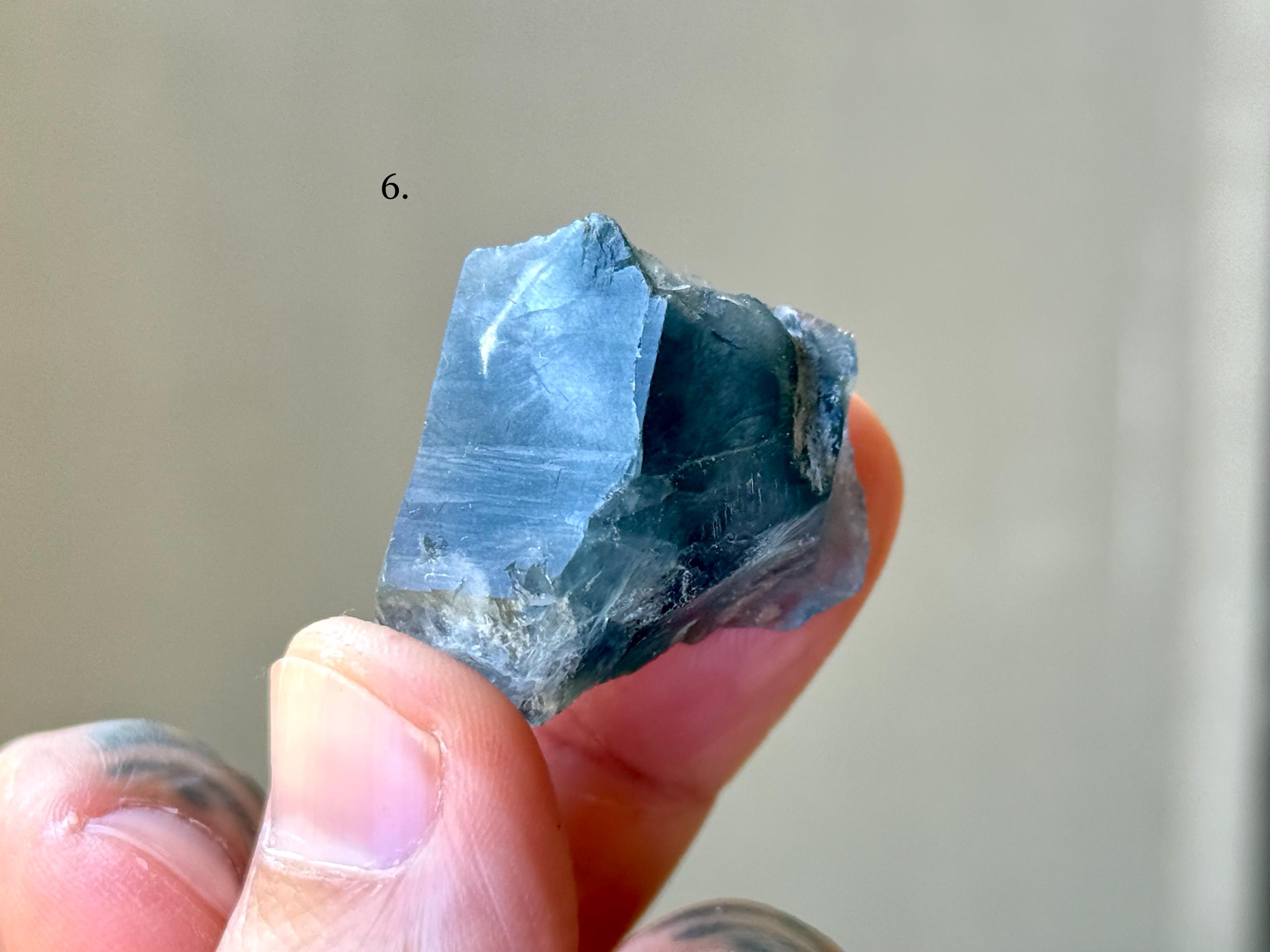 Some refer to the crystals from this new find as "Nightshade" Blue Tara, due to their extremely dark and vibrant hues, which they get from inclusions of a Blue Amphibole called Riebeckite. Riebeckite is a powerful healing mineral that helps remove obstacles that are in the way of one's spiritual growth.