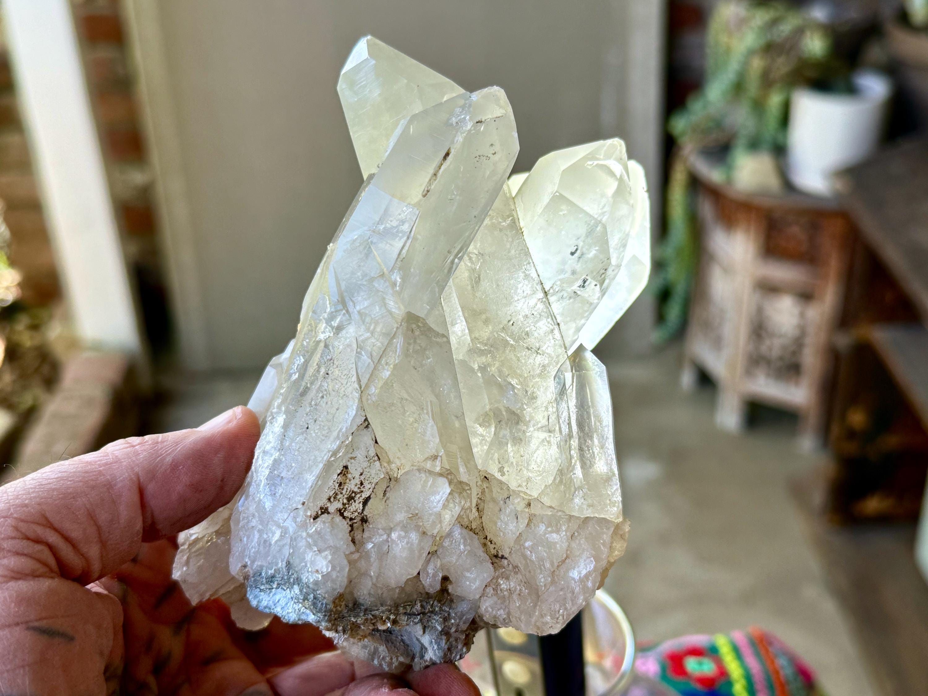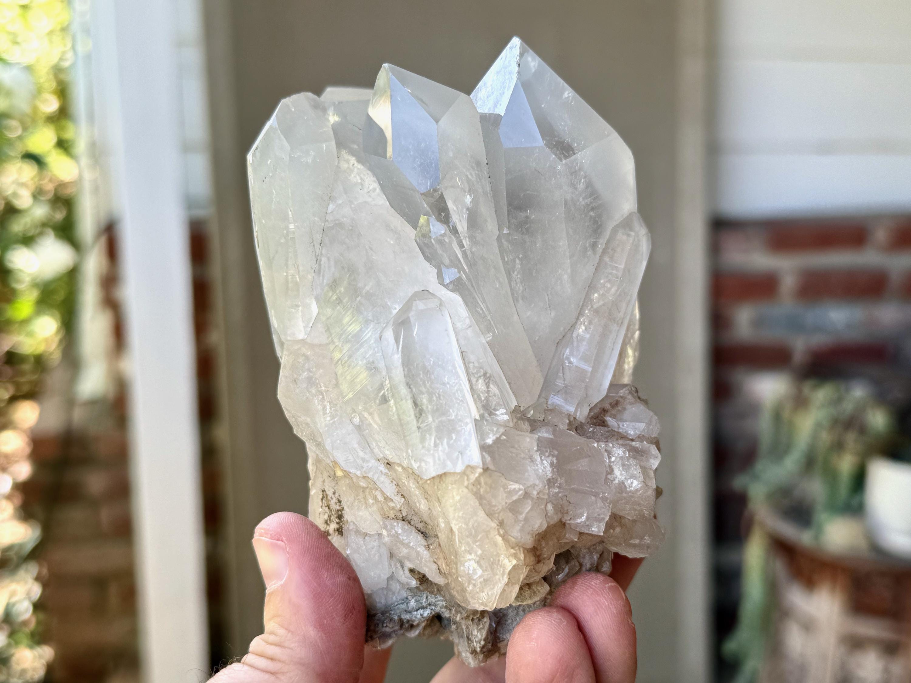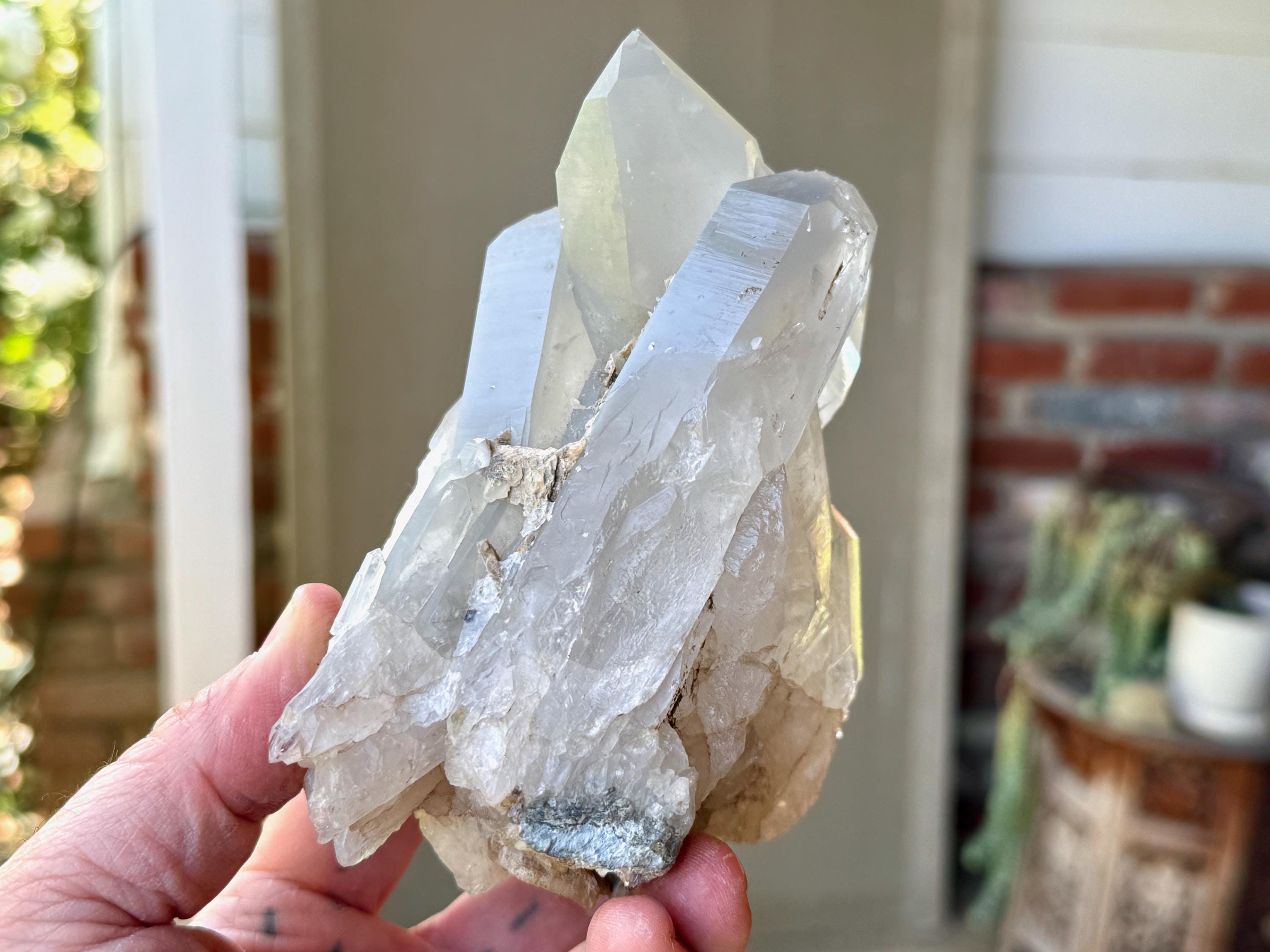 The formation is quite extraordinary and aesthetically beautiful, with several large Quartz crystals seemingly embracing one another. Again, the complexion is mildly milky, mildly hazy and very lustrous, with some hints of Green Chlorite and Mica in the base. The terminations on this piece are excellent. It's an extraordinary piece from this collection.